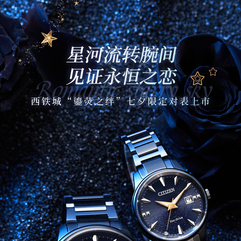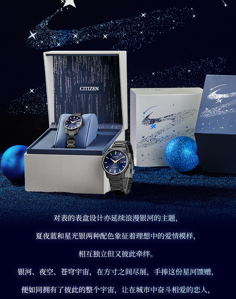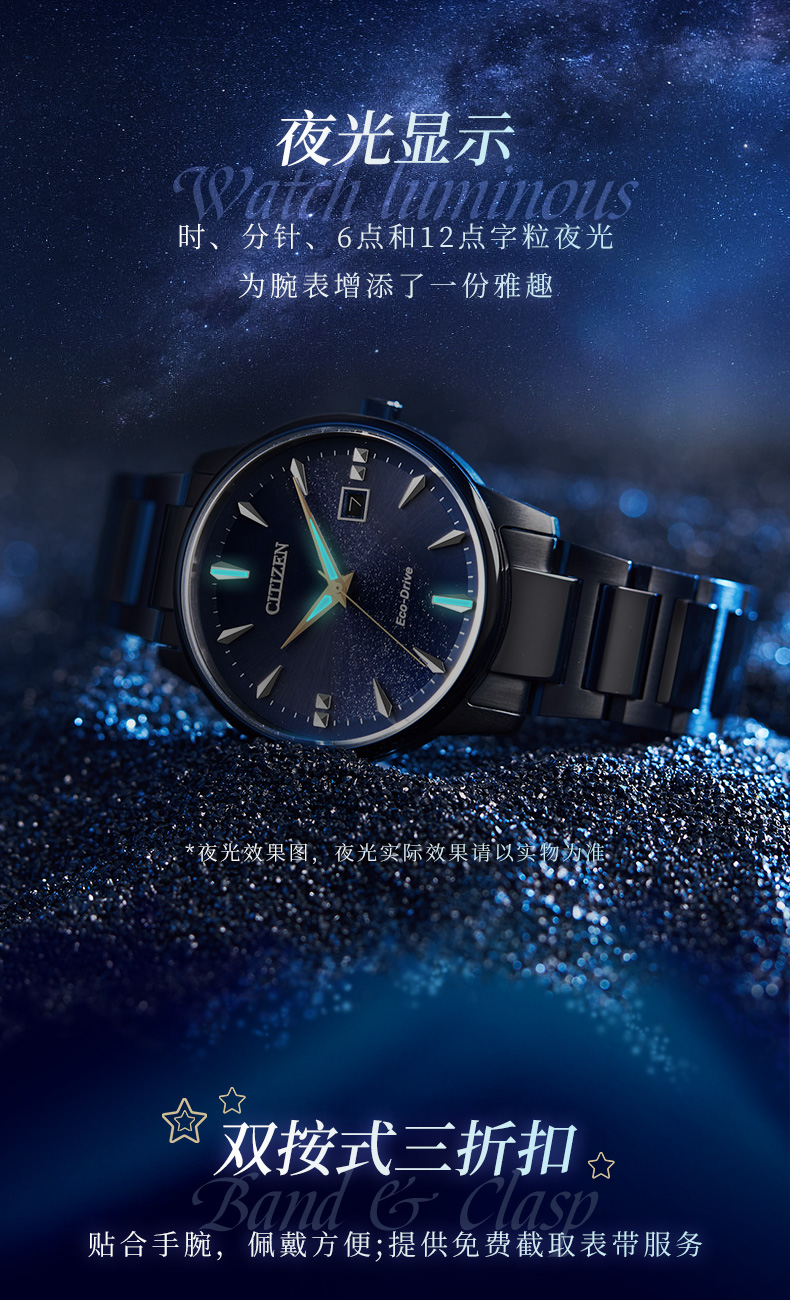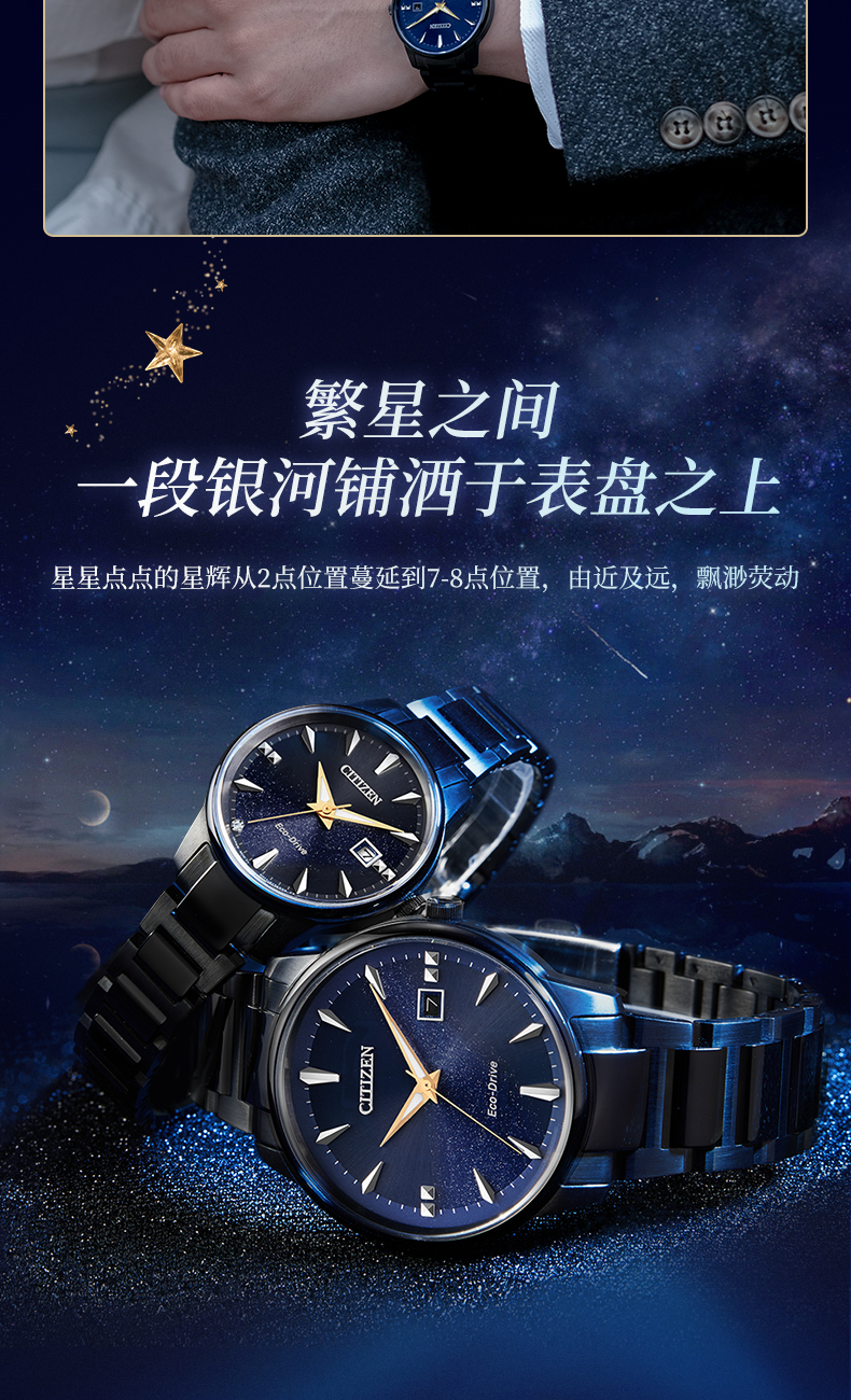 西铁城日本官方正品情侣对表星空蓝盘光动能男士手表BM7528-86L