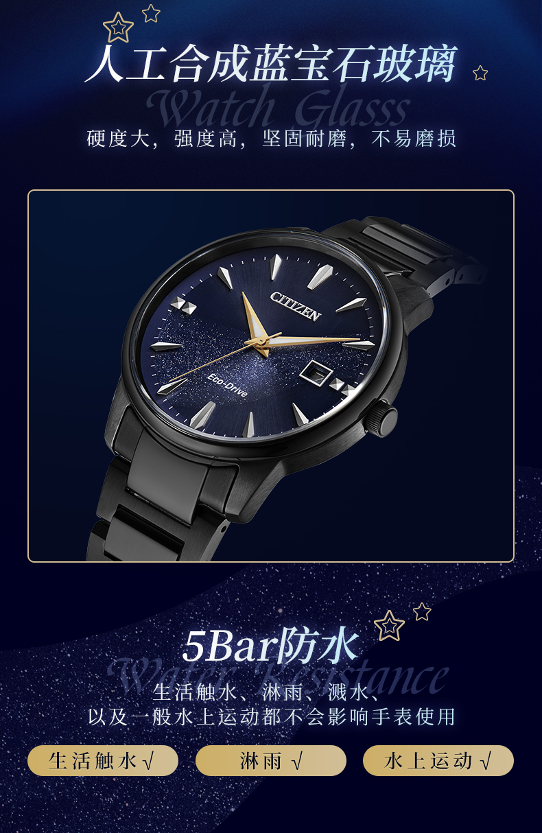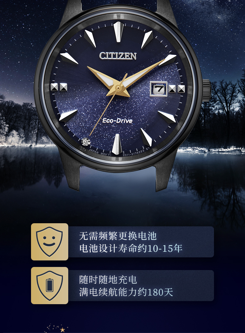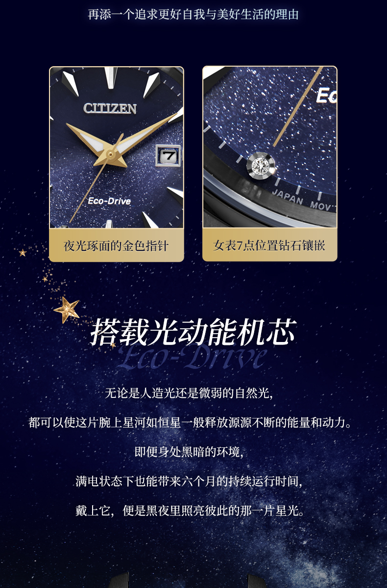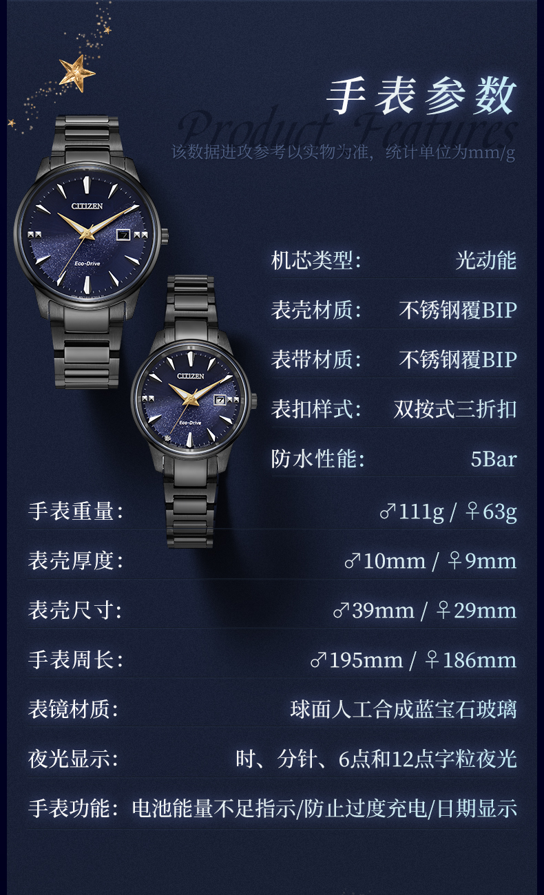 西铁城日本官方正品情侣对表星空蓝盘光动能男士手表BM7528-86L