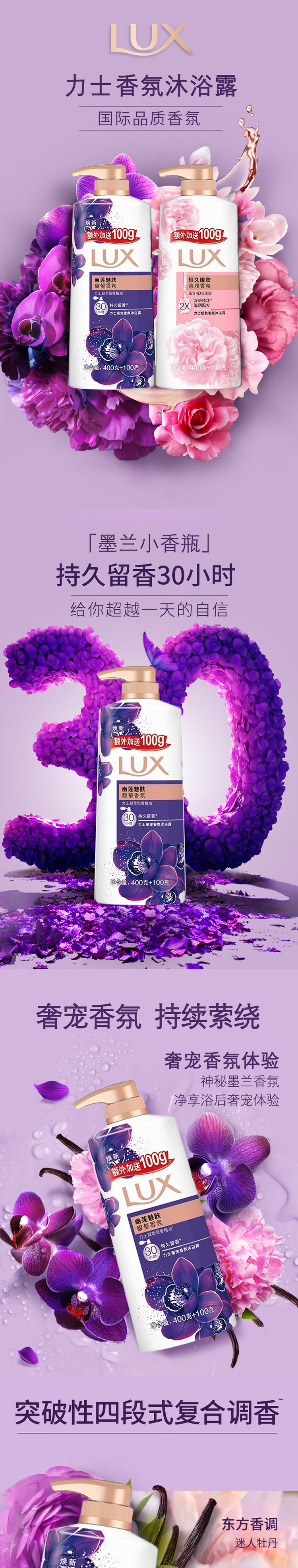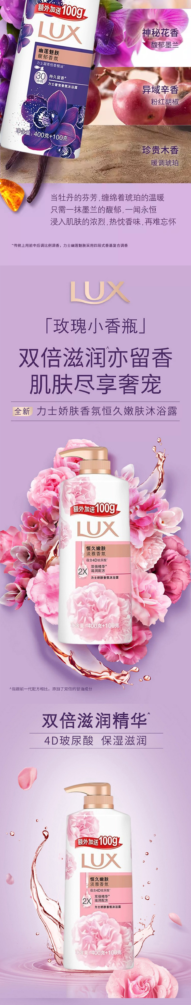 【线下门店专享】LUX力士 奢宠香氛幽莲魅肤香|娇肤香氛恒久嫩肤 沐浴露500g(400g+100g)