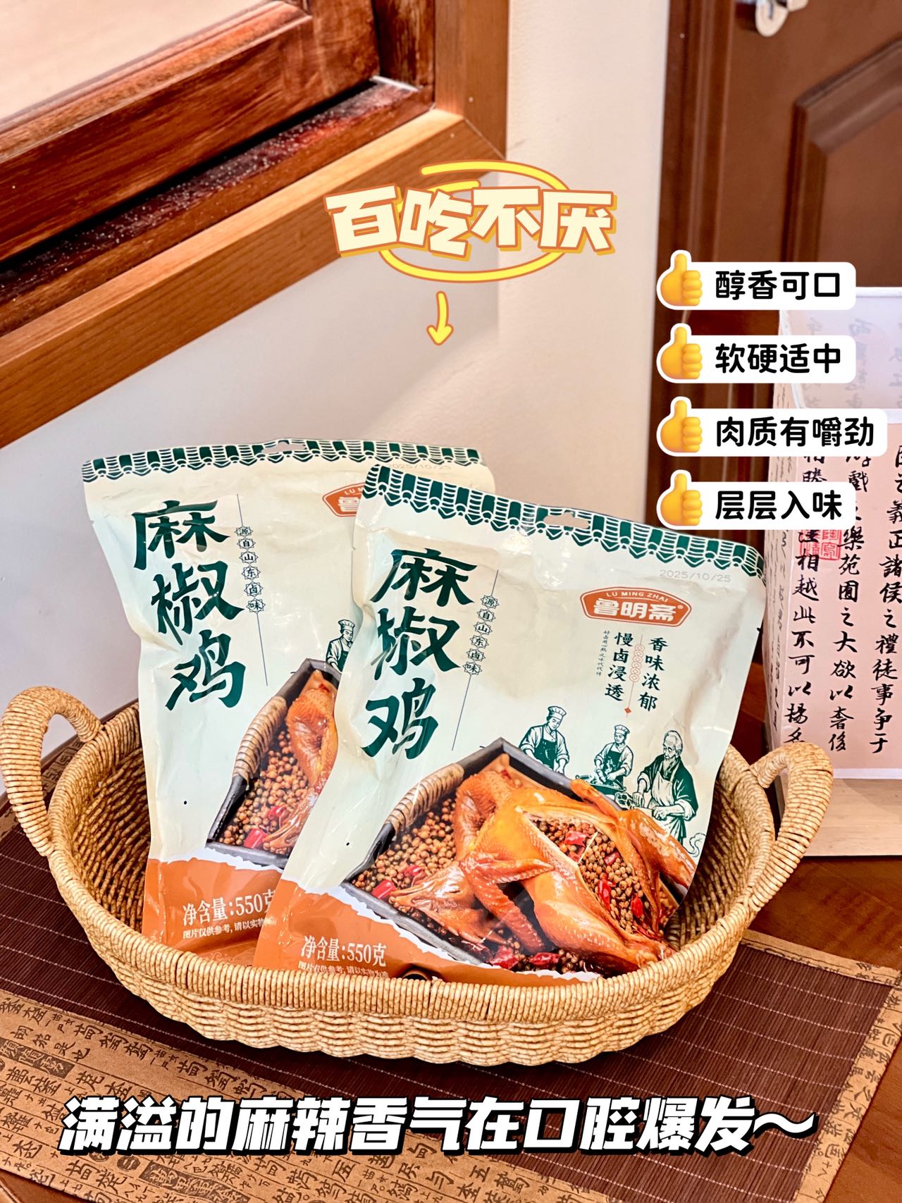 【鲁明斋 麻椒鸡】 真材实料,大口吃肉,足足一整只!肉质紧实、麻中透辣、后味回甘、健康低脂 其特殊的香气和持久的麻味,让人食指大动~