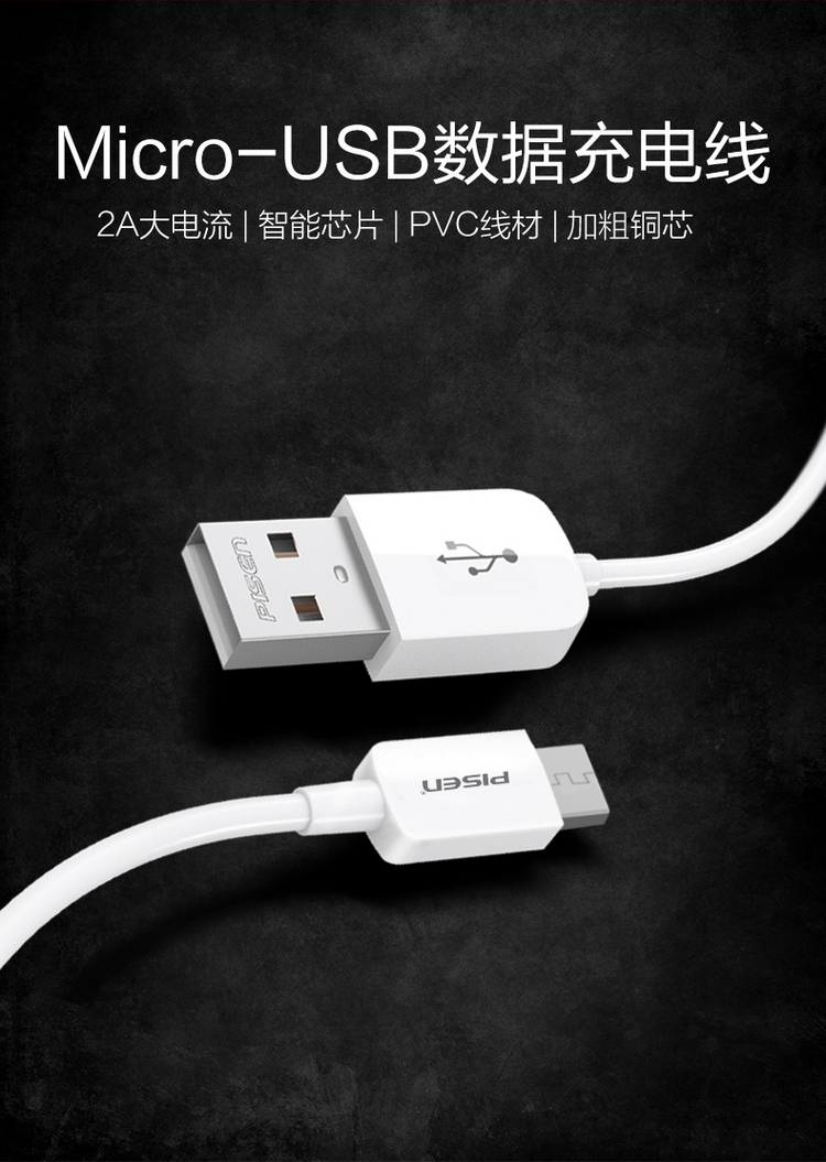 品胜(PISEN)安卓数据线 1.5米 Micro USB手机充电线 适用于华为/小米/vivo/魅族/三星等 白色