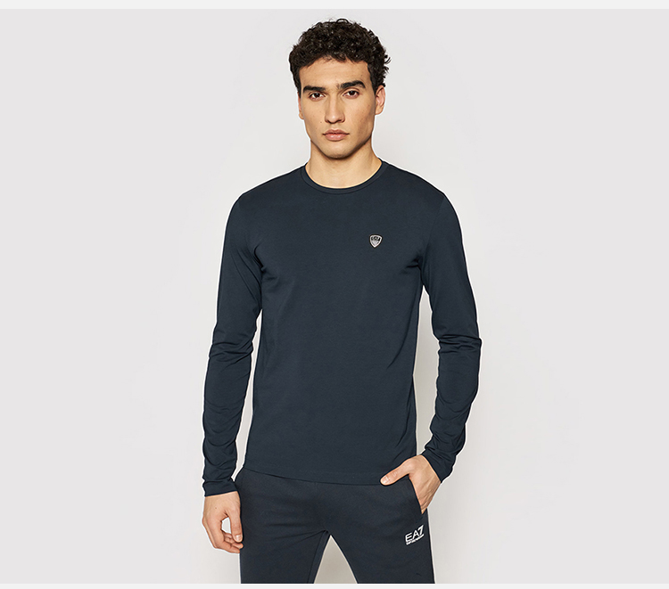 ARMANI 阿玛尼 男士棉质圆领长袖T恤 藏蓝色 8NPTL9 PJ03Z 1578