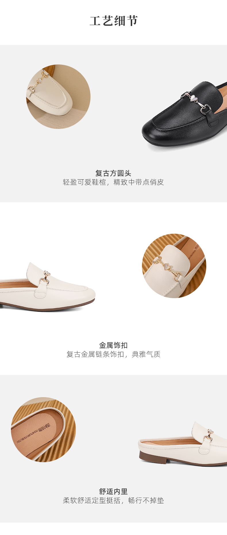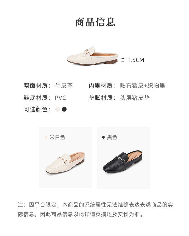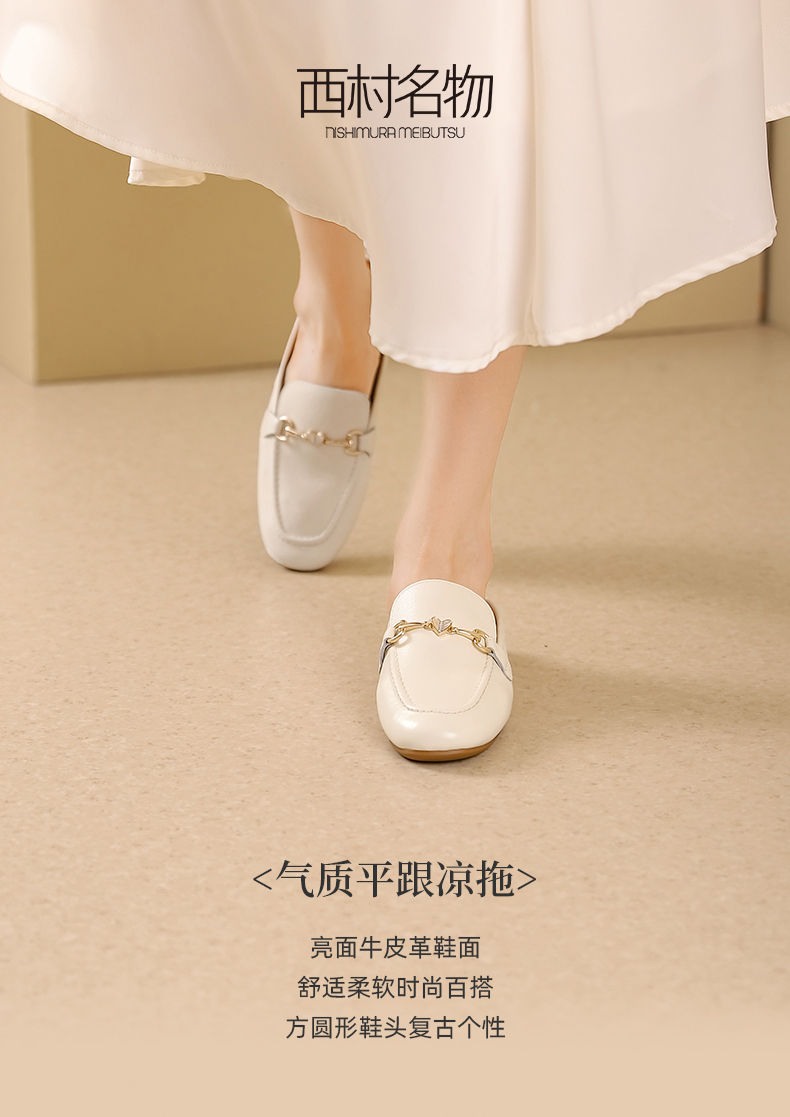 西村名物2023夏季新款通勤牛皮穆勒鞋时尚外穿舒适包头拖鞋13481