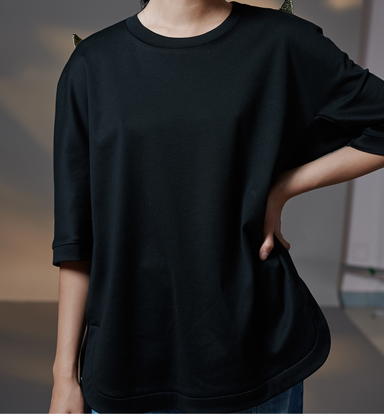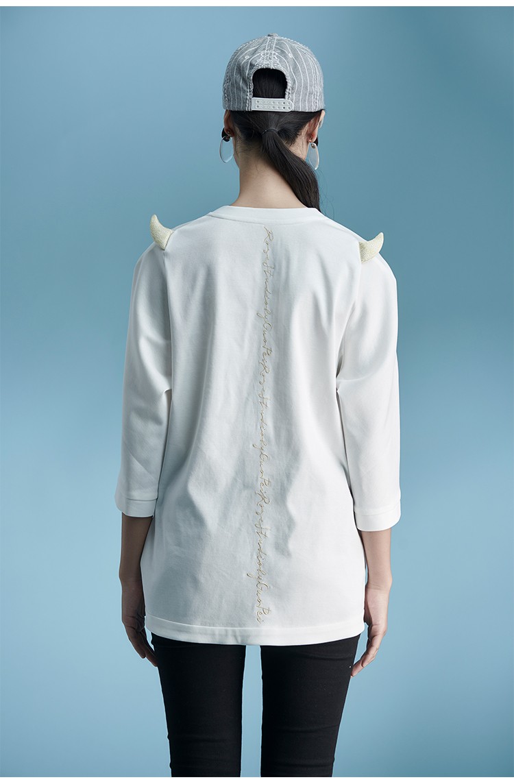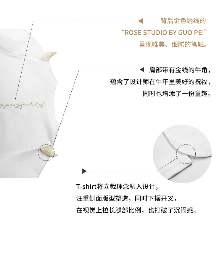 RSG郭培成衣品牌原创设计刺绣牛角纯棉T恤oversize短袖女夏