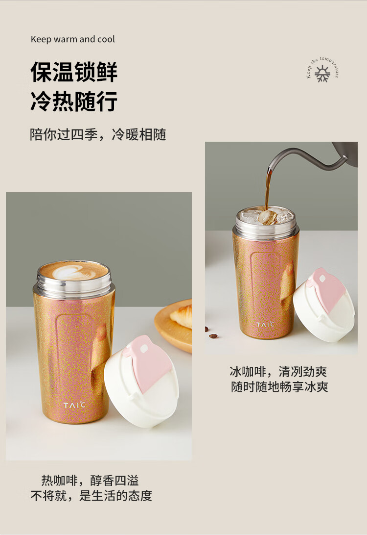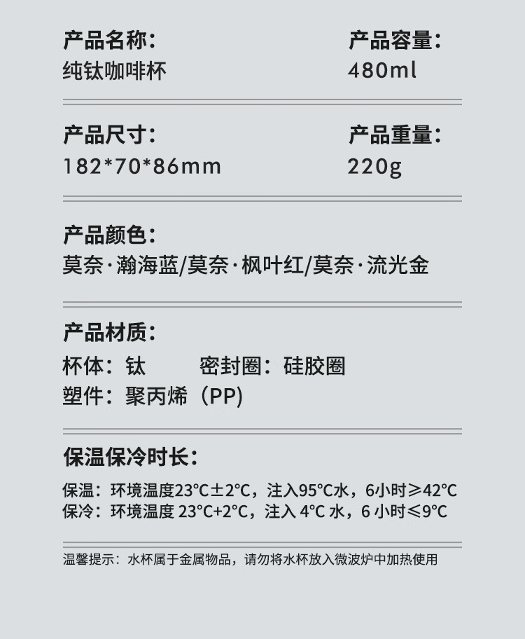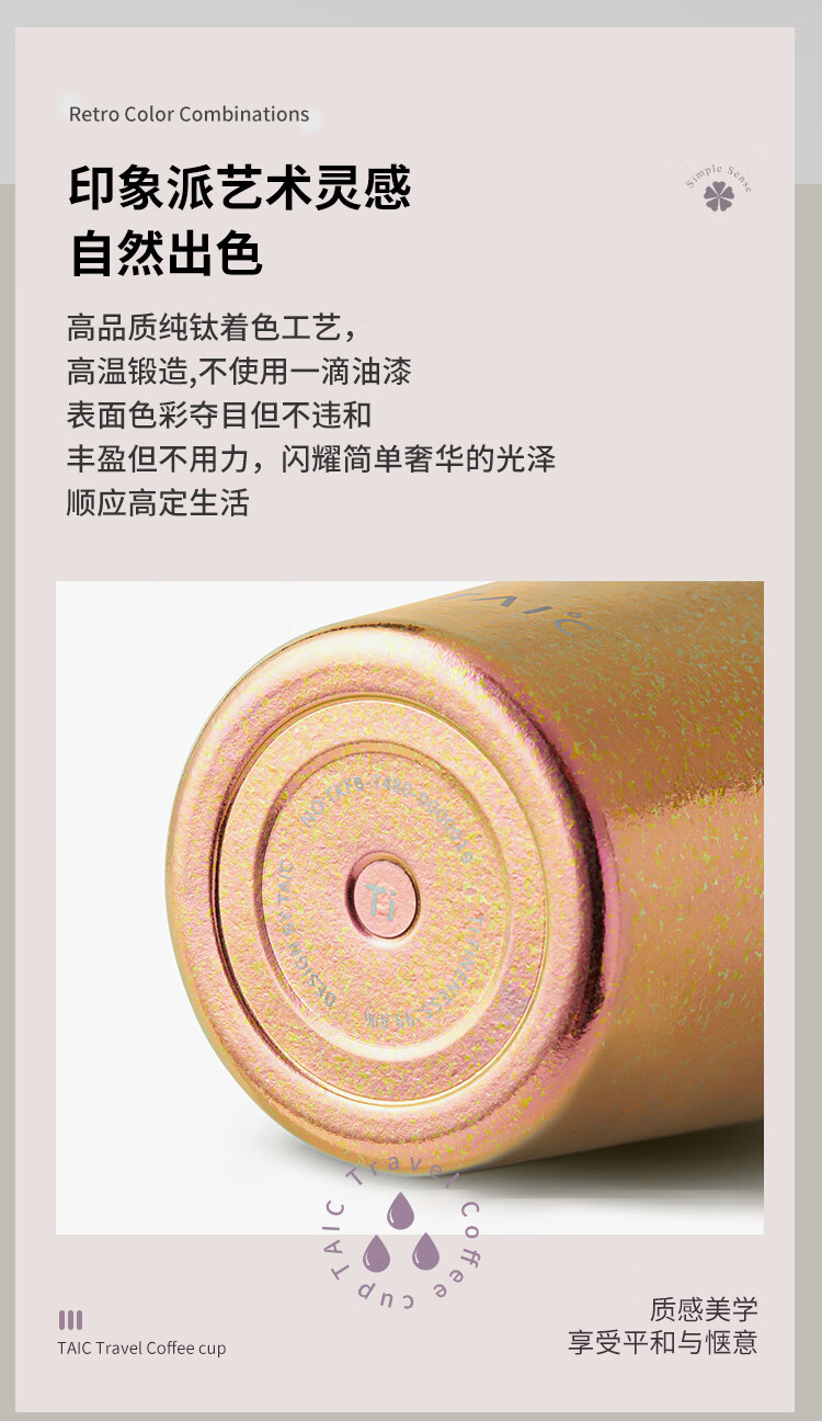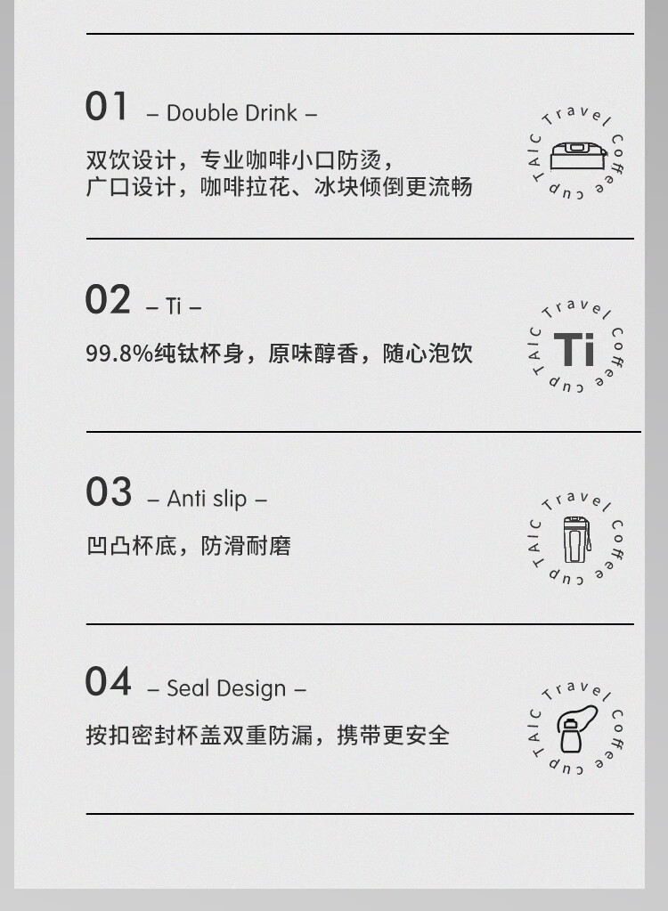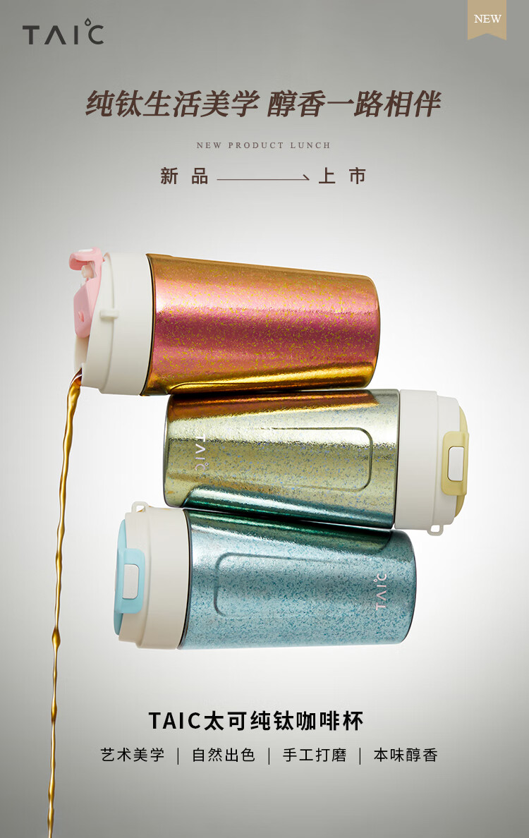TAIC太可钛度双层纯钛咖啡杯保温保冷便携大容量高颜值带盖车载水杯