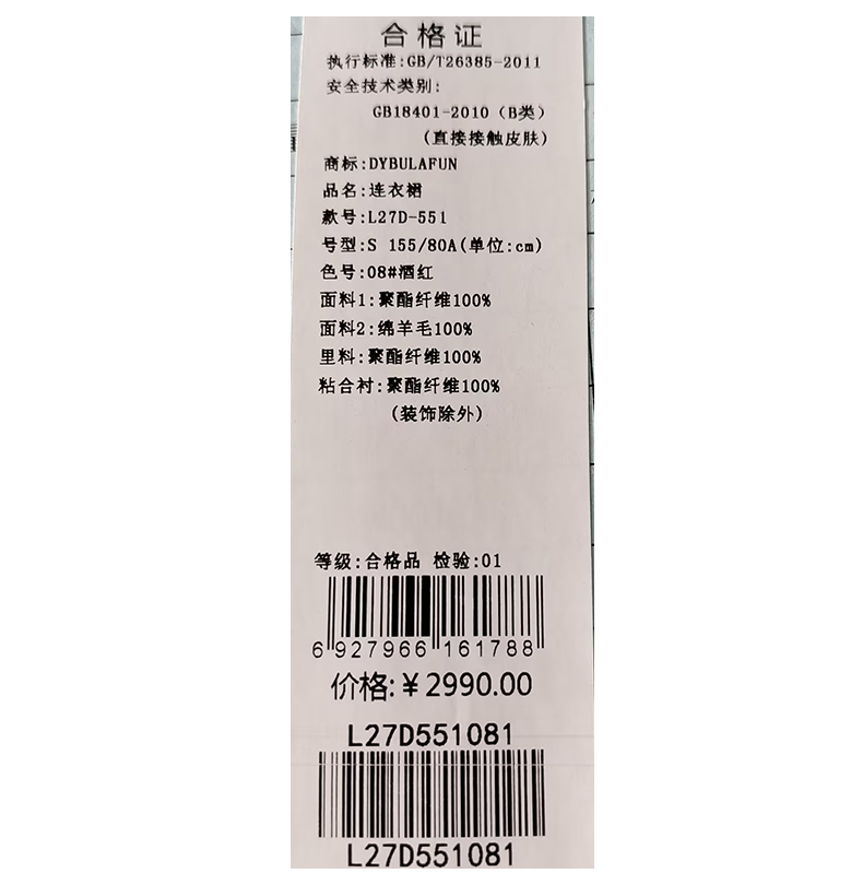 戴布拉芬连衣裙L27D551
