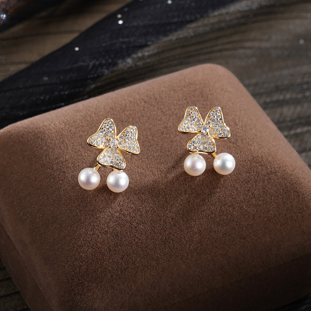 子佩集【幻彩三叶】银S925珍珠惜王妃耳钉【MLEH043】镀金2602