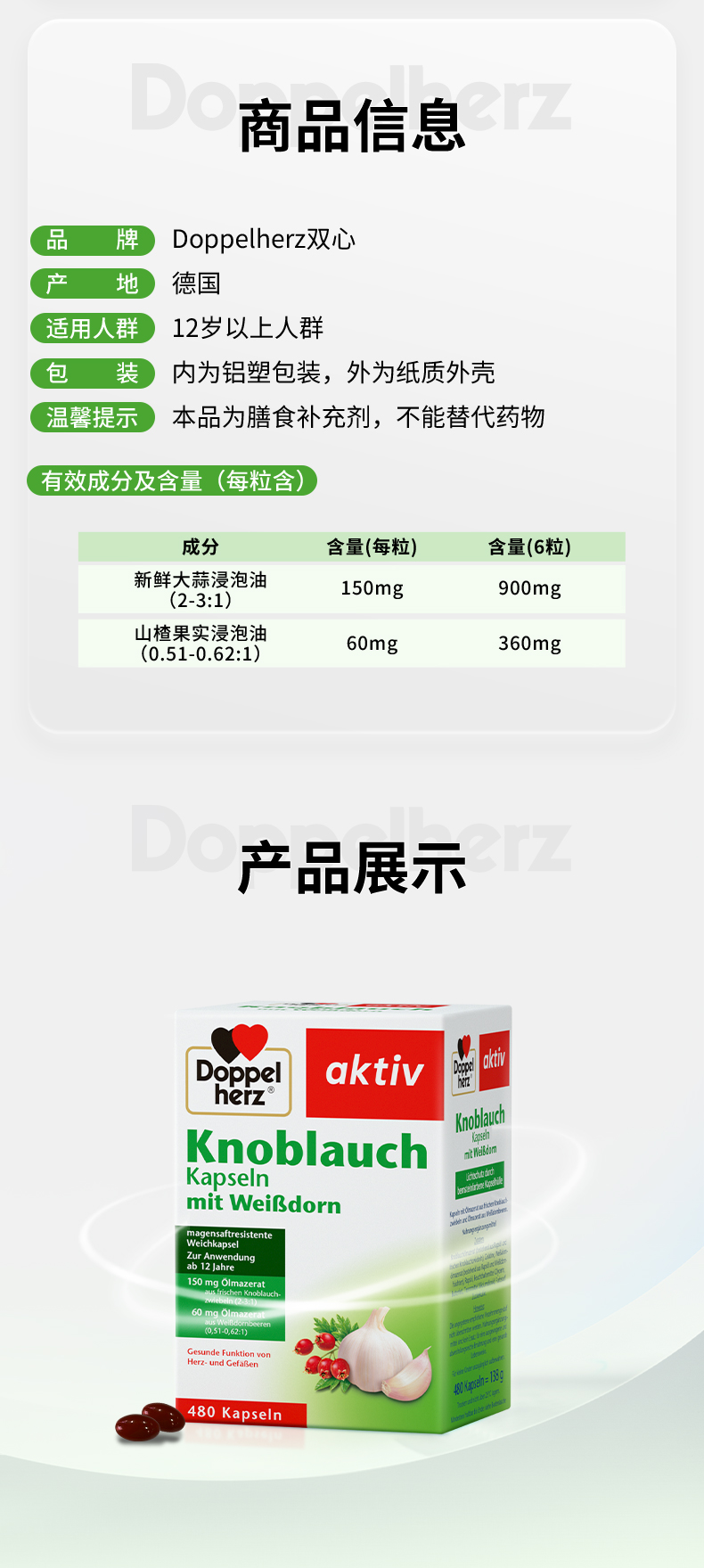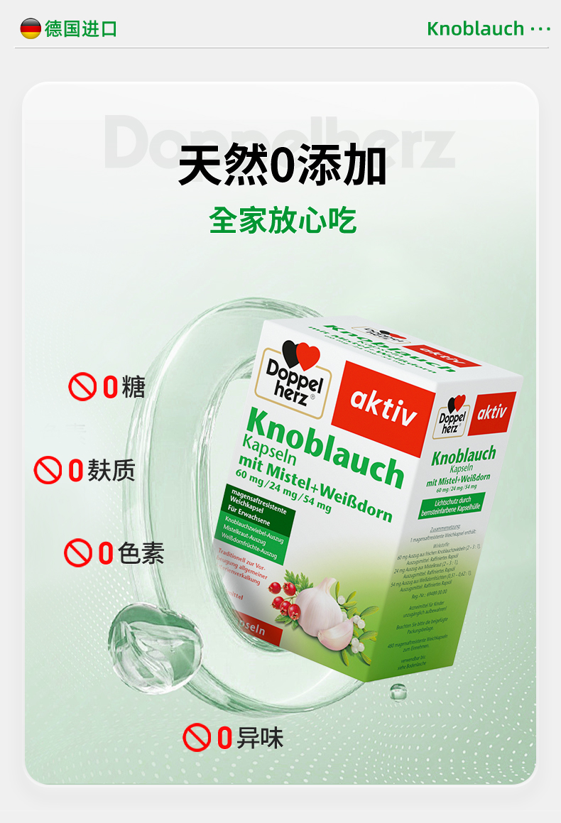 【德国双心】大蒜素山楂精油增强抵御力软胶囊 2盒装