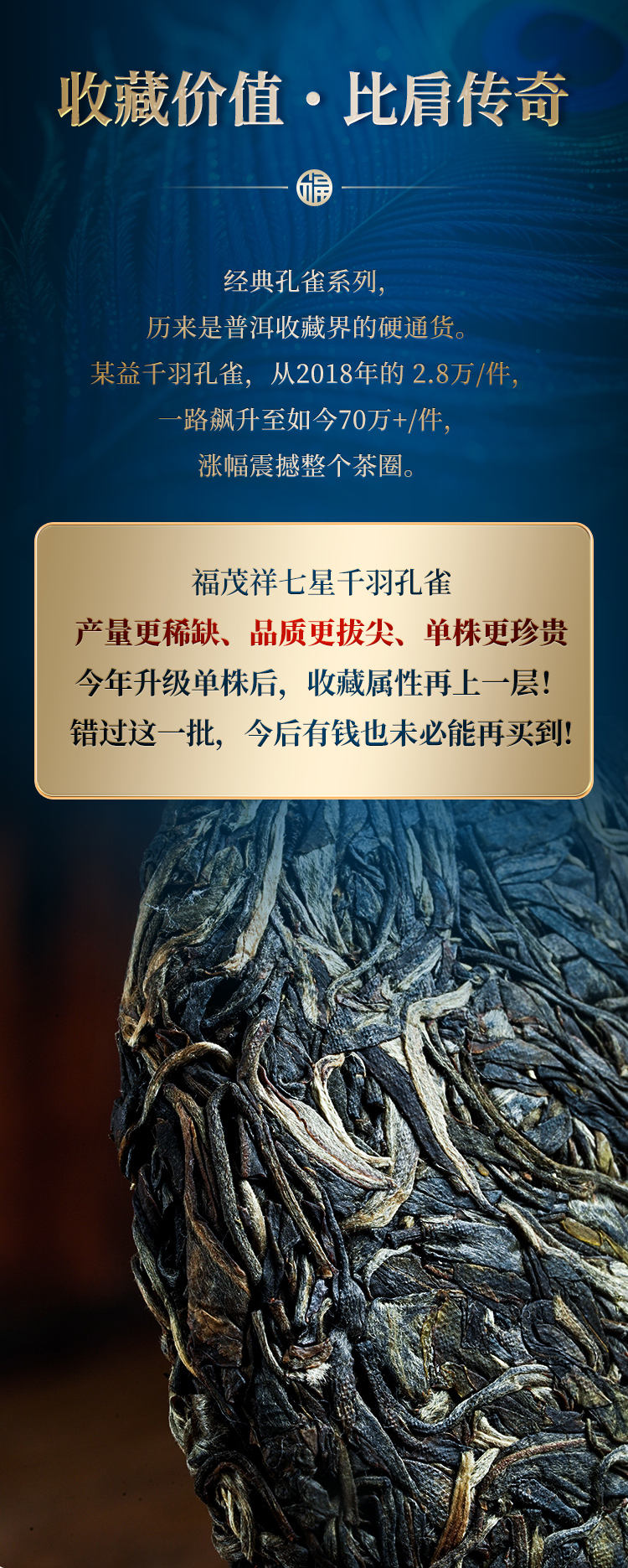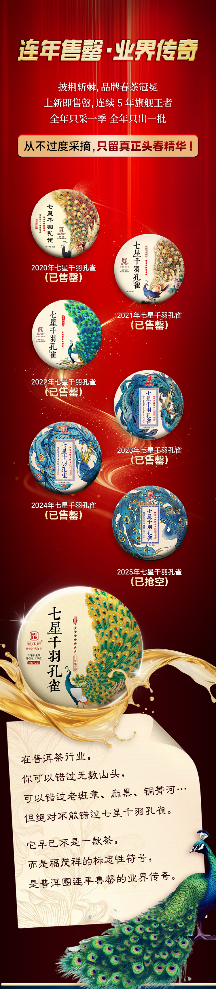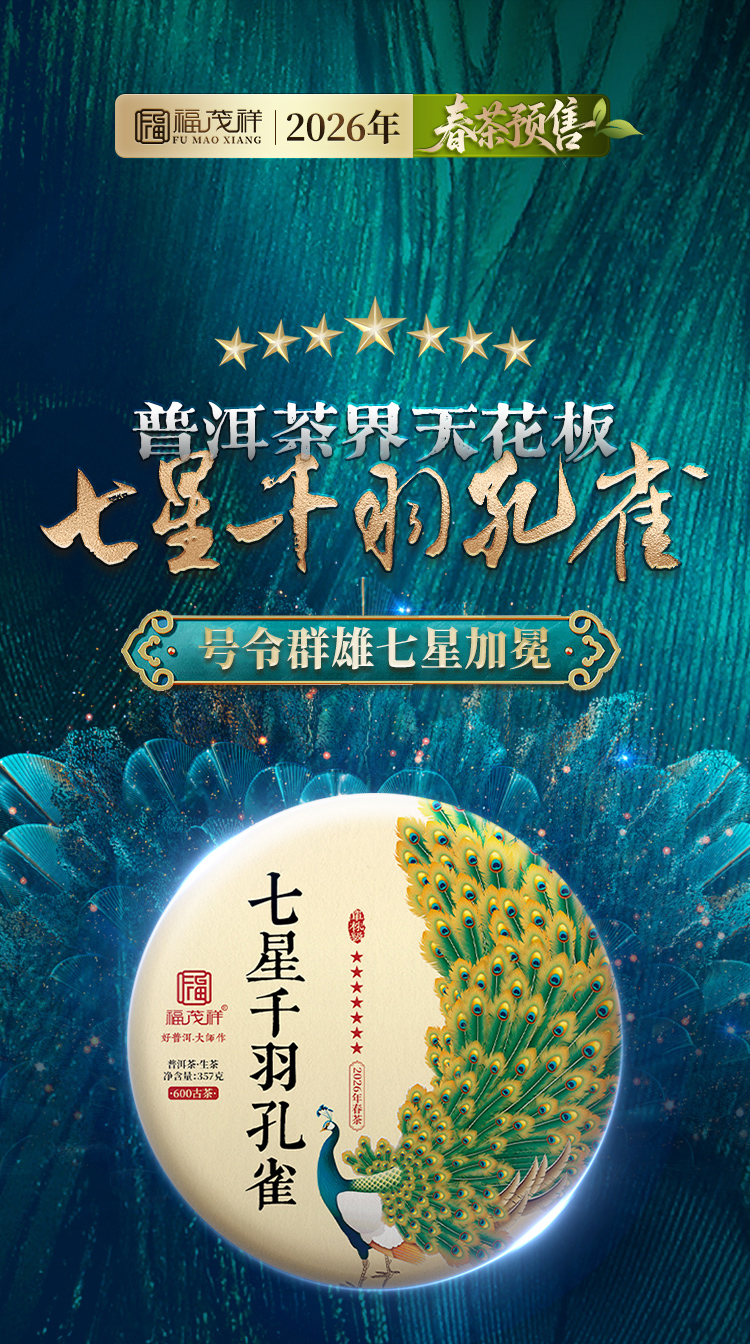 2026年春茶【七星系列】【七星千羽孔雀】一年一制 2026年勐海布朗山普洱茶生茶600年单株级古树拼配茶饼357g