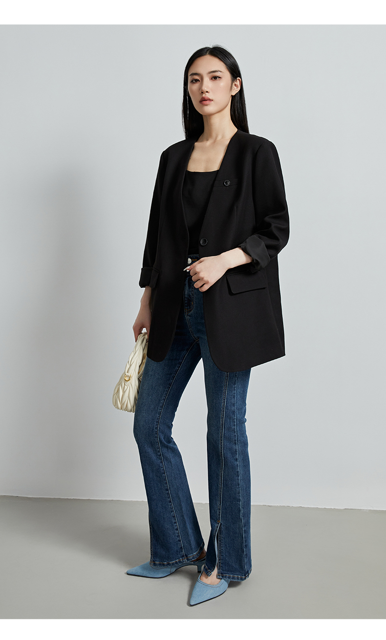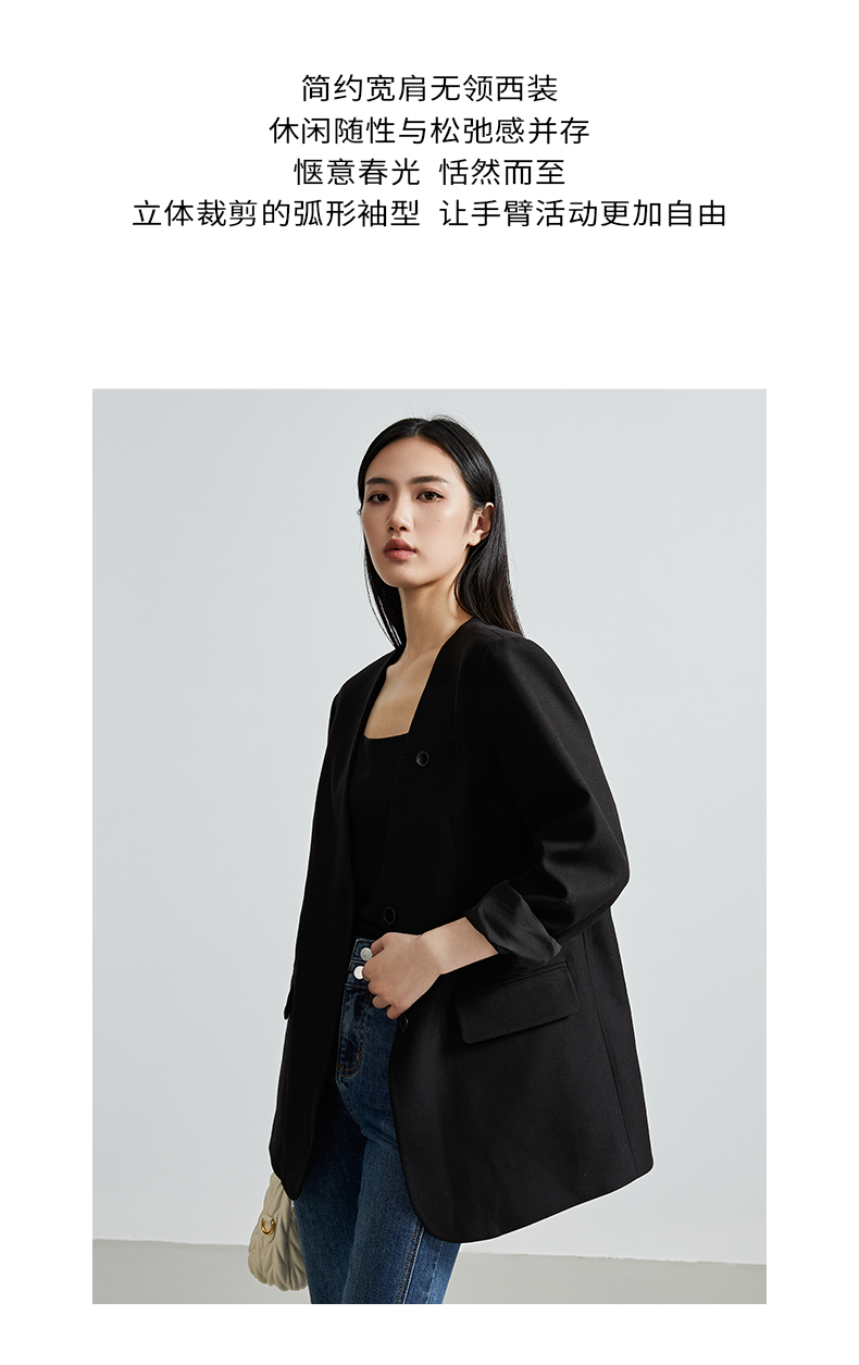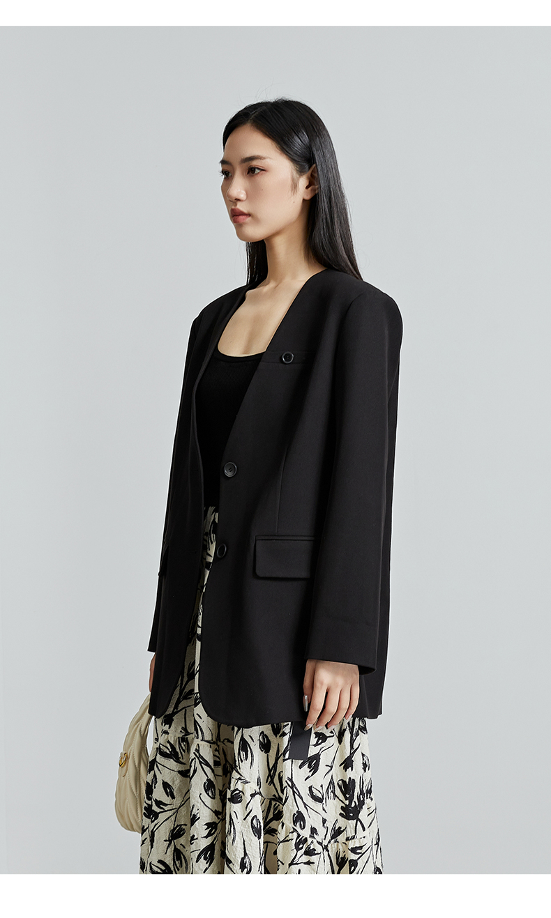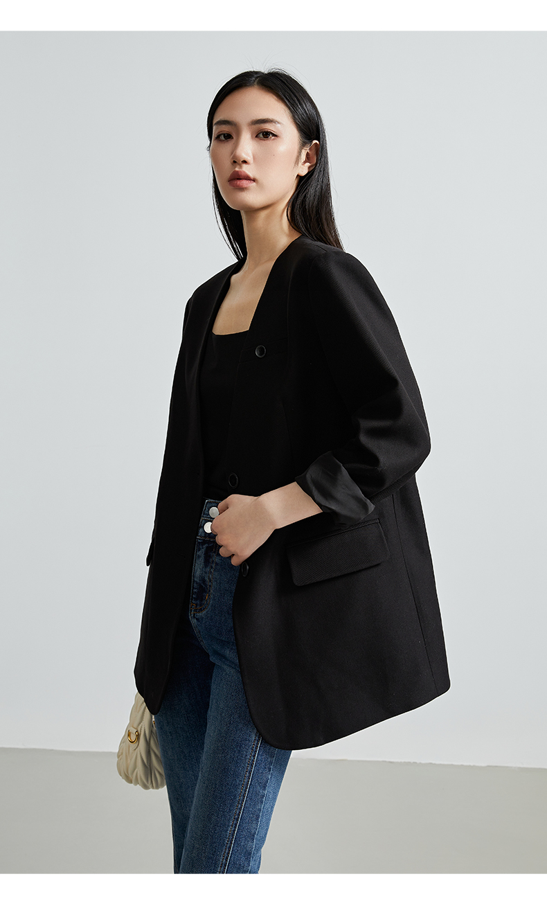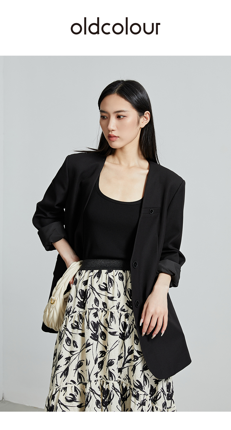oldcolour秋季新款通勤风直筒宽松显瘦半开领西装外套女P330408A1
