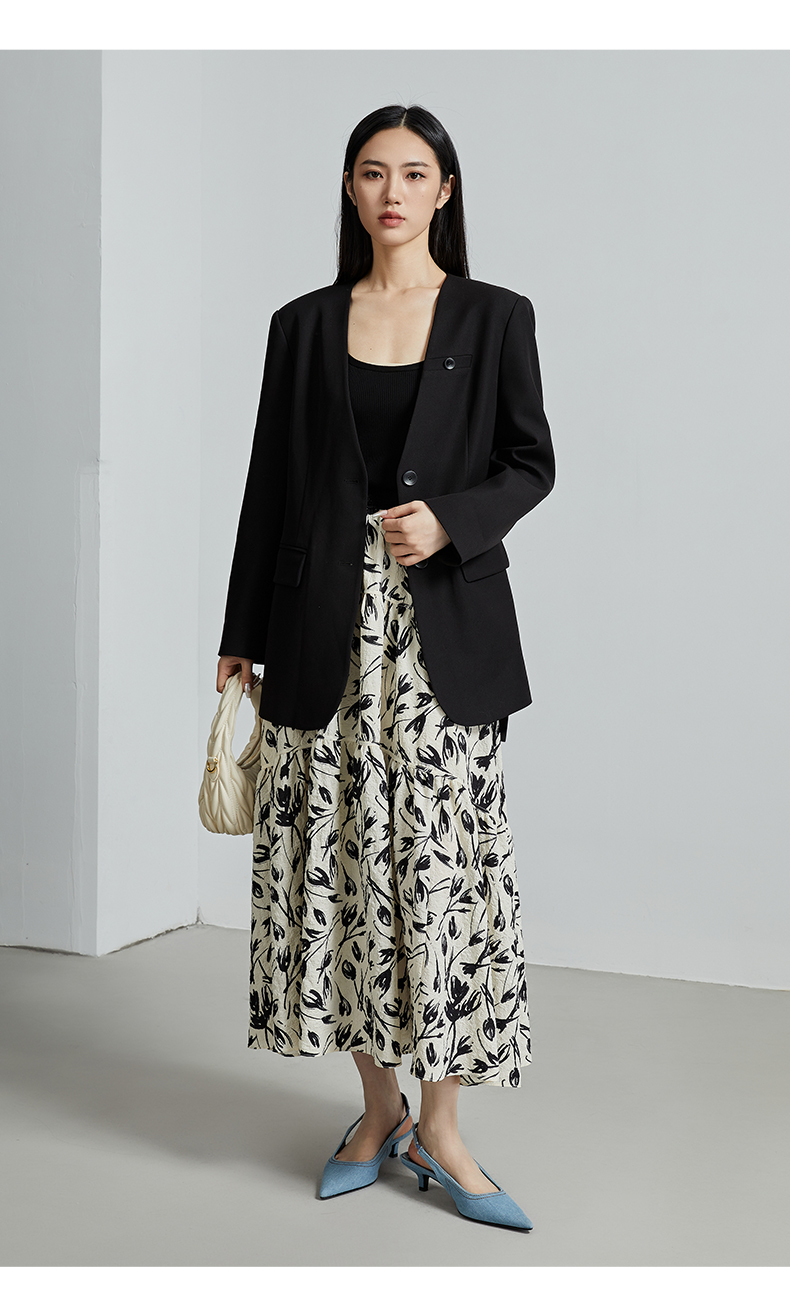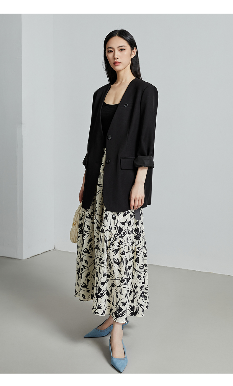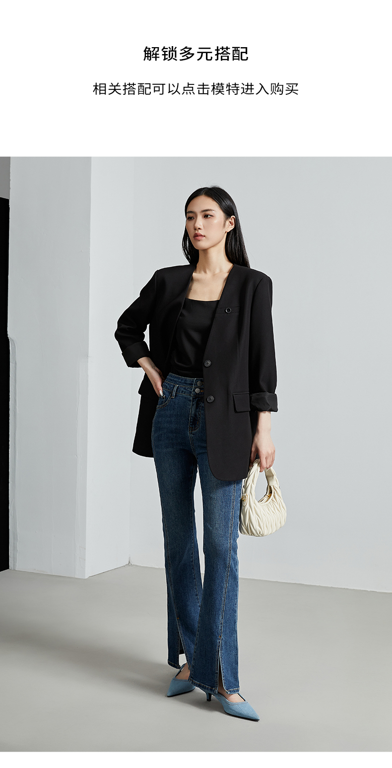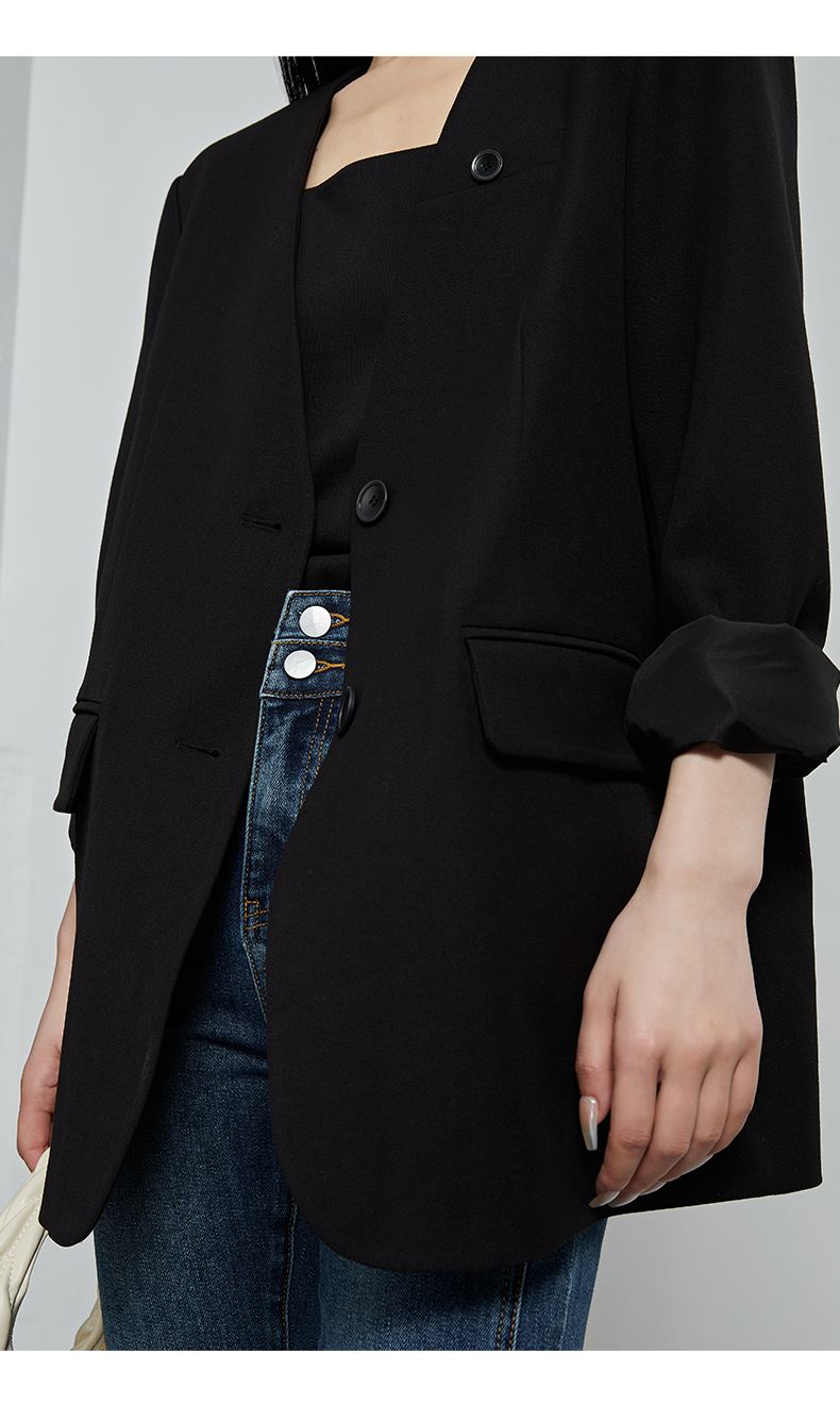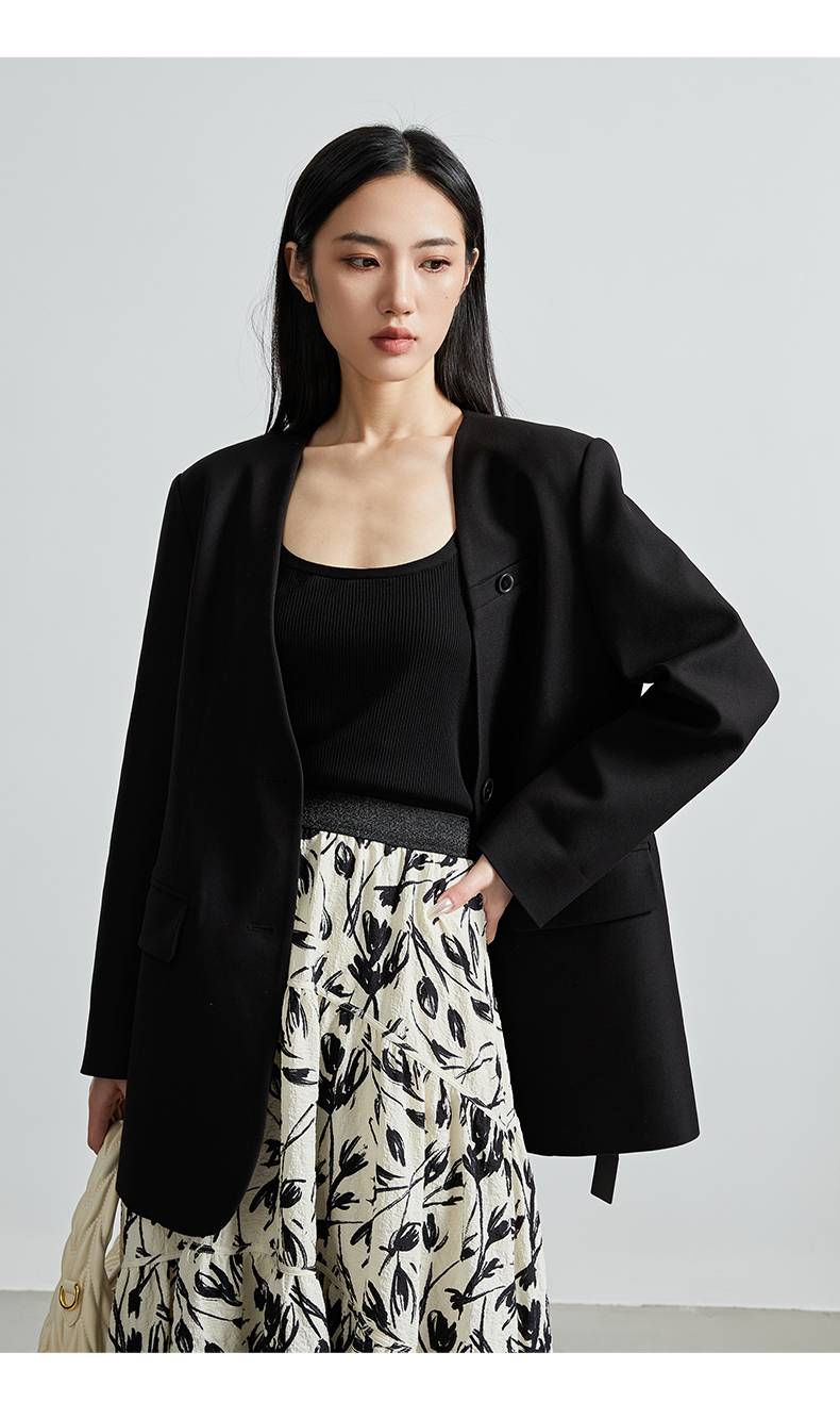 oldcolour秋季新款通勤风直筒宽松显瘦半开领西装外套女P330408A1