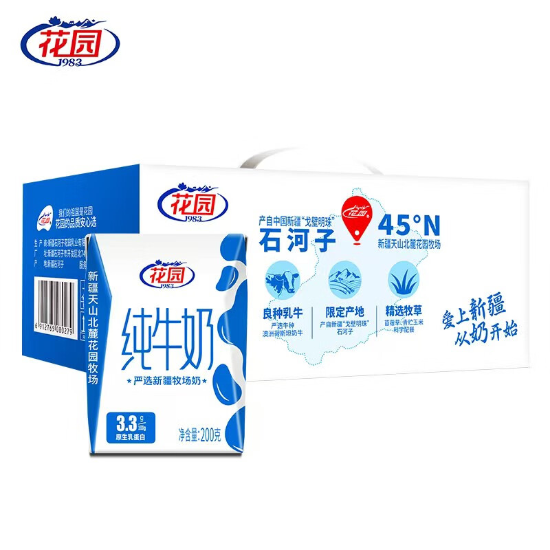 花园3.3g乳蛋白纯牛奶200克*20盒
