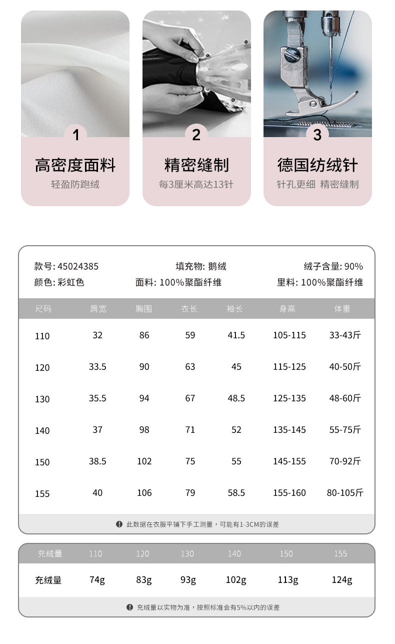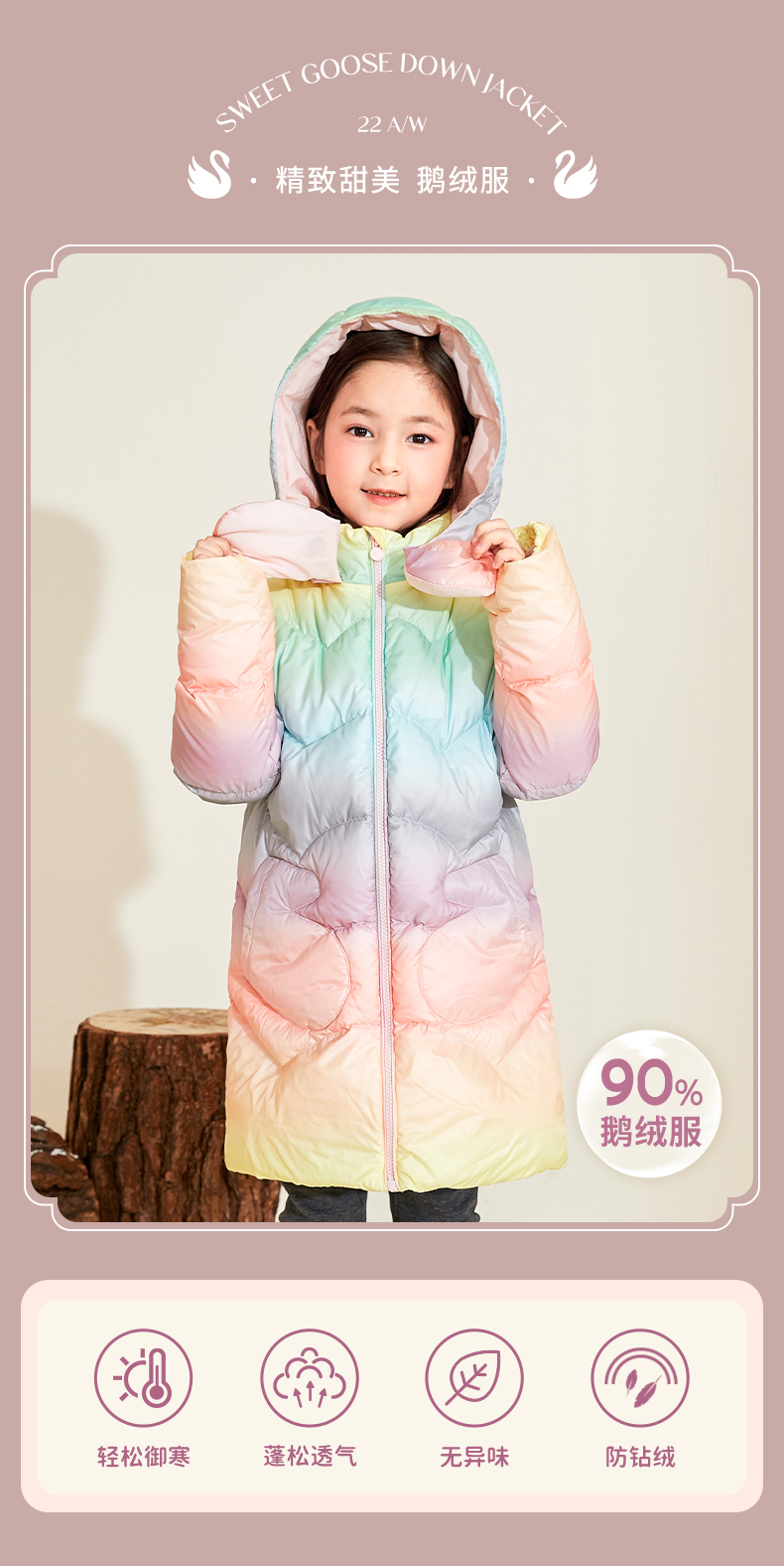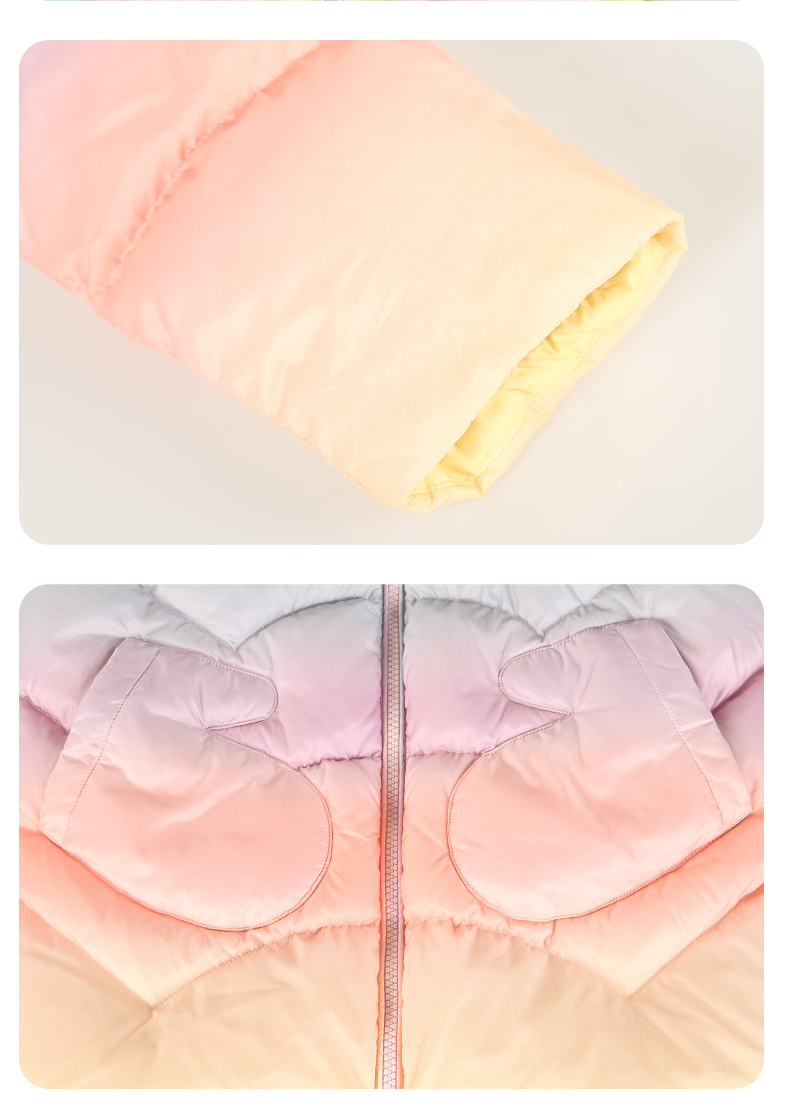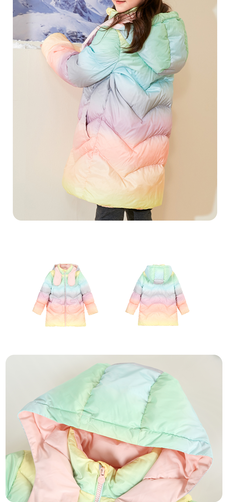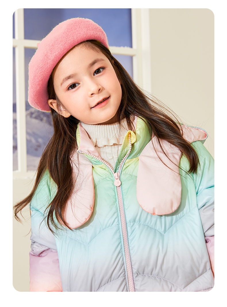 mettekids女童羽绒服冬季彩虹色白鹅绒儿童中长款加厚中大童外套