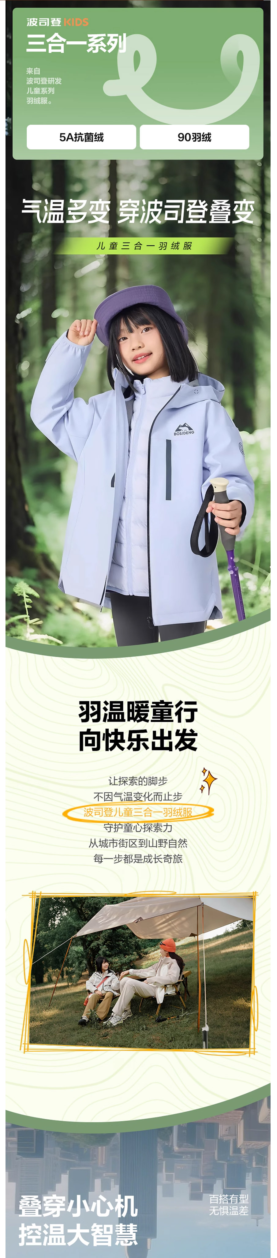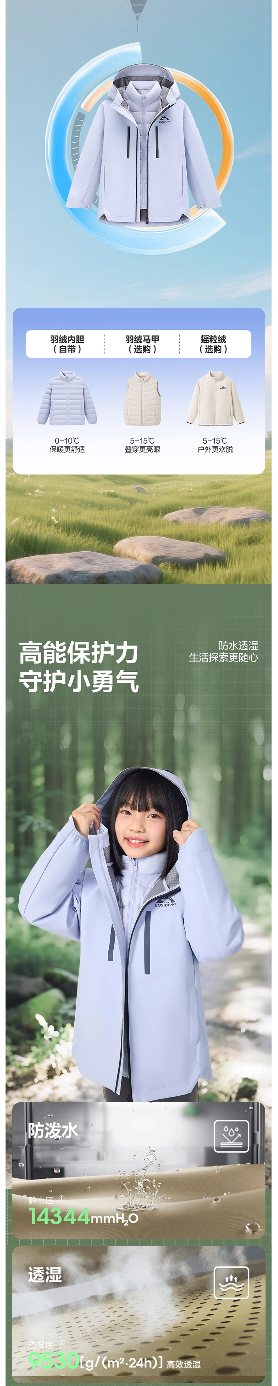 波司登25秋季新款三合一羽绒服男女童户外保暖防风防泼水T250131350