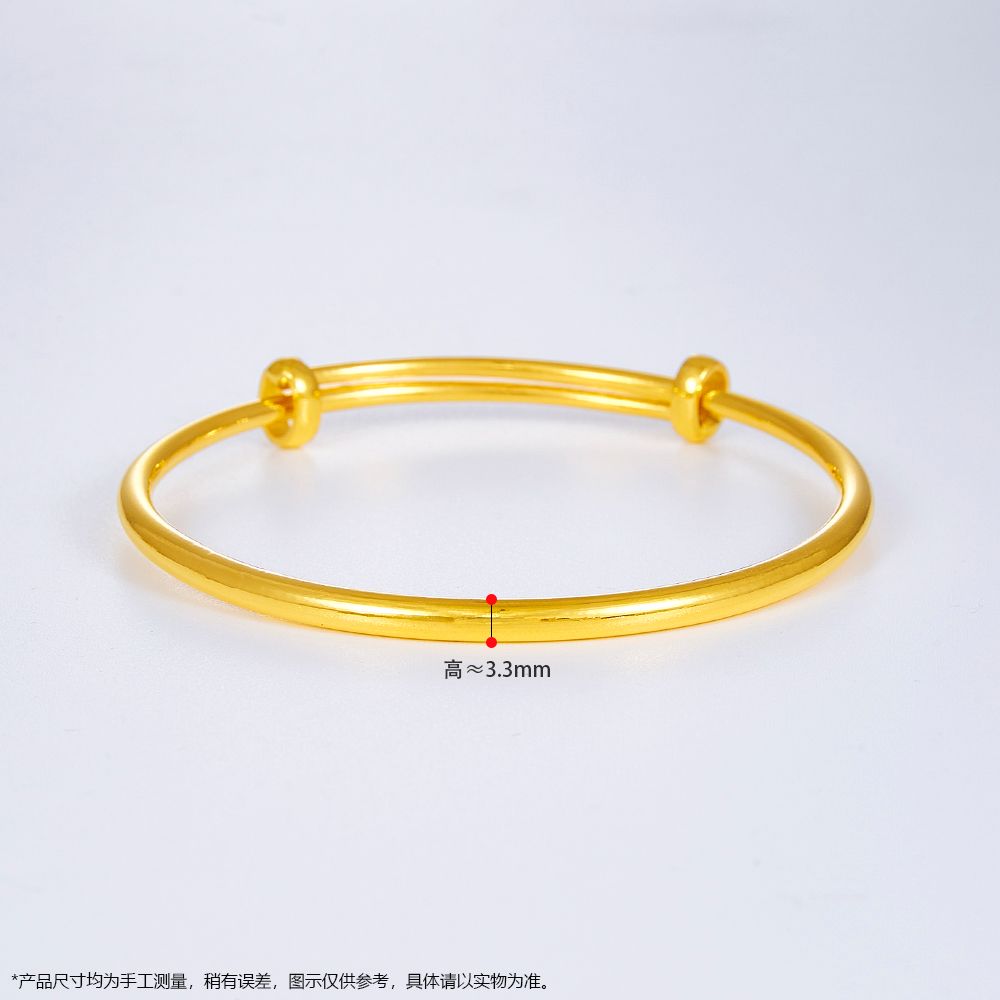 【限时克减150元】足金999.9 (面宽约3.4-3.6mm)实心手镯光面推拉手镯光圈推拉手镯素圈推拉手镯圆管推拉手镯(HWSZ00002-01)(预售产品下单后不退款不退货不换货不补差价)