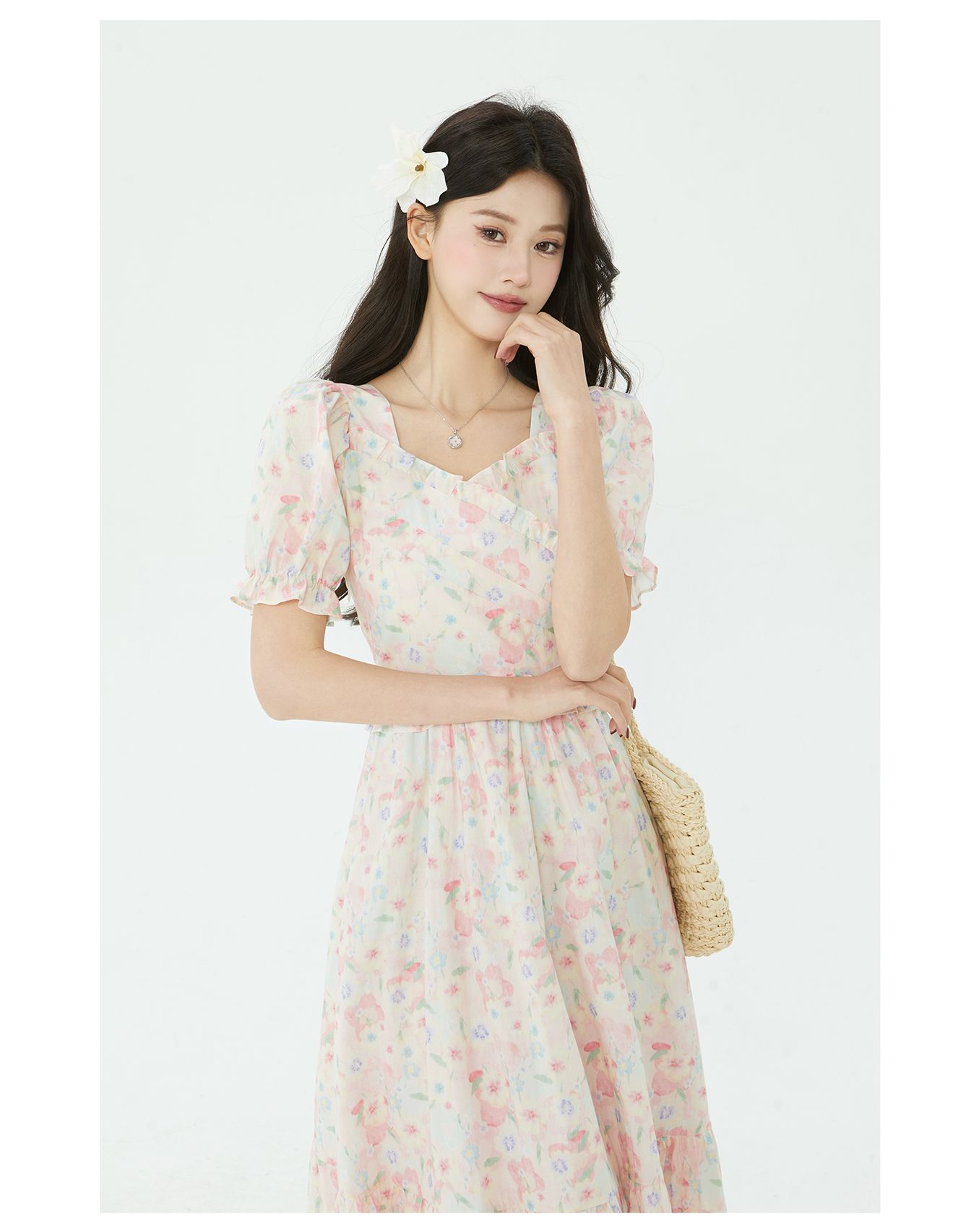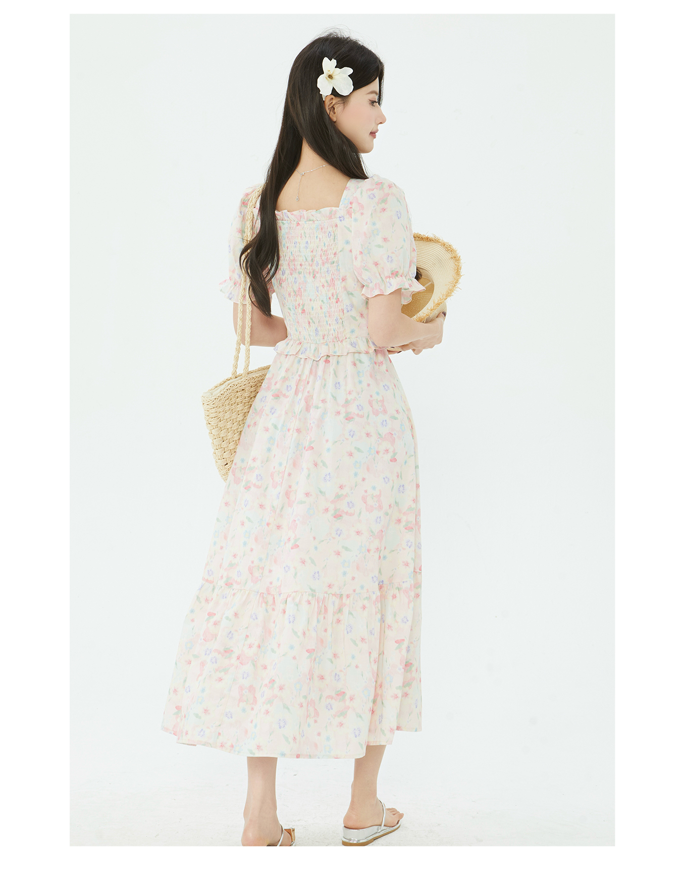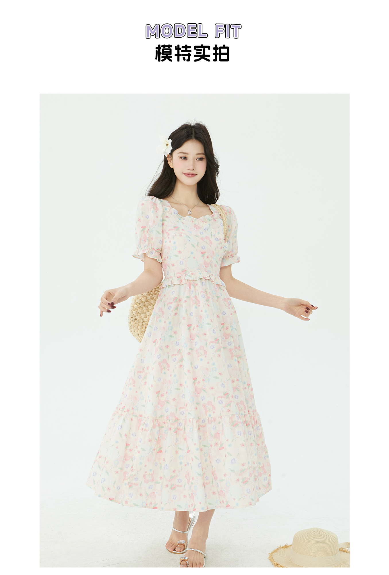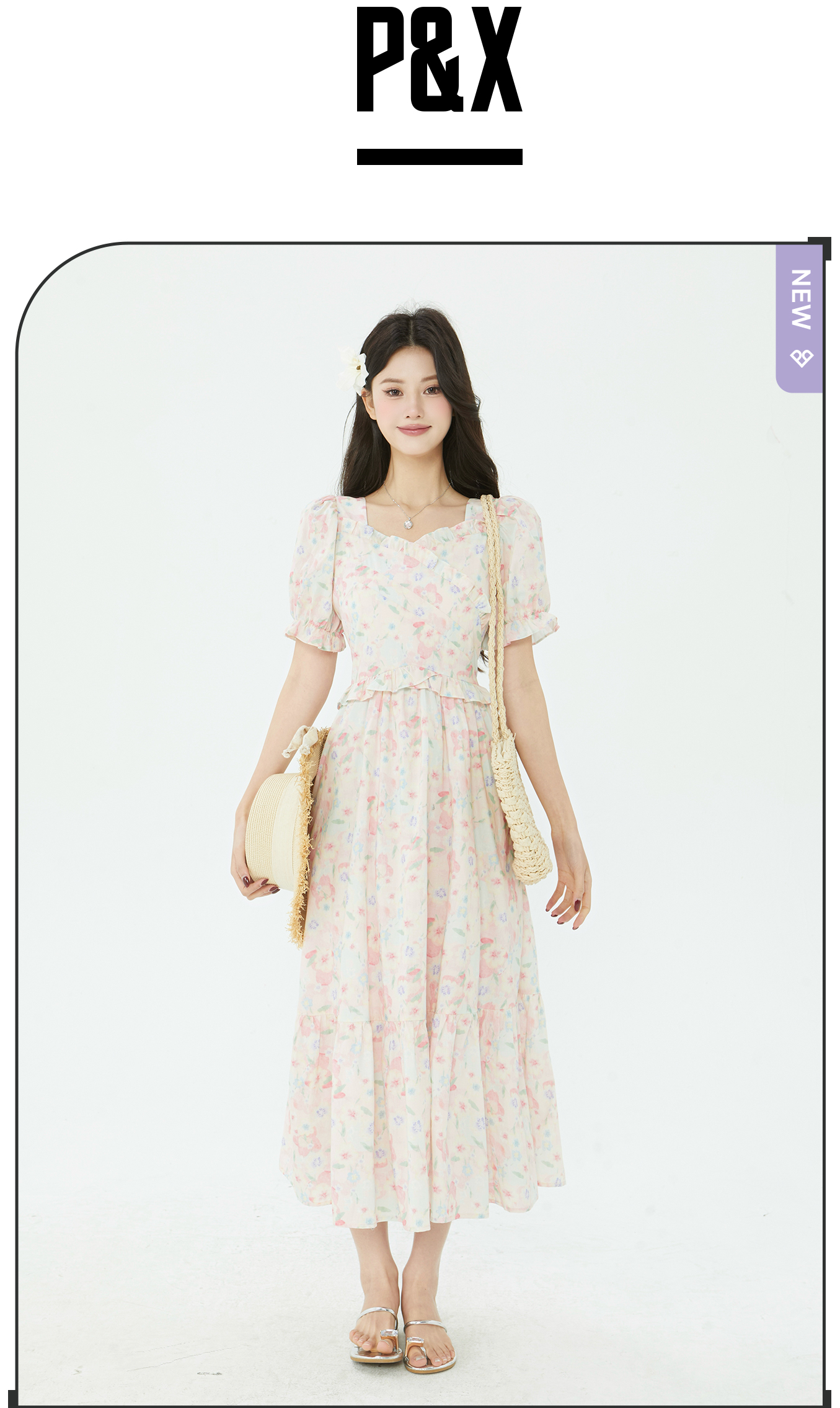 P&X设计师2025夏季新款田园风法式碎花连衣长裙825208181 花色