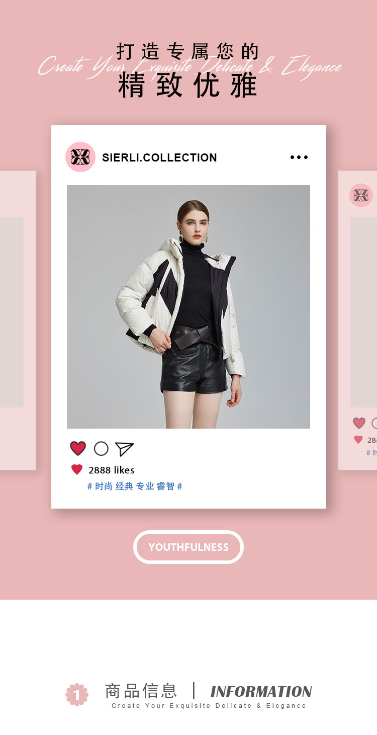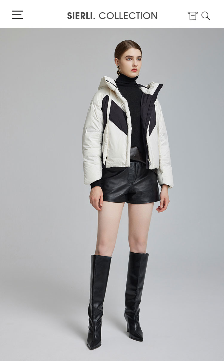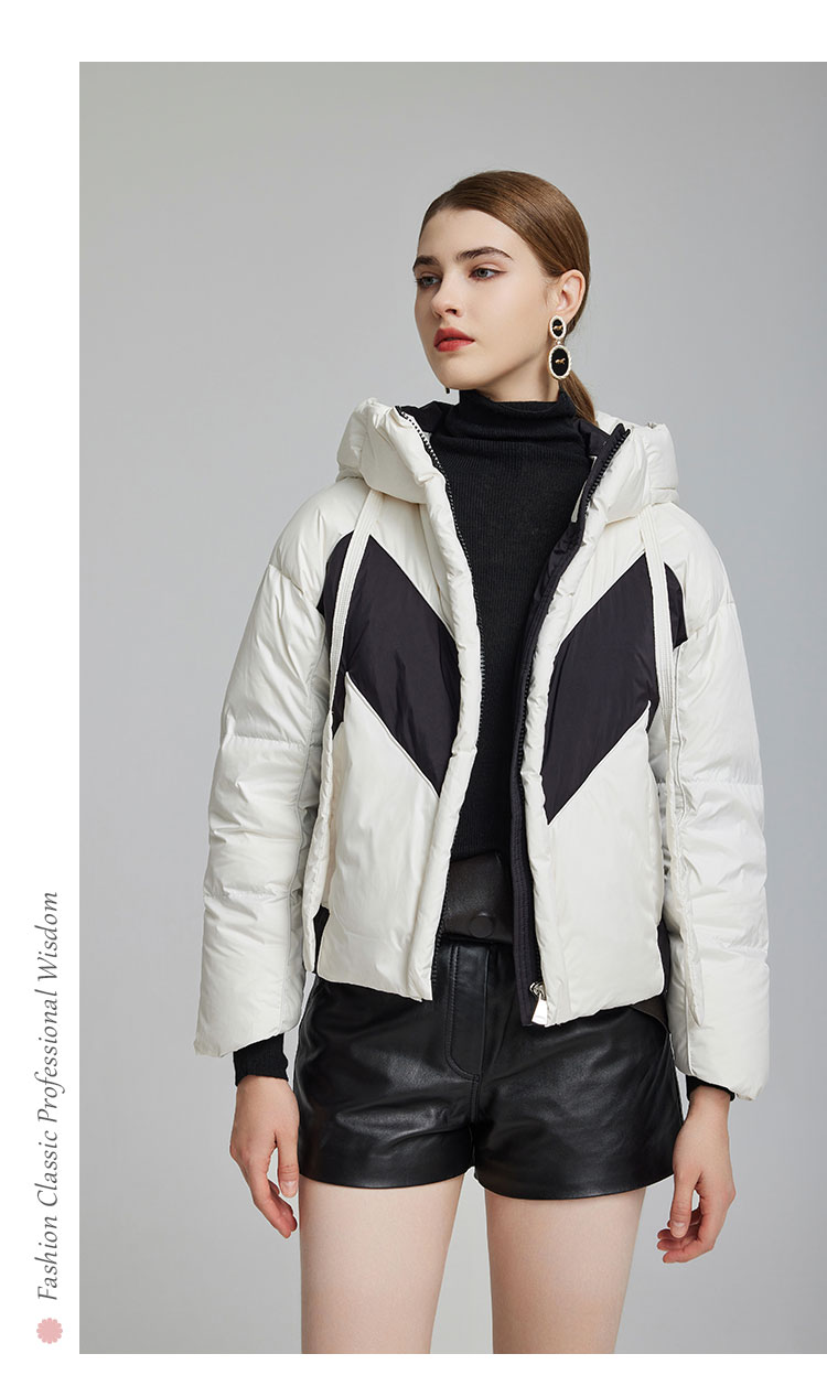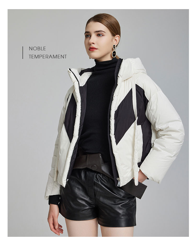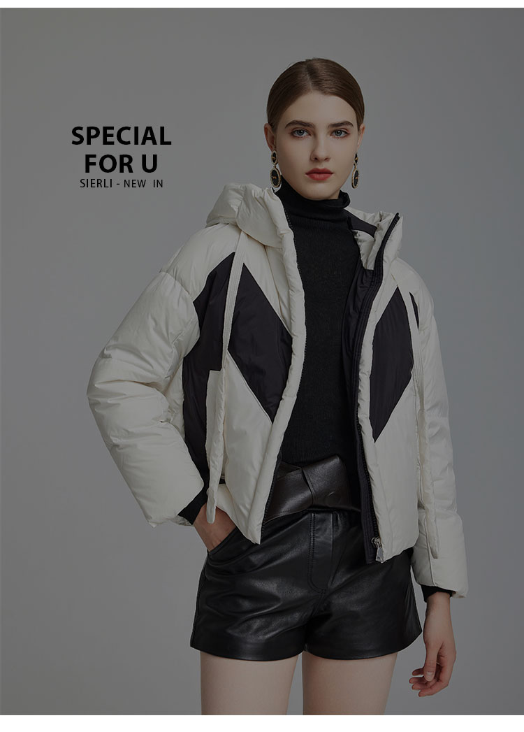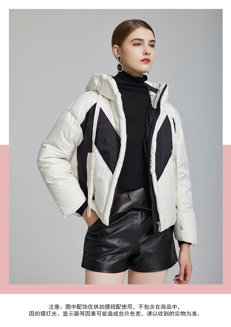 NR002斯尔丽2023冬款宽松时尚减龄短款小个子显瘦撞色保暖白鸭绒羽绒服