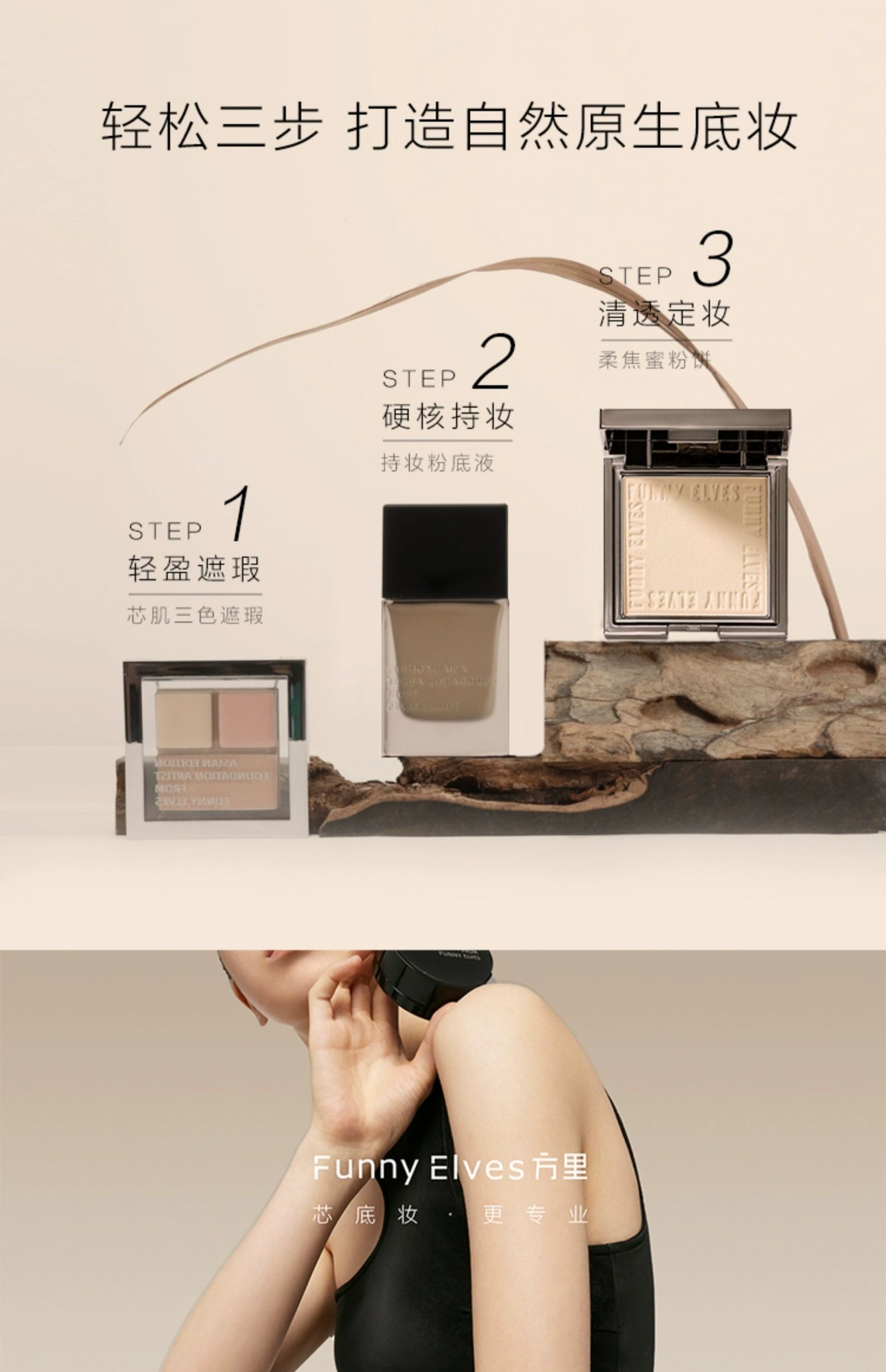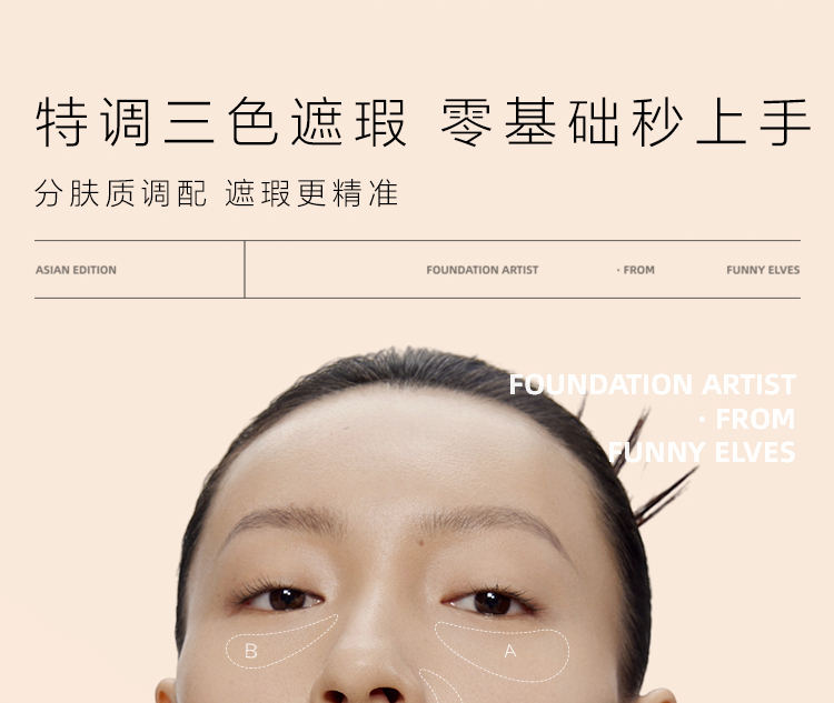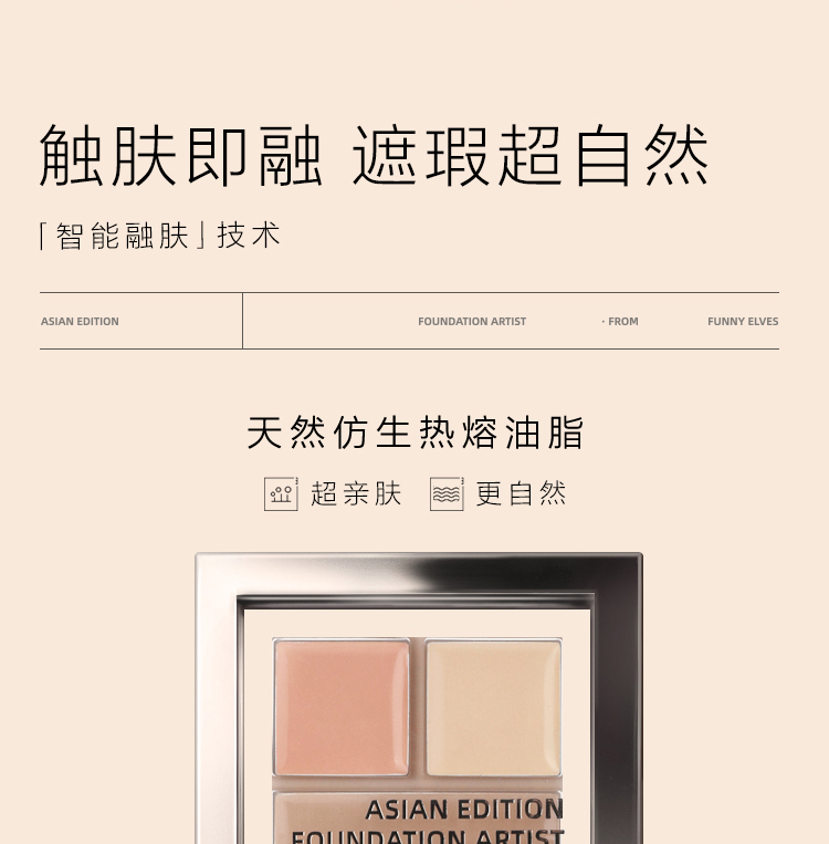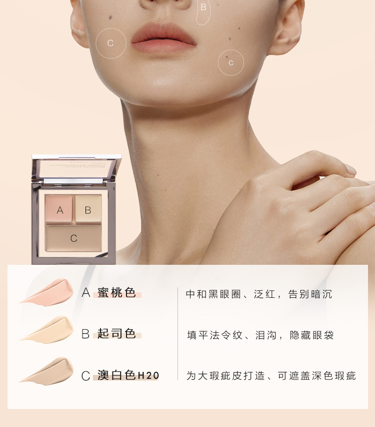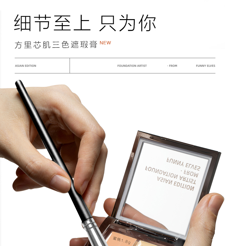 FunnyElves方里三色遮瑕膏H20面部遮瑕盘7.6g遮斑点痘印泪沟法令纹黑眼圈正装