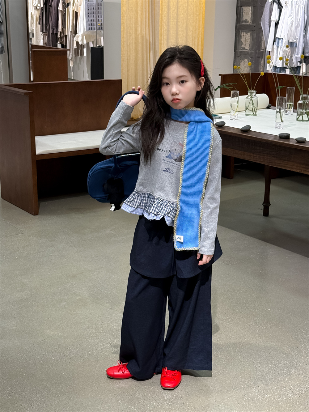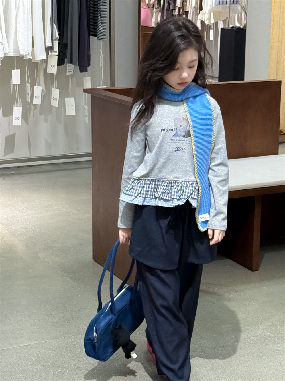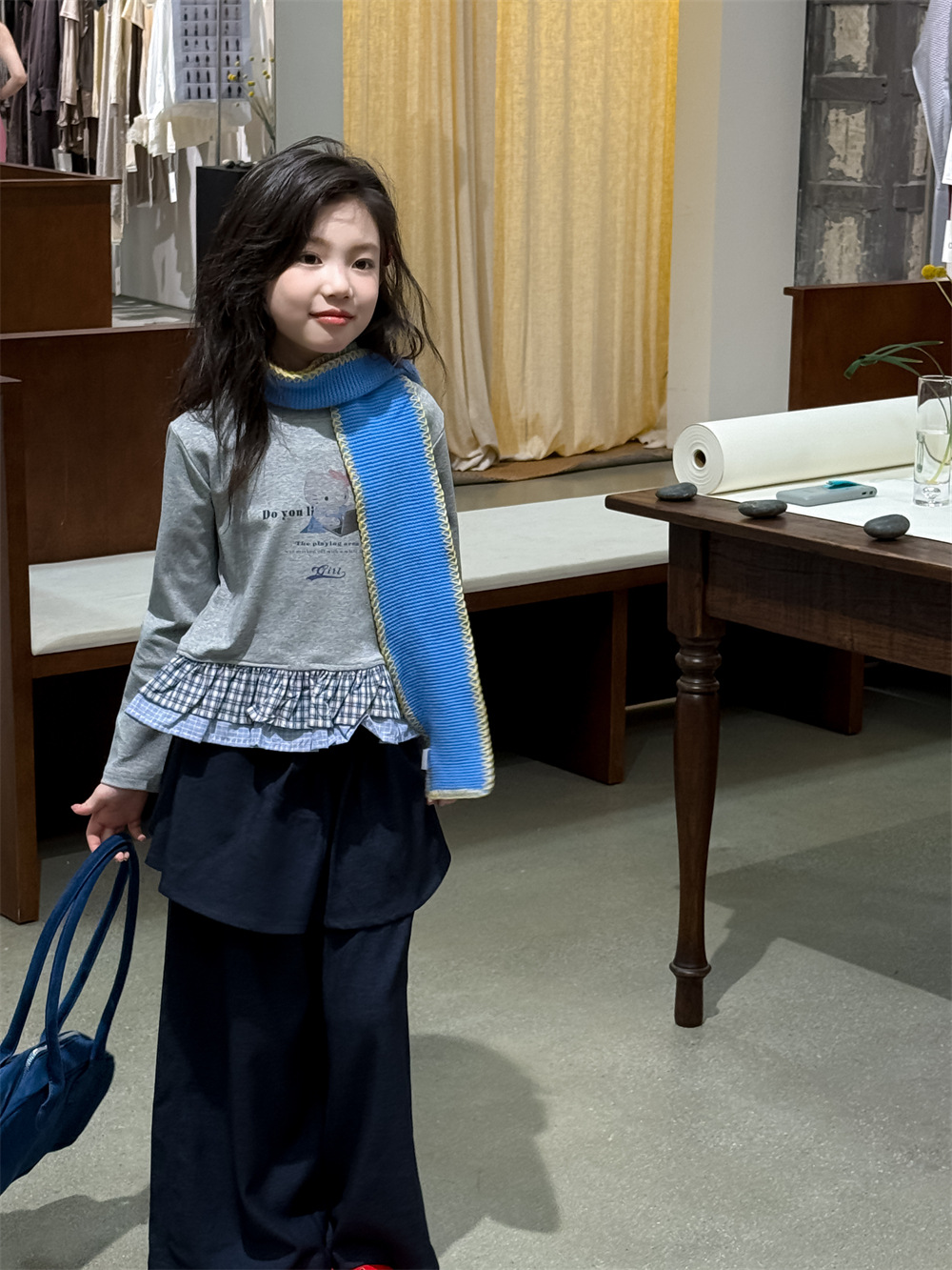 宸之昊CZH2025秋季新款童装女童卡通T恤中小童格子花边拼接上衣长袖打底衫★