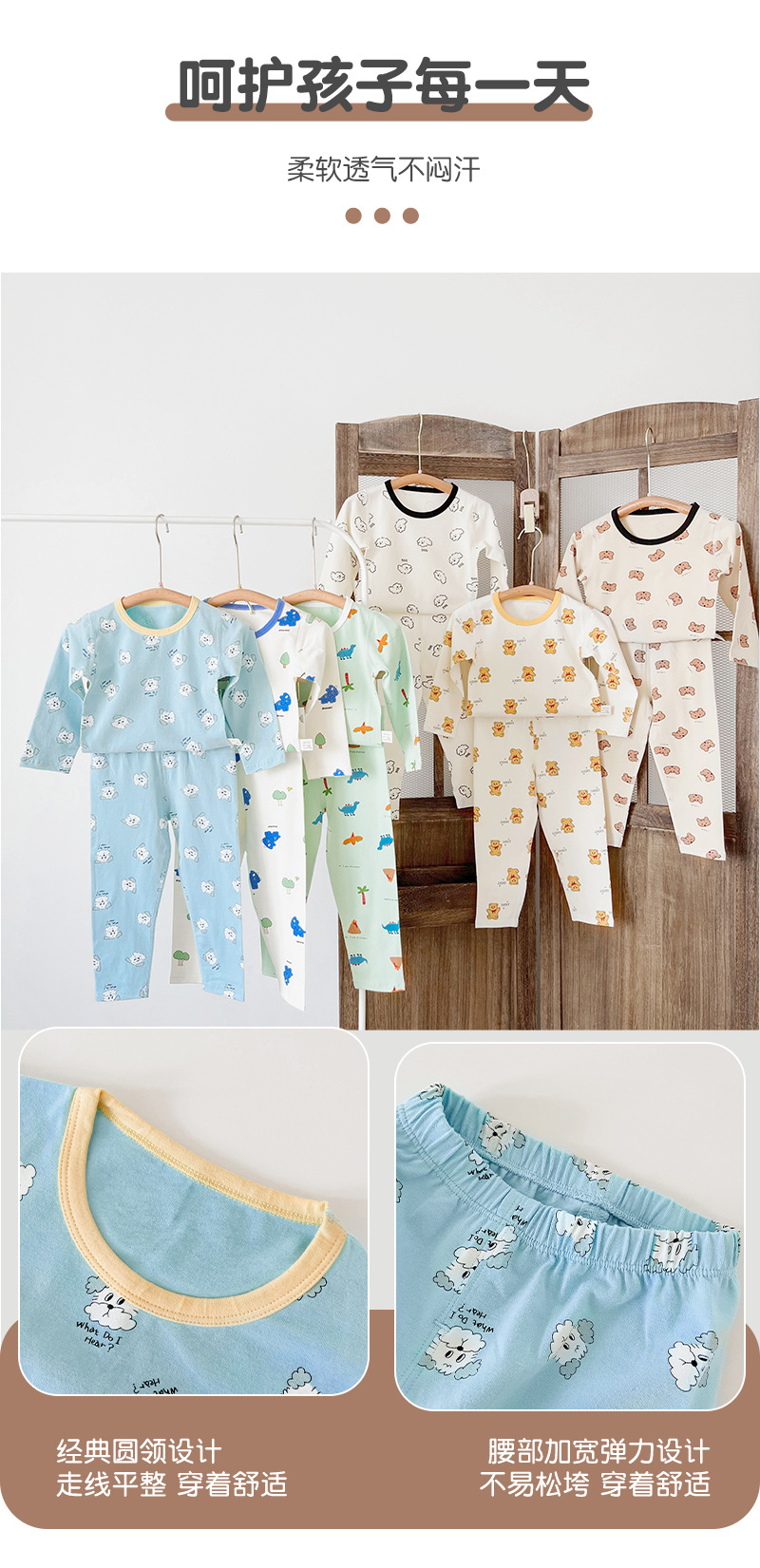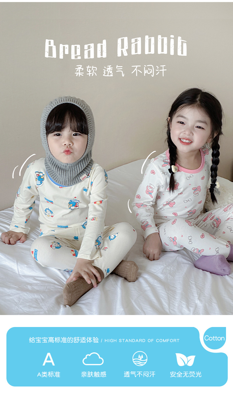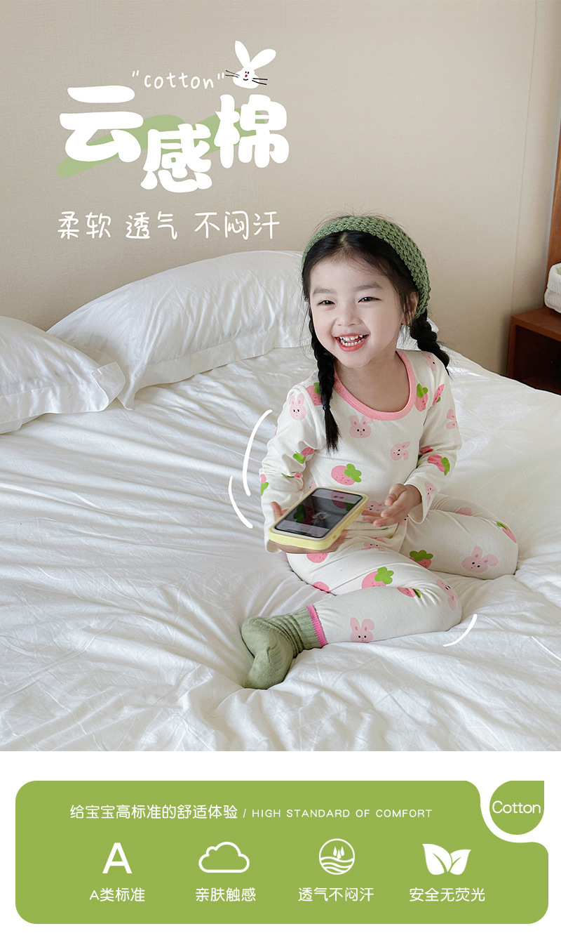 【火火兔甄选】【儿童睡衣套装秋冬男女童宝宝A类纯棉卡通莱卡家居服内衣两件套】甄选新疆长绒棉,云感棉 柔软 透气 不闷汗,直筒宽松版型 穿上就不想脱的舒适,多种颜色选择,色牢度高 不易掉色。
