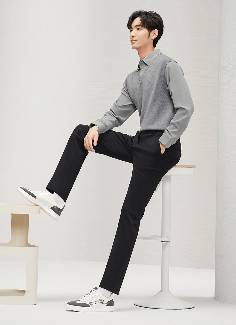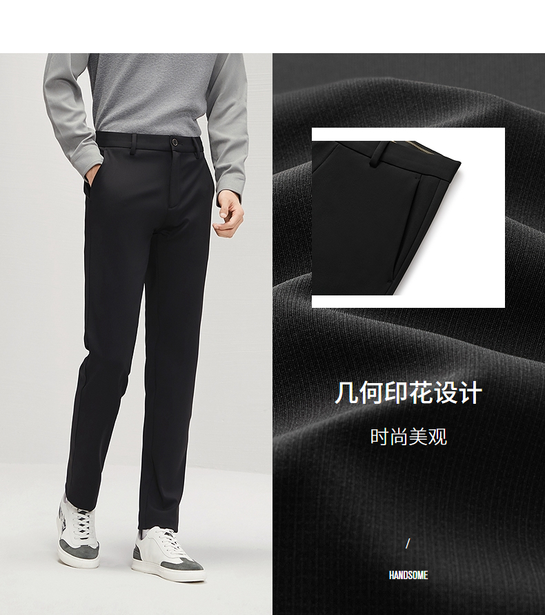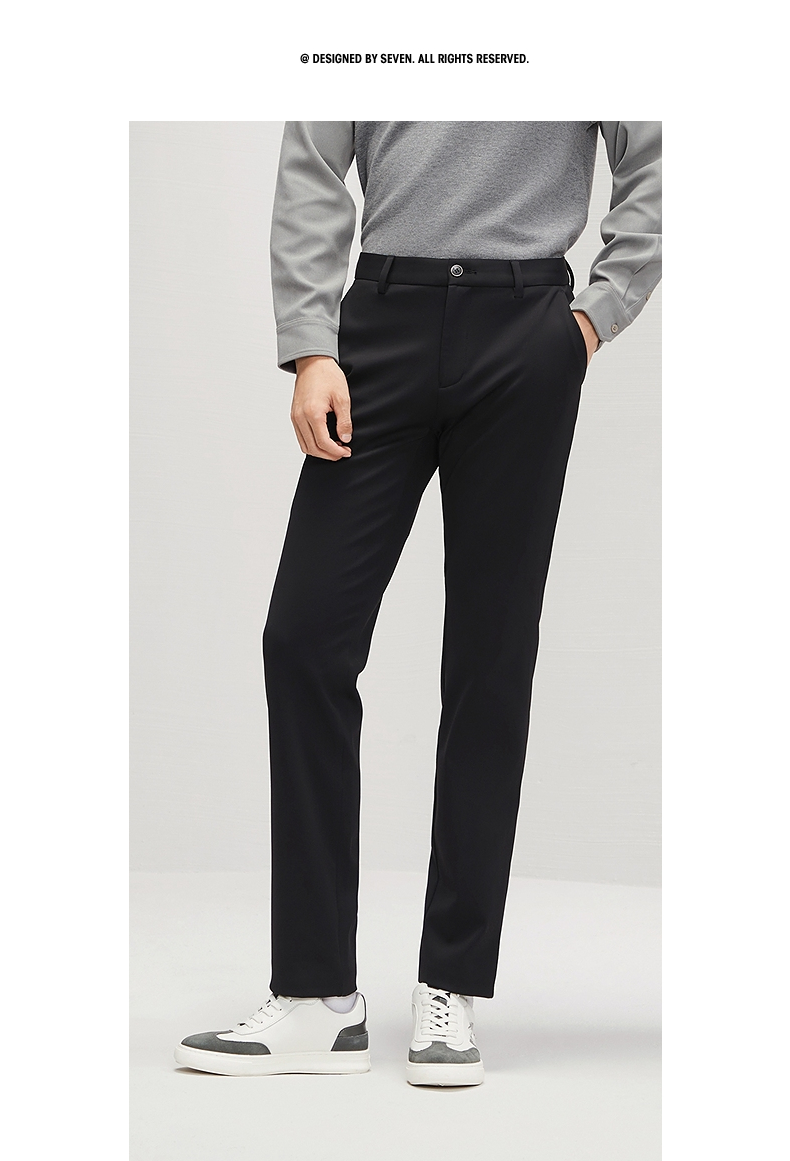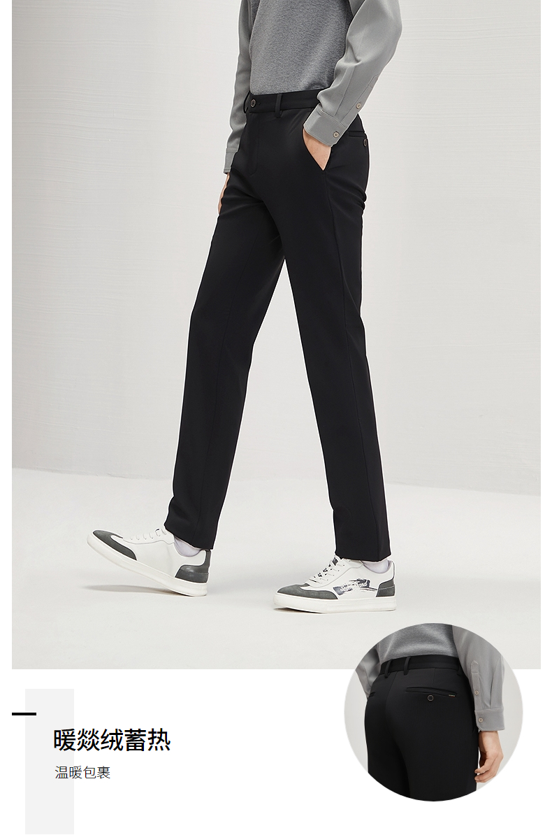 【暖燚绒】柒牌男裤保暖休闲裤秋冬厚款磨毛针织中腰修身直筒长裤 127H72570