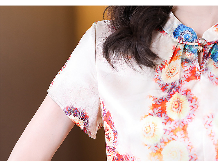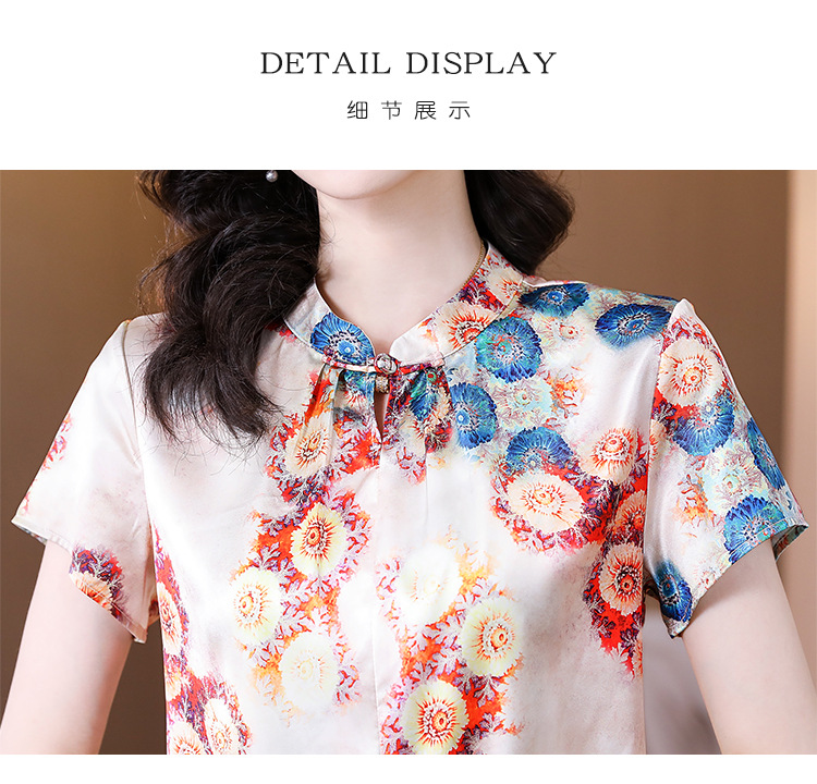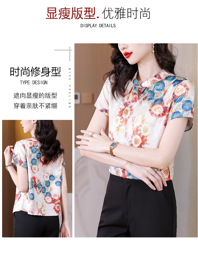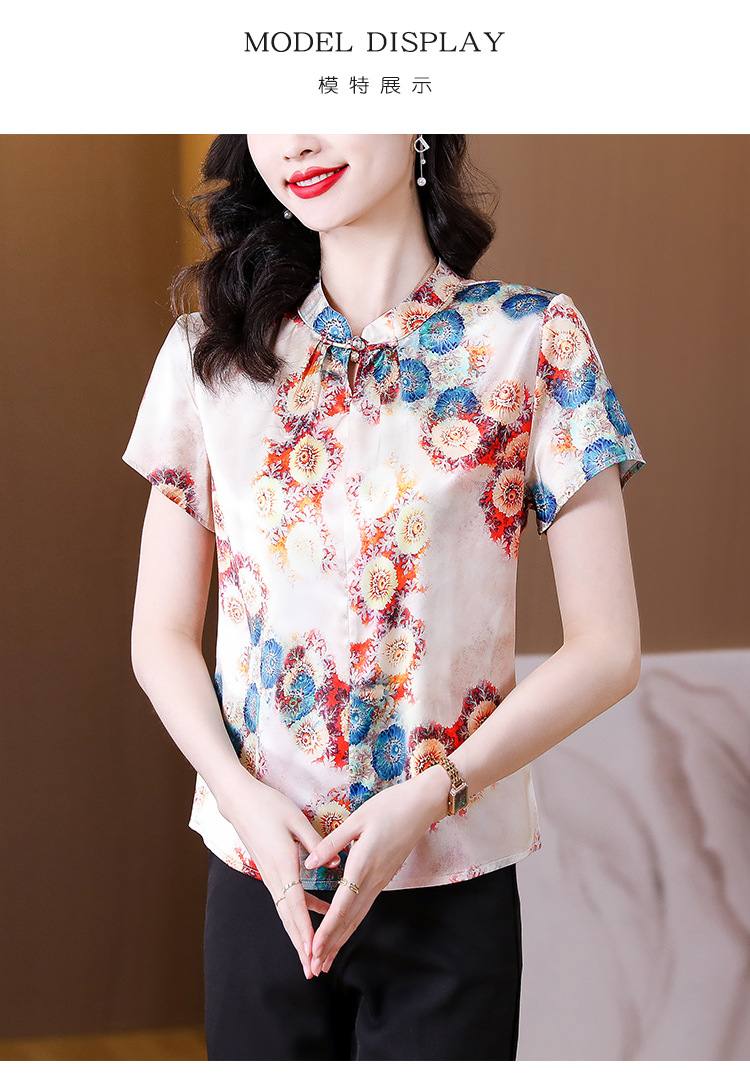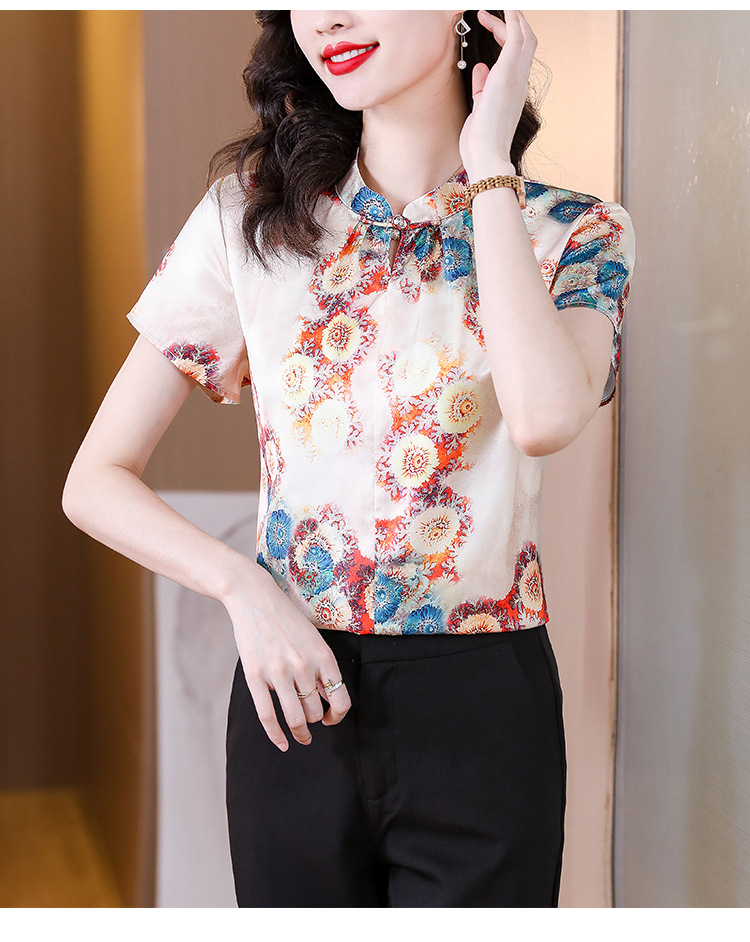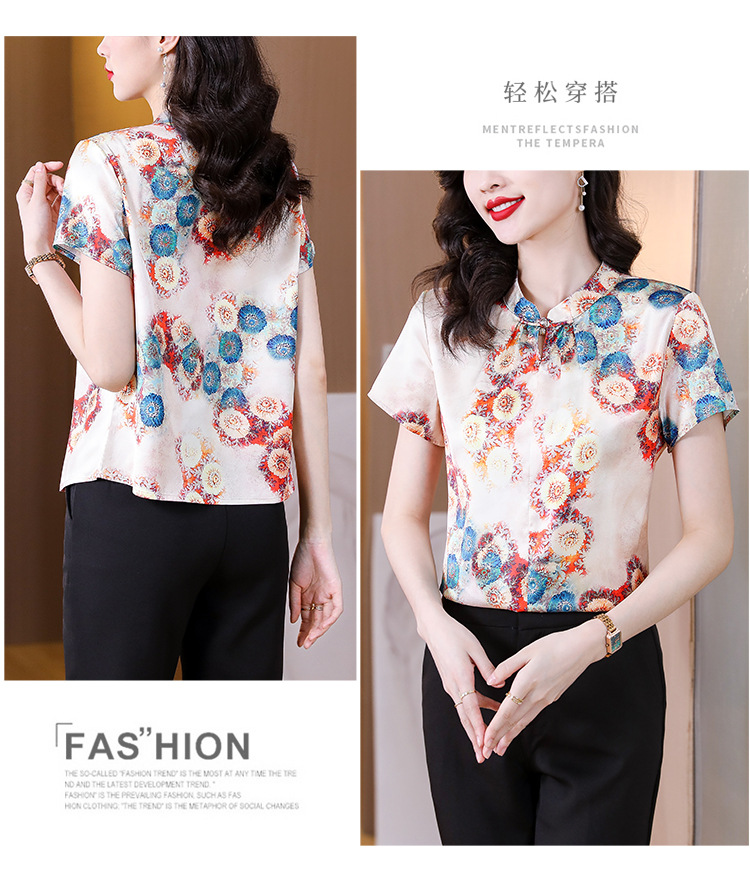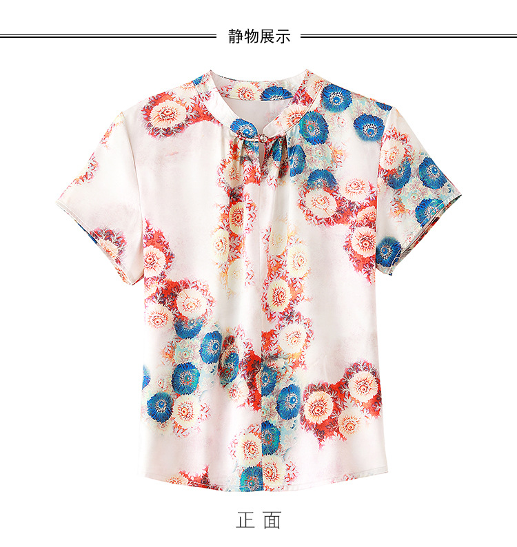 新款气质百搭打底t恤短袖女印花盘扣中国风上衣KQL-A139N839