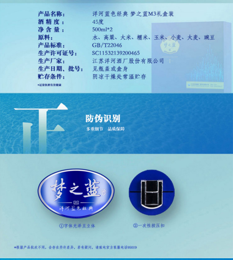 洋河梦之蓝M3-45度500ml*2瓶礼盒装 浓香型白酒