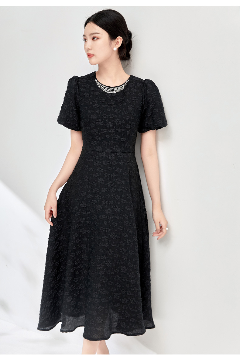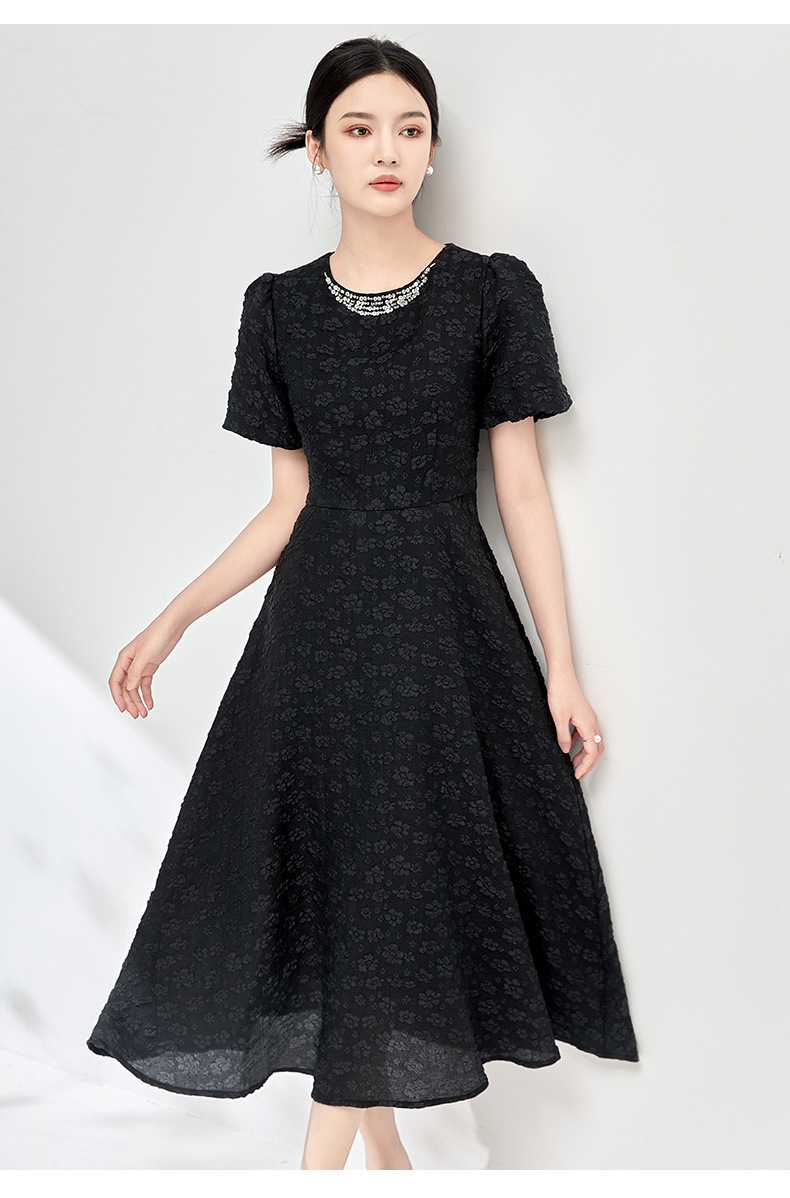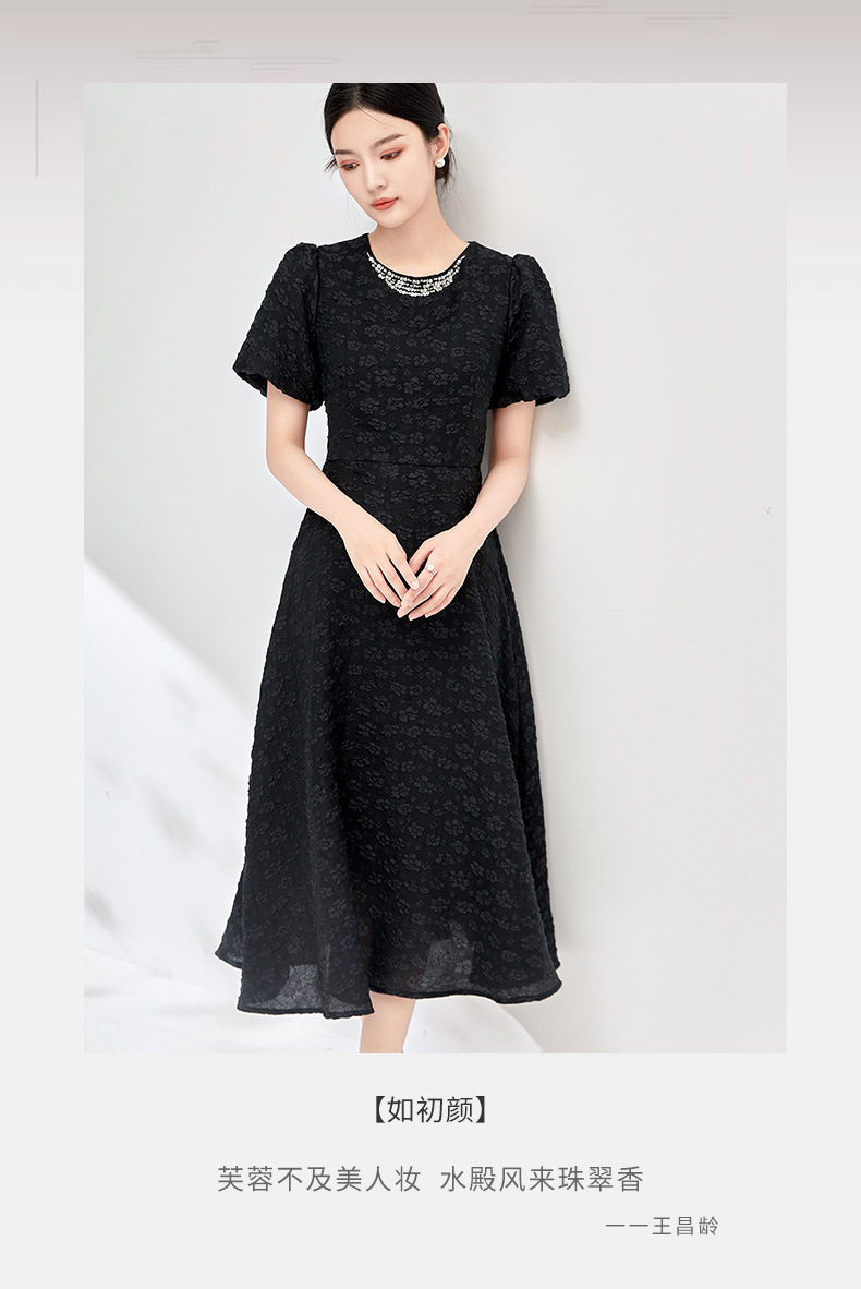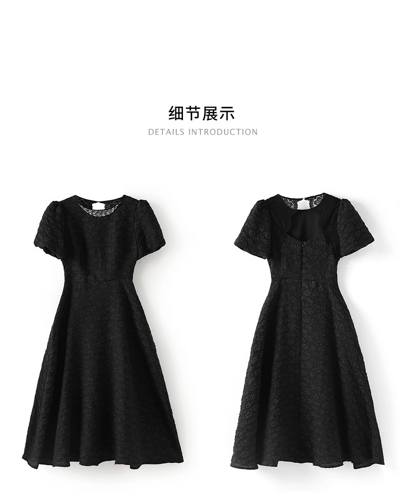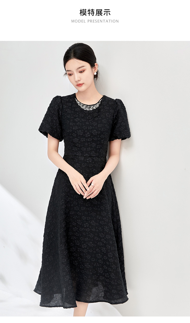 法式复古优雅,重工钉珠提花收腰显瘦短袖连衣裙WLZD-2413213