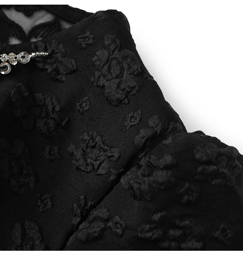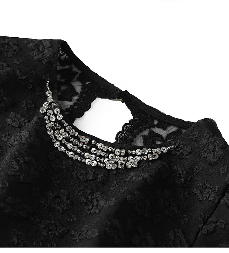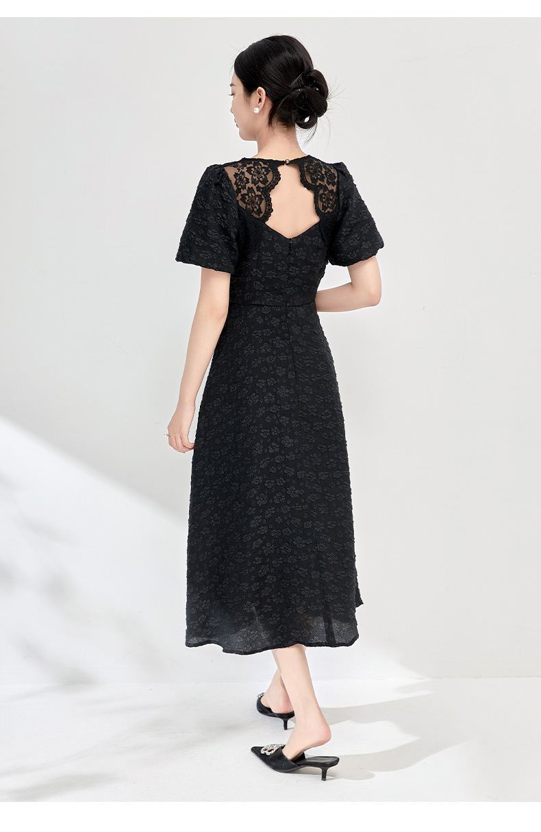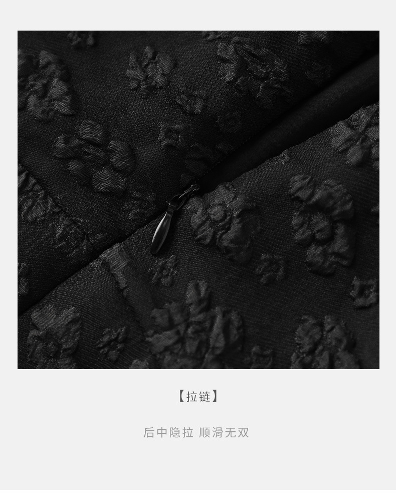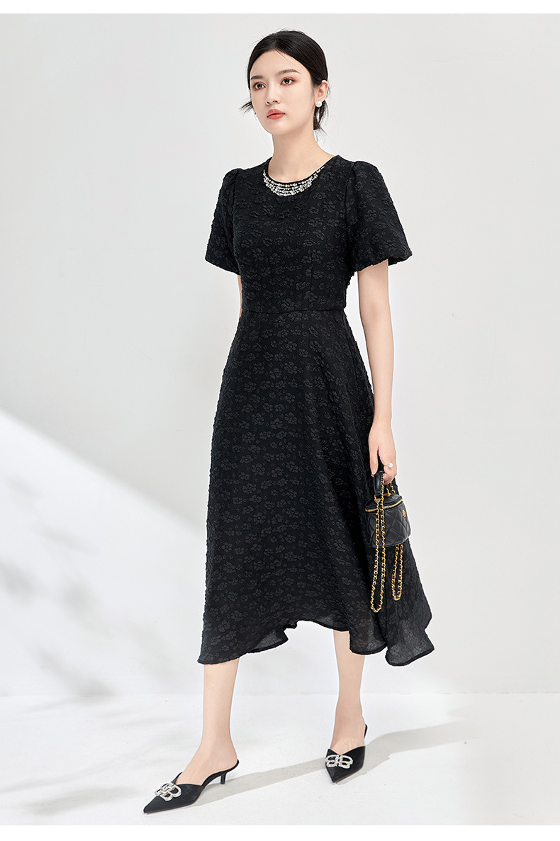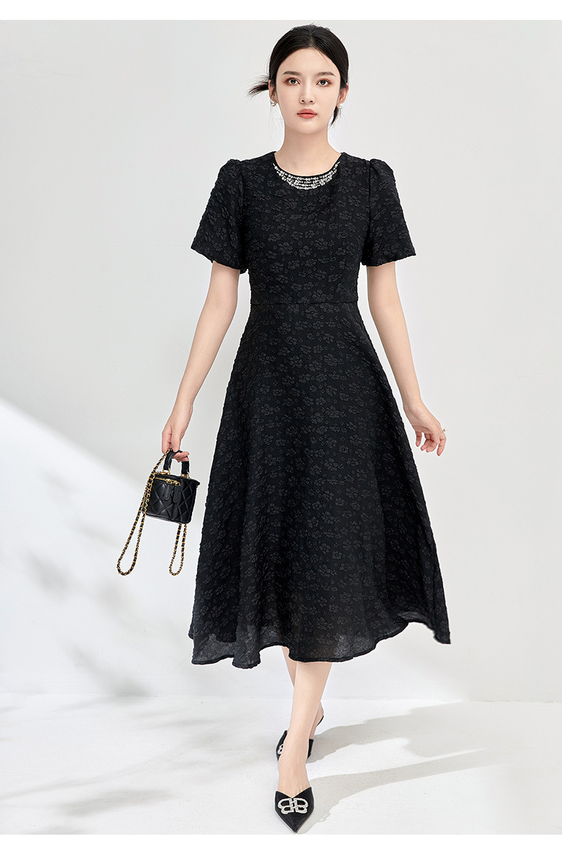 法式复古优雅,重工钉珠提花收腰显瘦短袖连衣裙WLZD-2413213