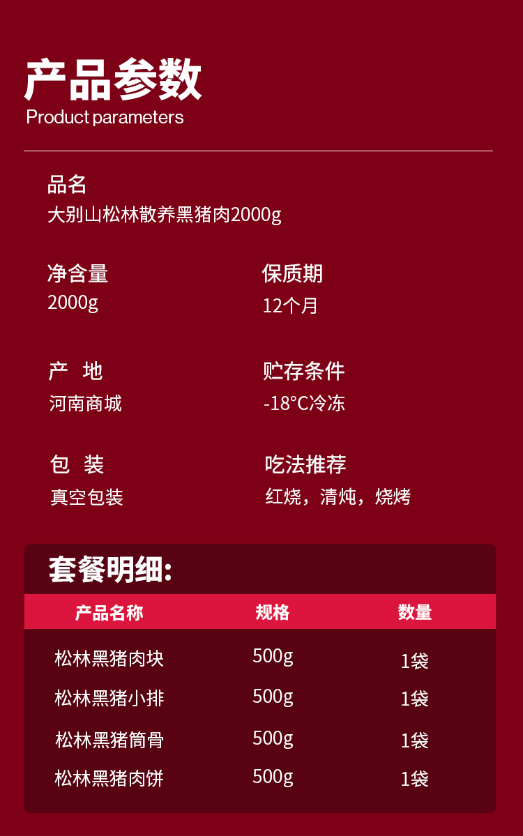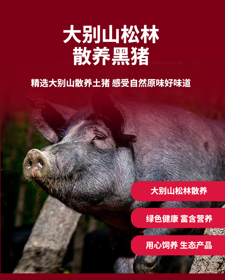【发出后不支持拦截退货】牧森甄 大别山松林黑猪肉326型 2000g