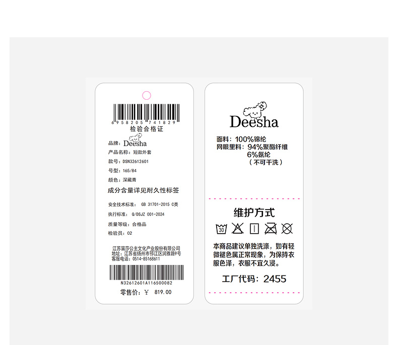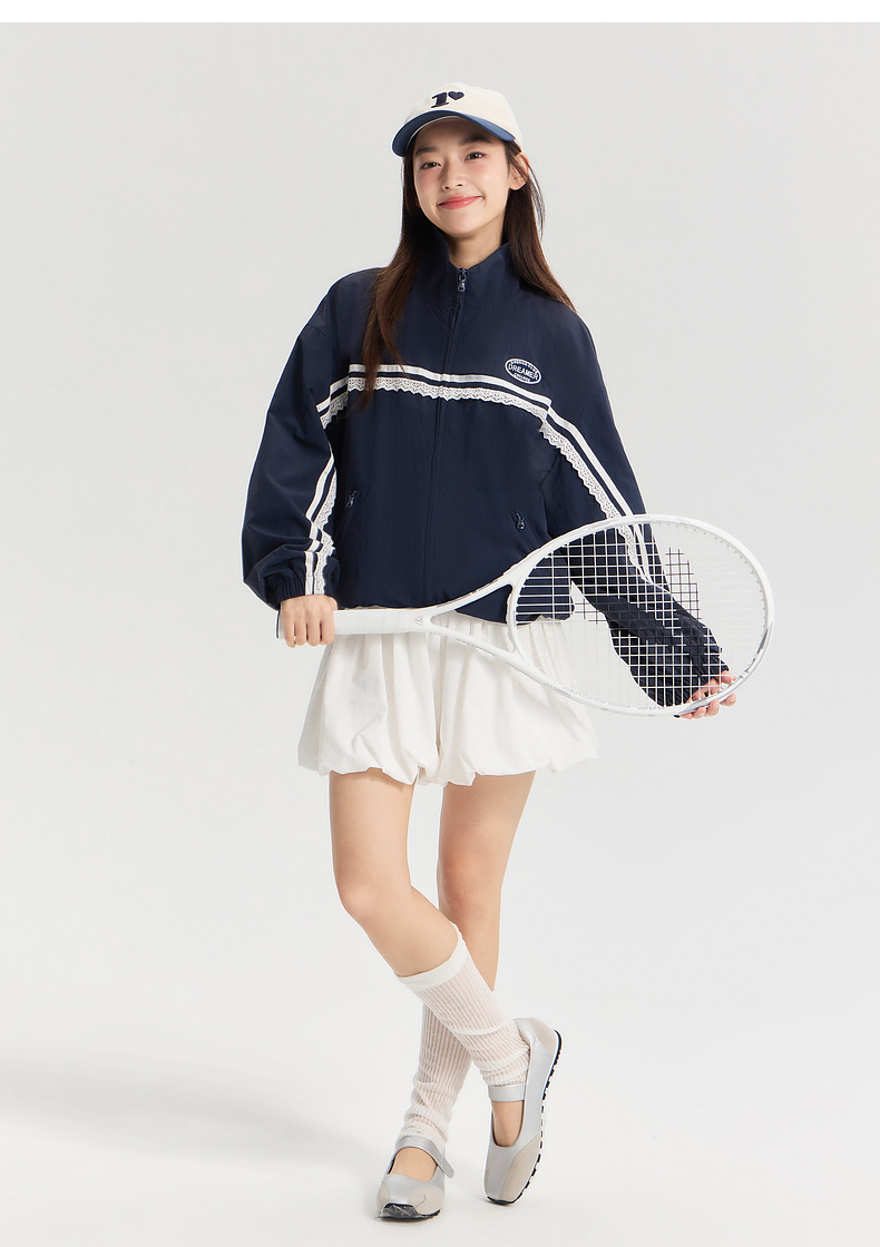 笛莎Deesha 【质感学院系列】笛莎2026年春新款青少年短款花苞学院风织带外套女