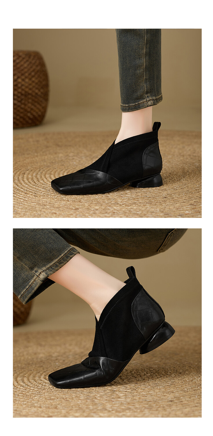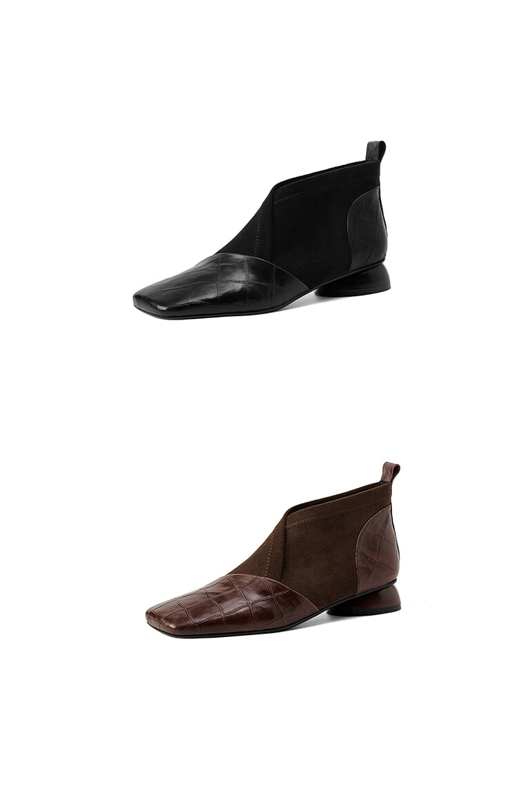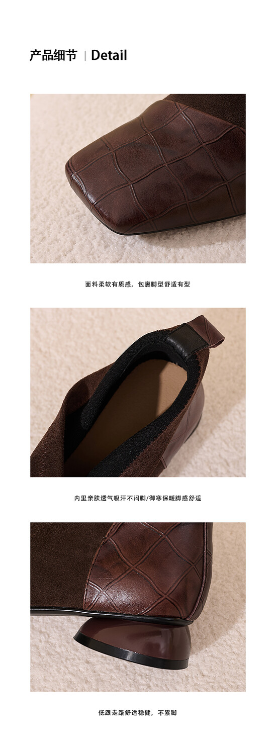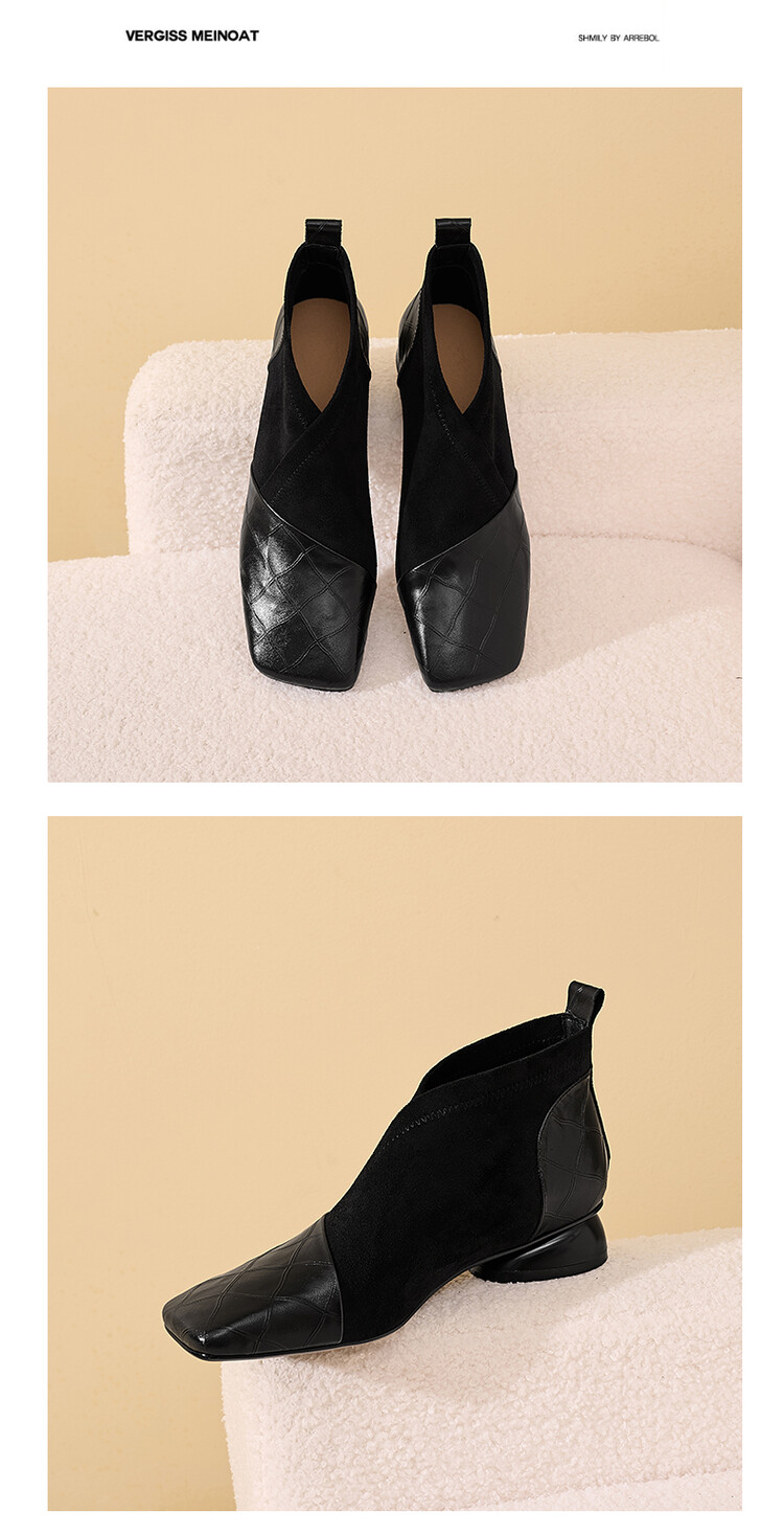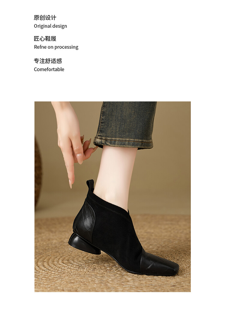 【预售5天】时尚百搭秋冬新款单靴女拼接弹力瘦瘦靴粗跟方头气质裸靴MBJR&5856