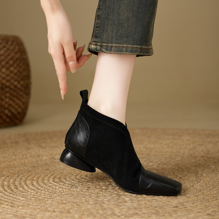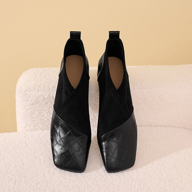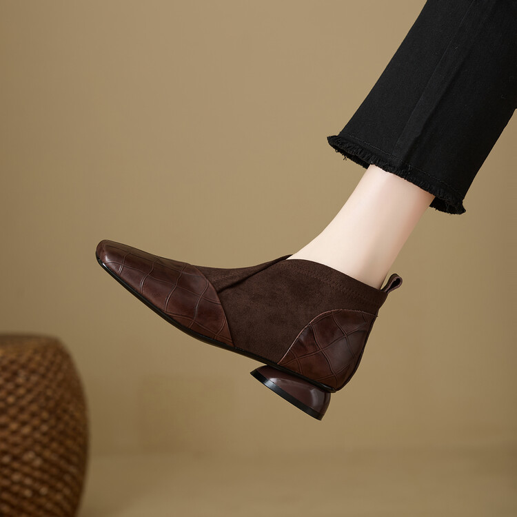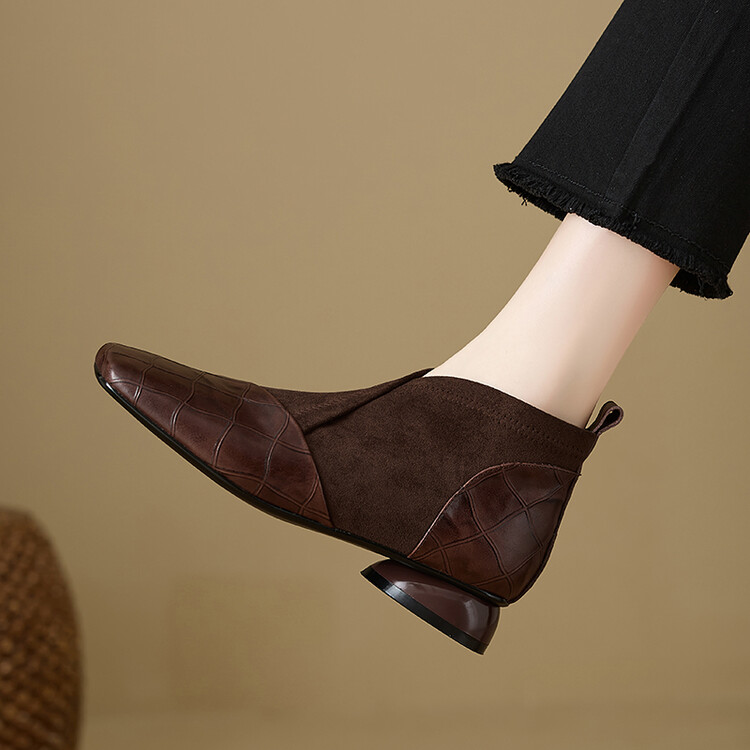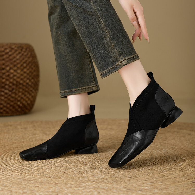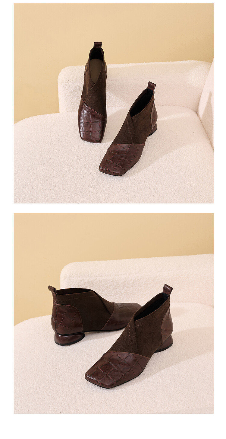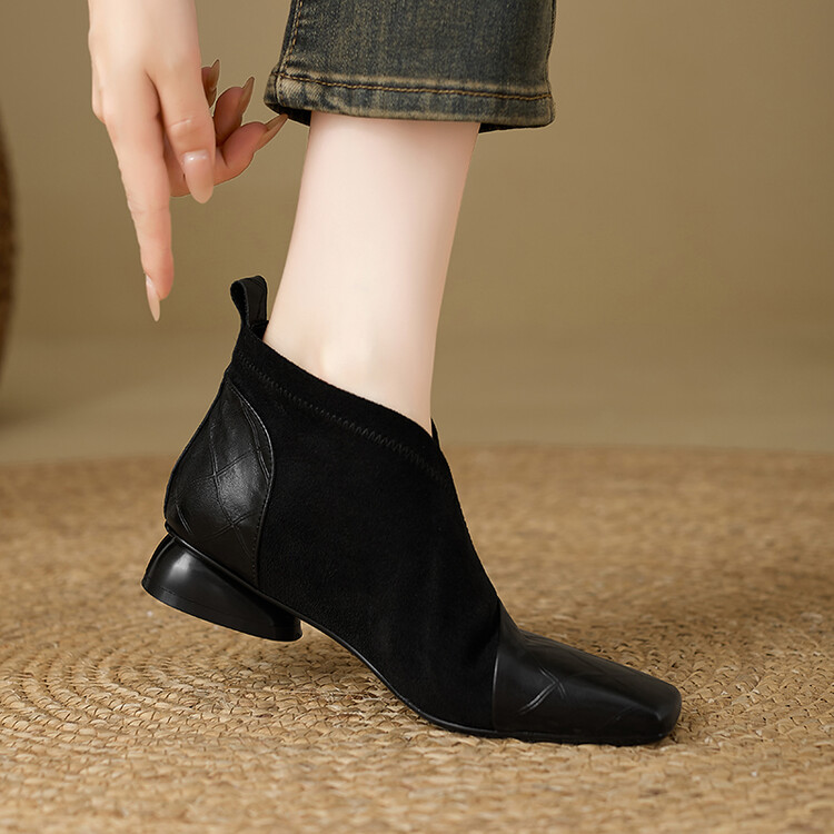 【预售5天】时尚百搭秋冬新款单靴女拼接弹力瘦瘦靴粗跟方头气质裸靴MBJR&5856