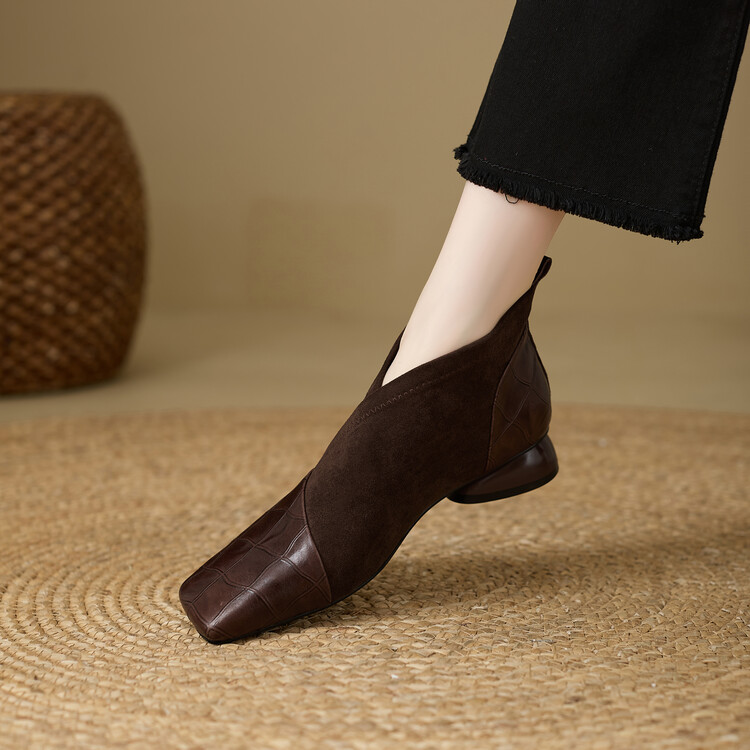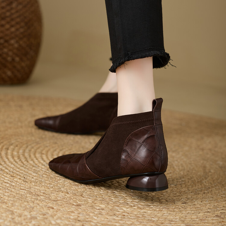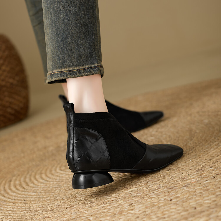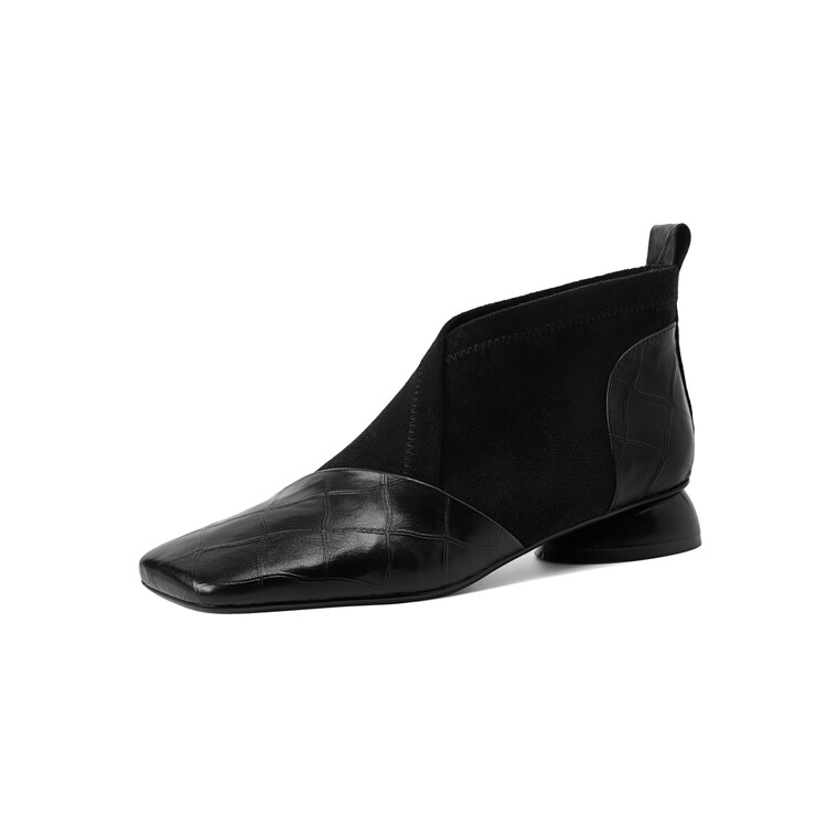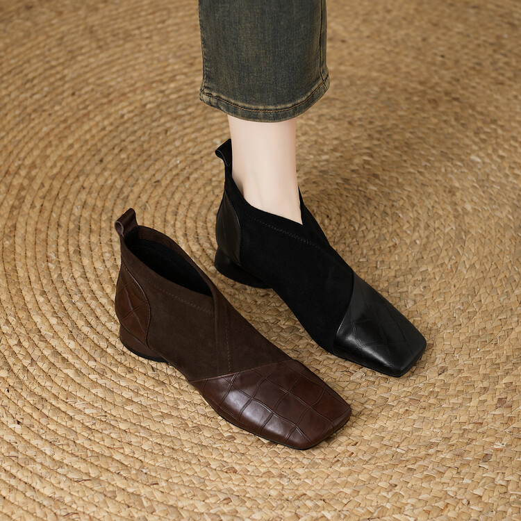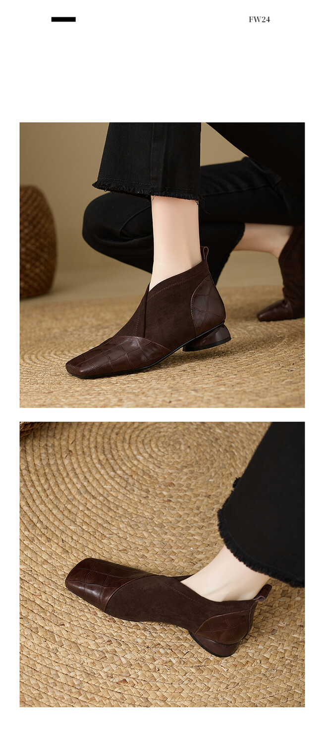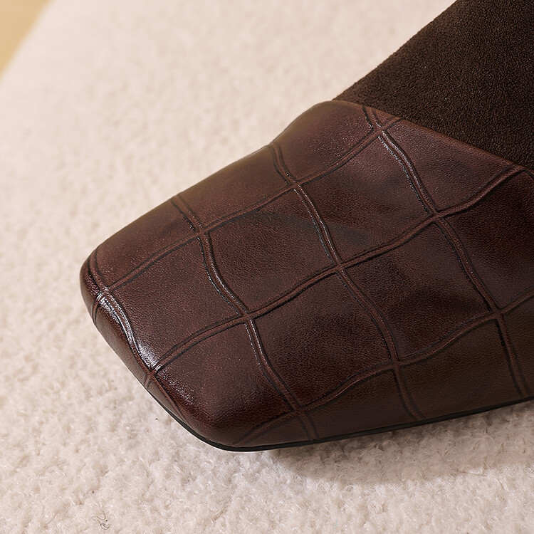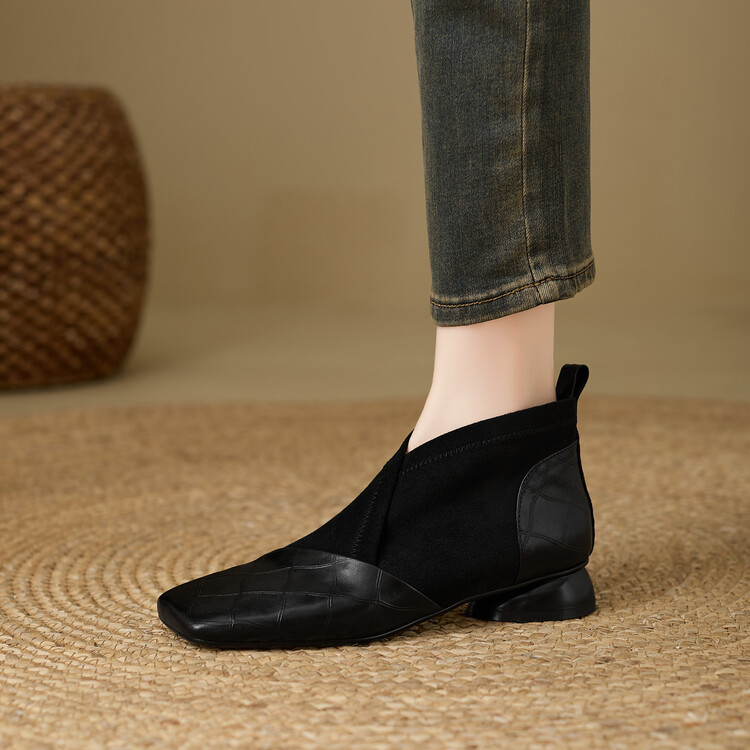 【预售5天】时尚百搭秋冬新款单靴女拼接弹力瘦瘦靴粗跟方头气质裸靴MBJR&5856