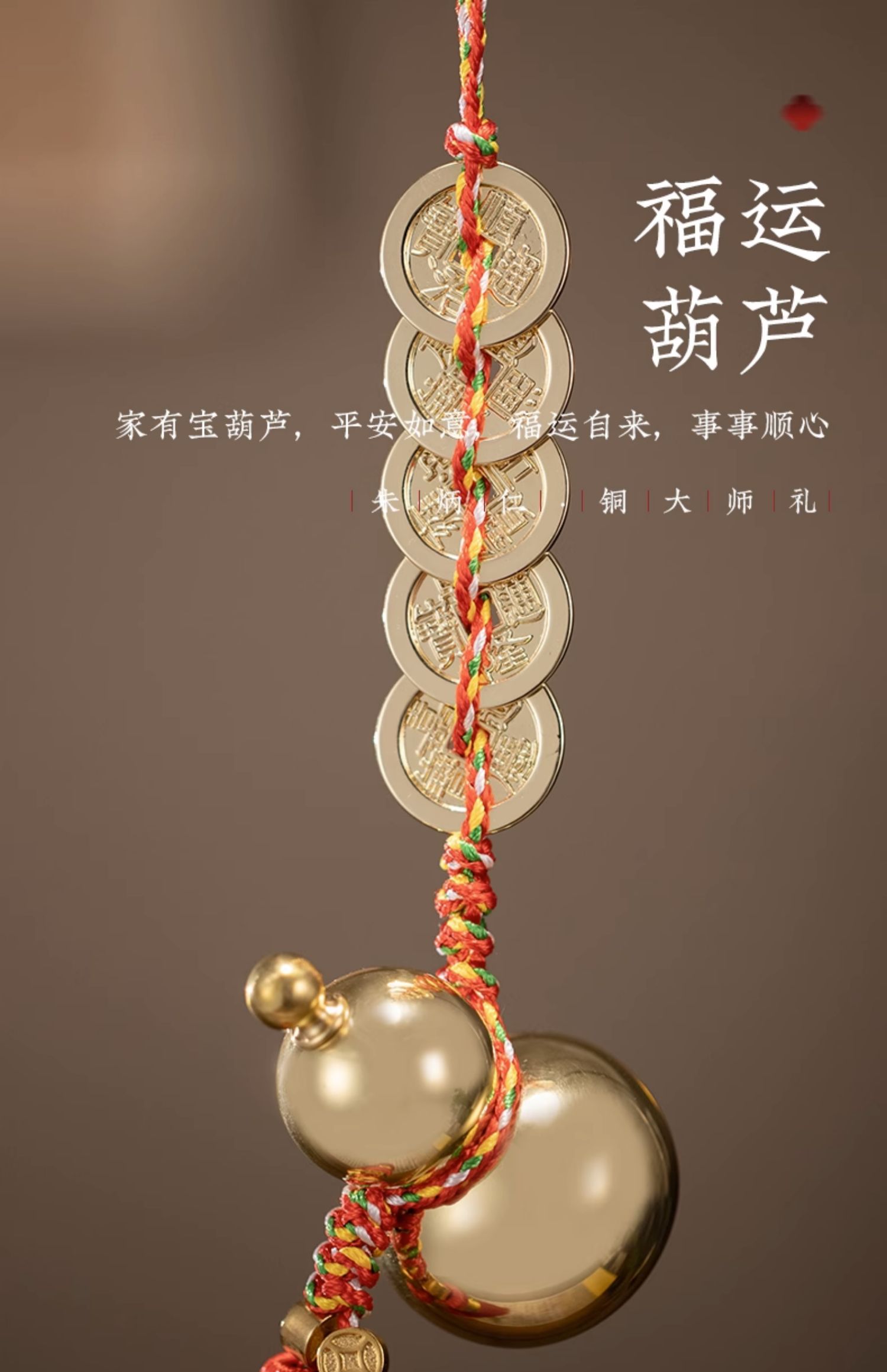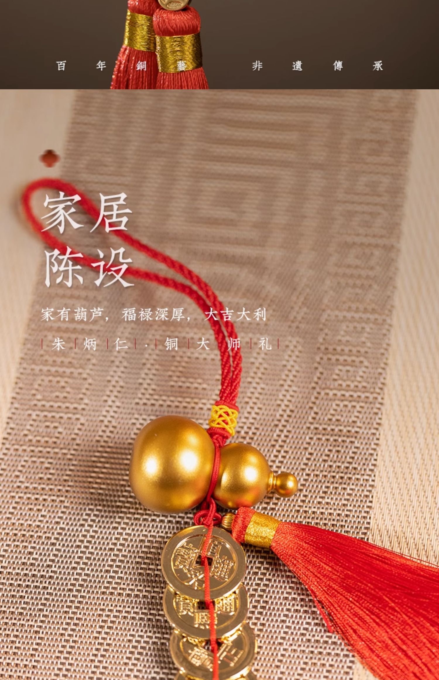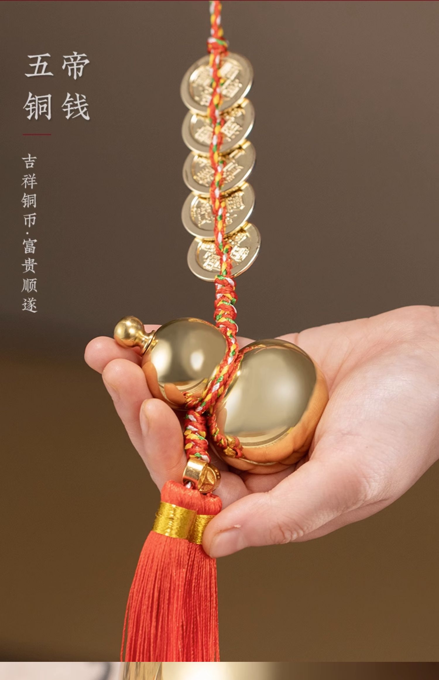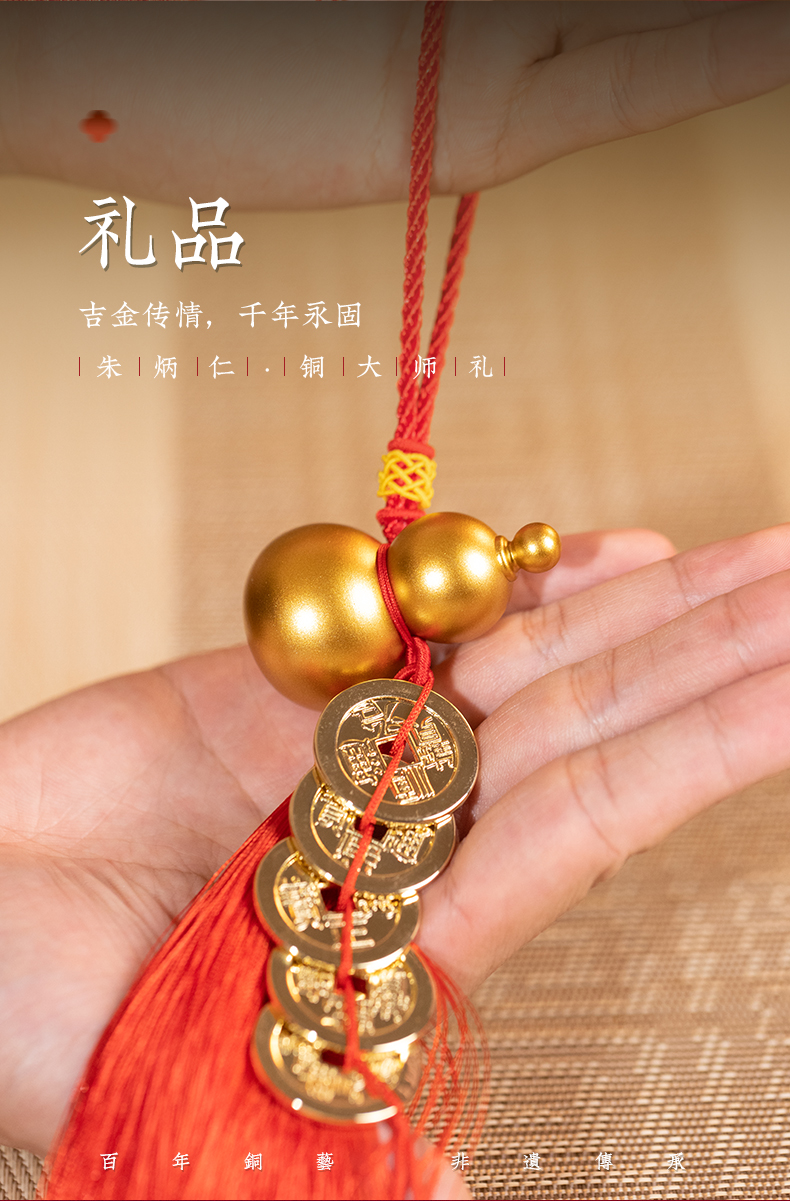 福运葫芦挂件 五帝钱铜葫芦 黄铜葫芦【朱炳仁铜】
