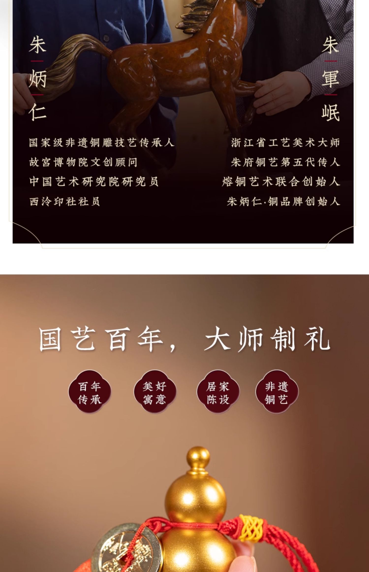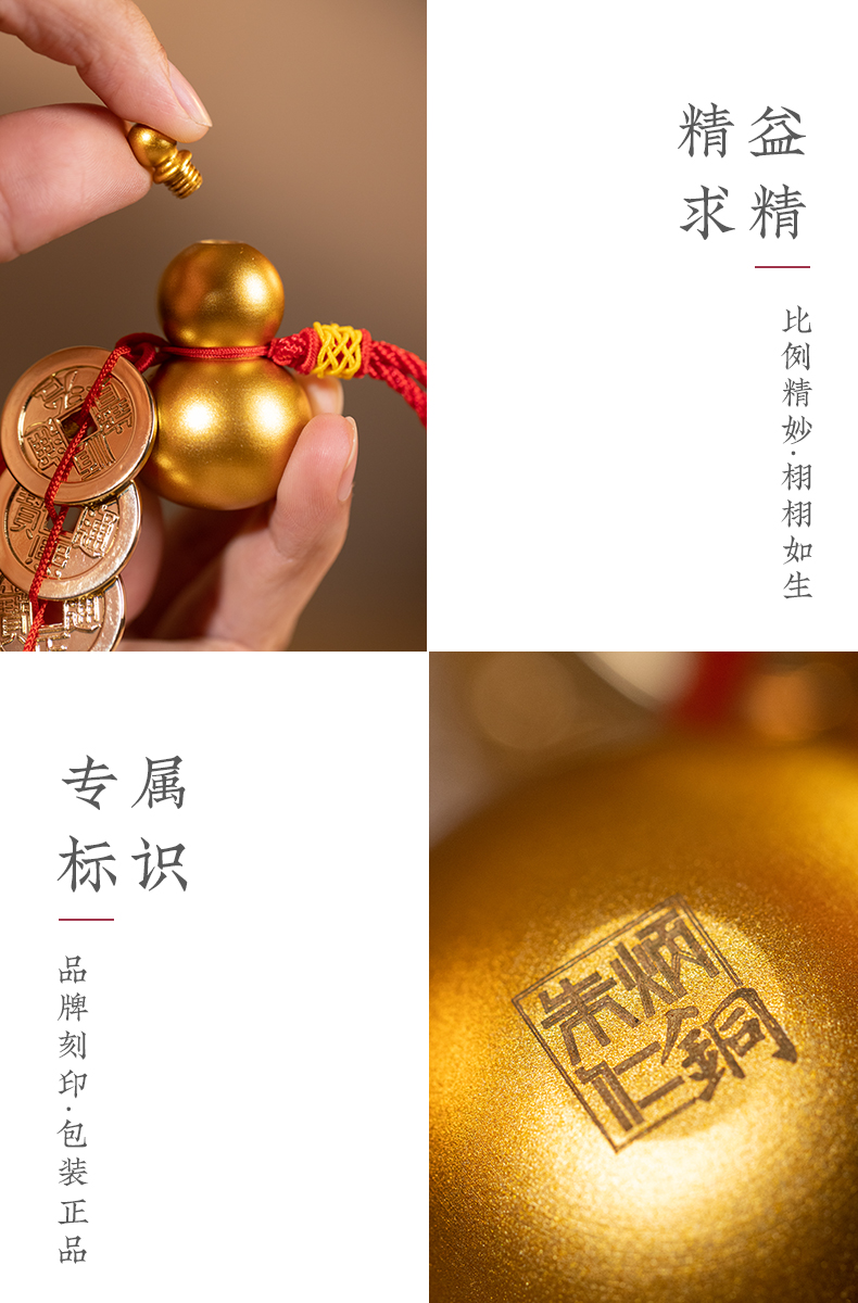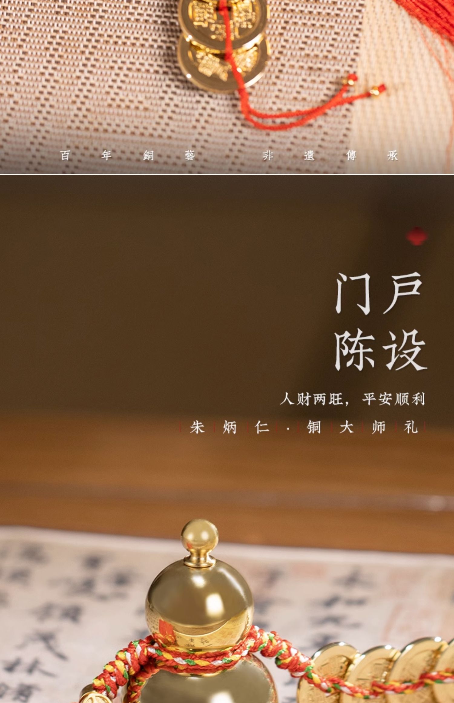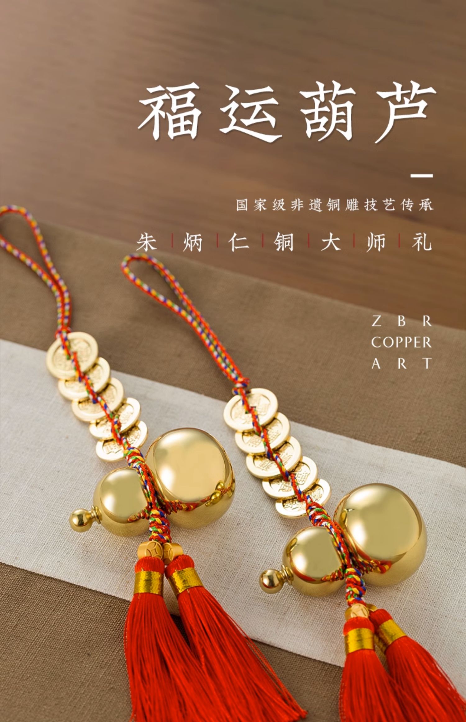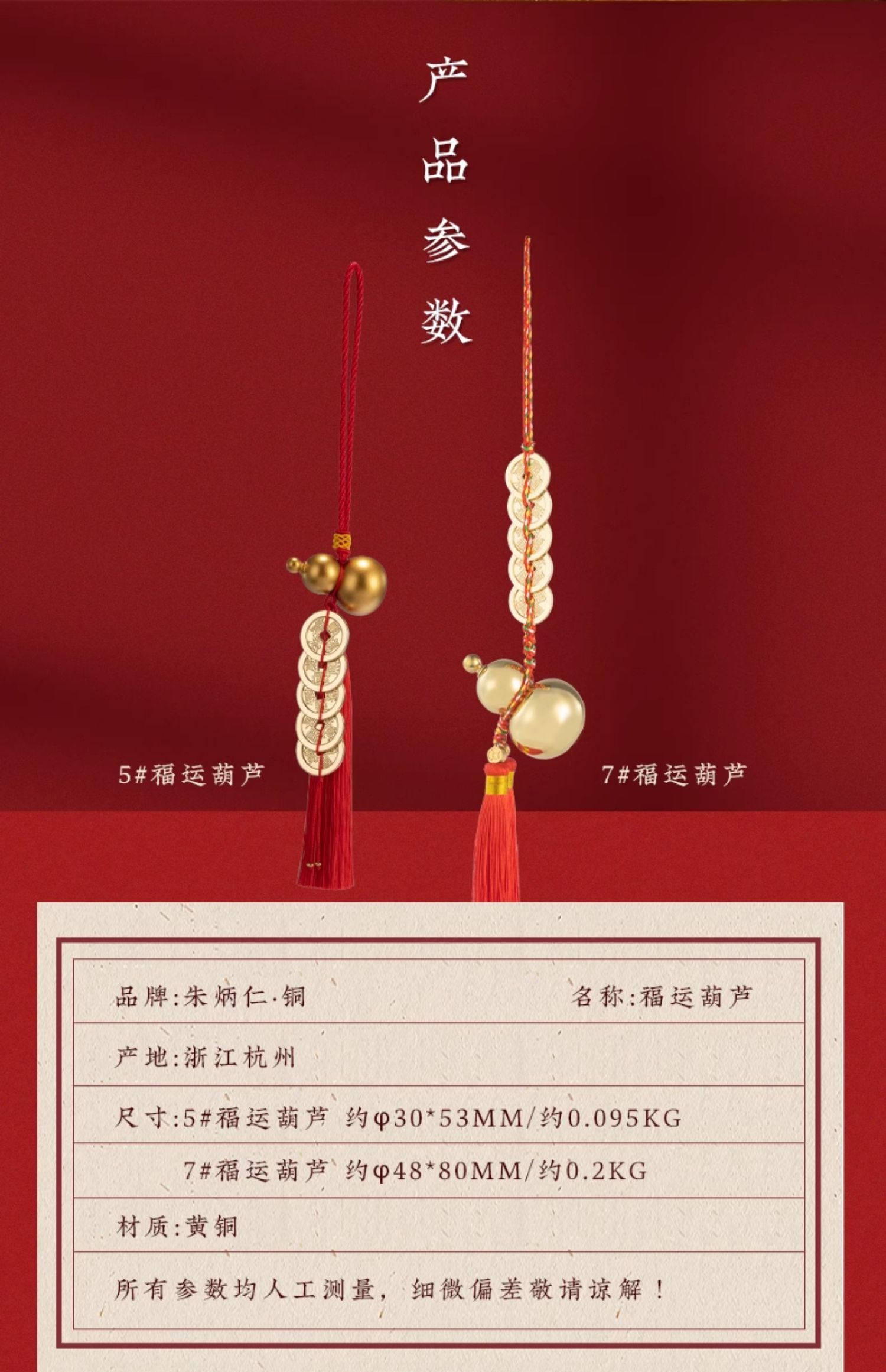 福运葫芦挂件 五帝钱铜葫芦 黄铜葫芦【朱炳仁铜】