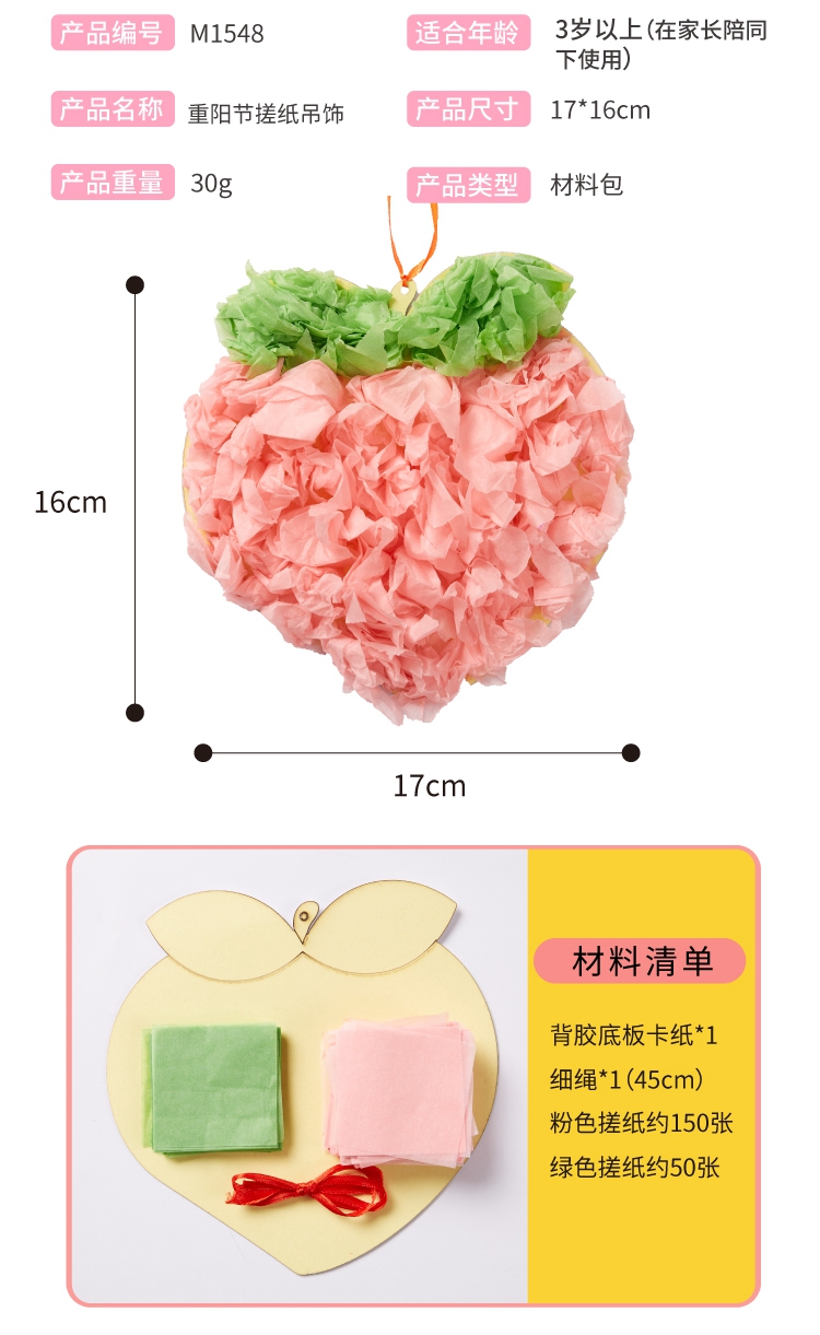 重阳节手工diy桃子茱萸吊饰制作材料包幼儿园儿童敬老活动装饰