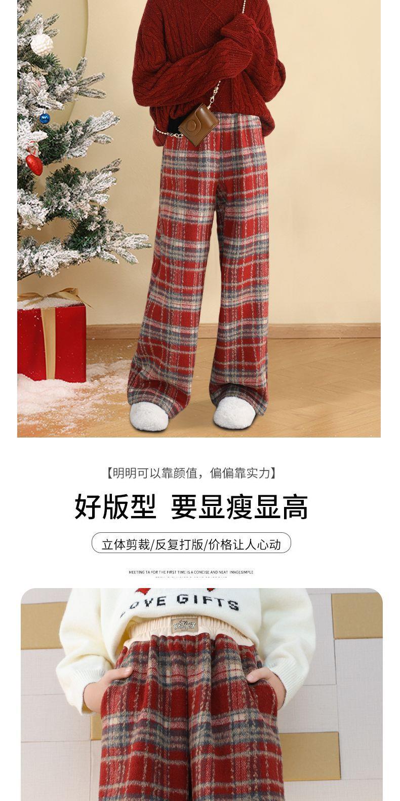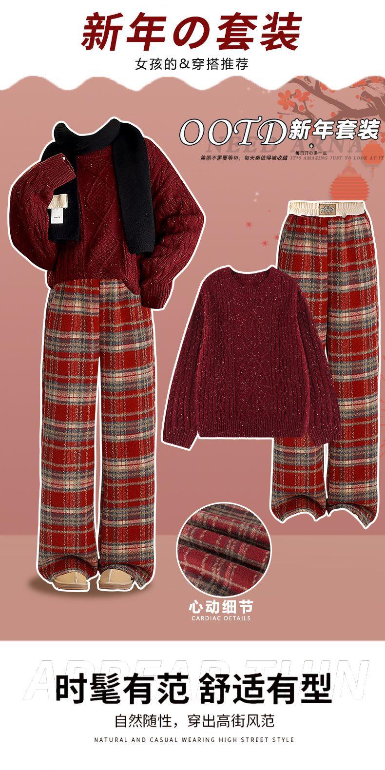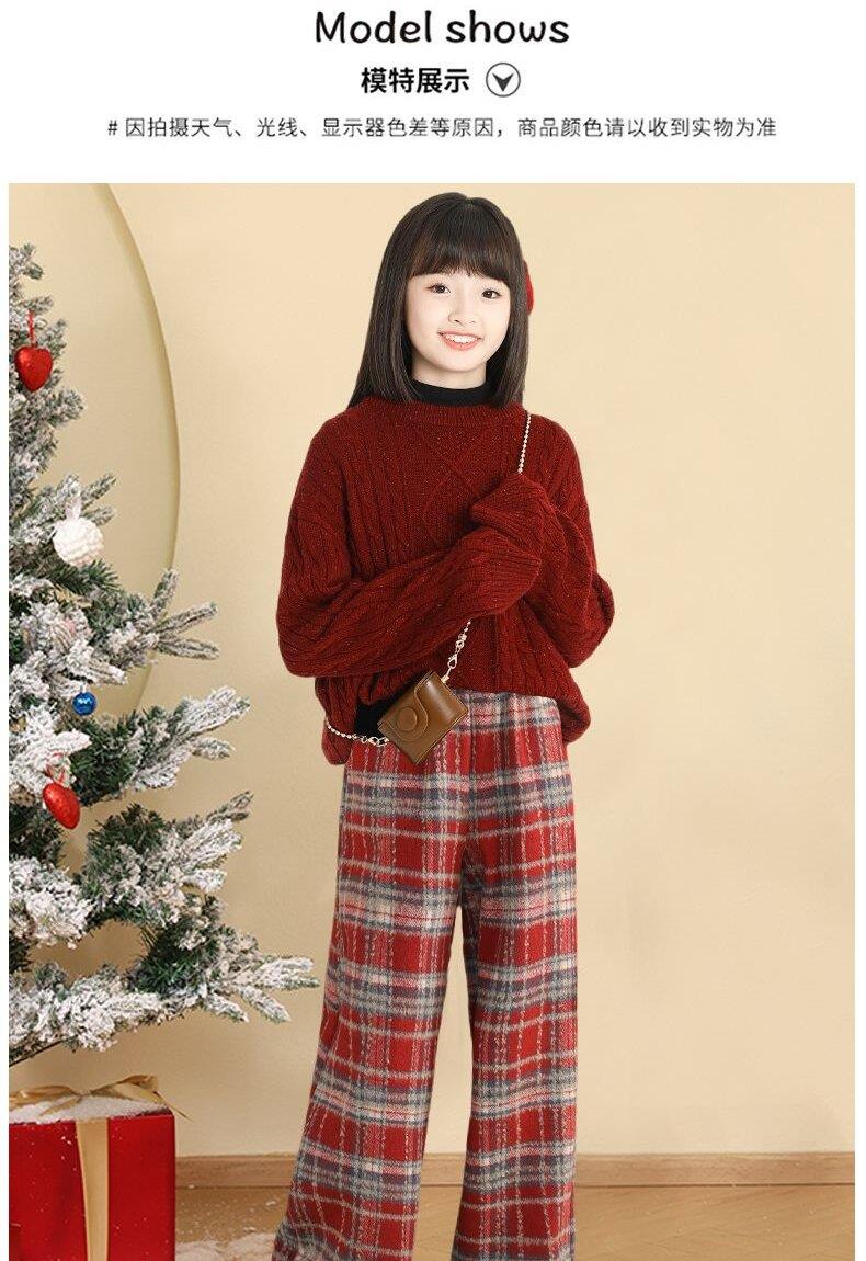 女大童拜年服套装冬装新款儿童红色毛衣格子裤大童本命年衣服