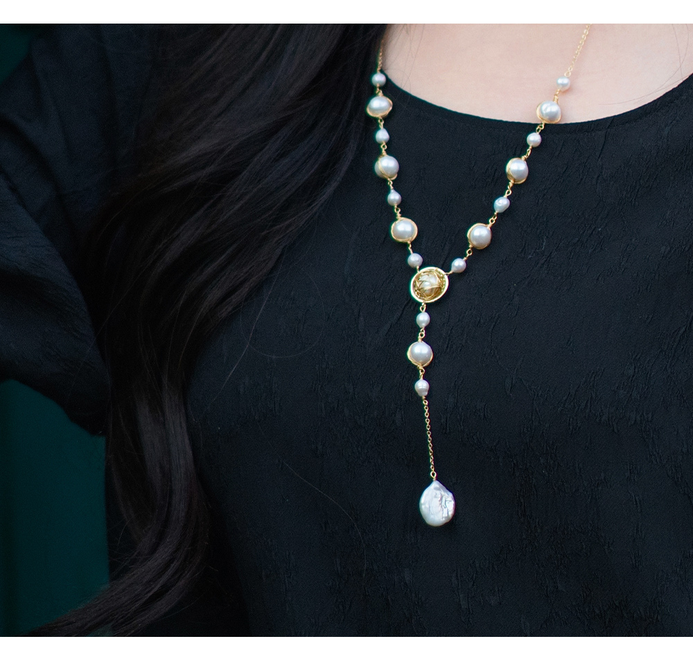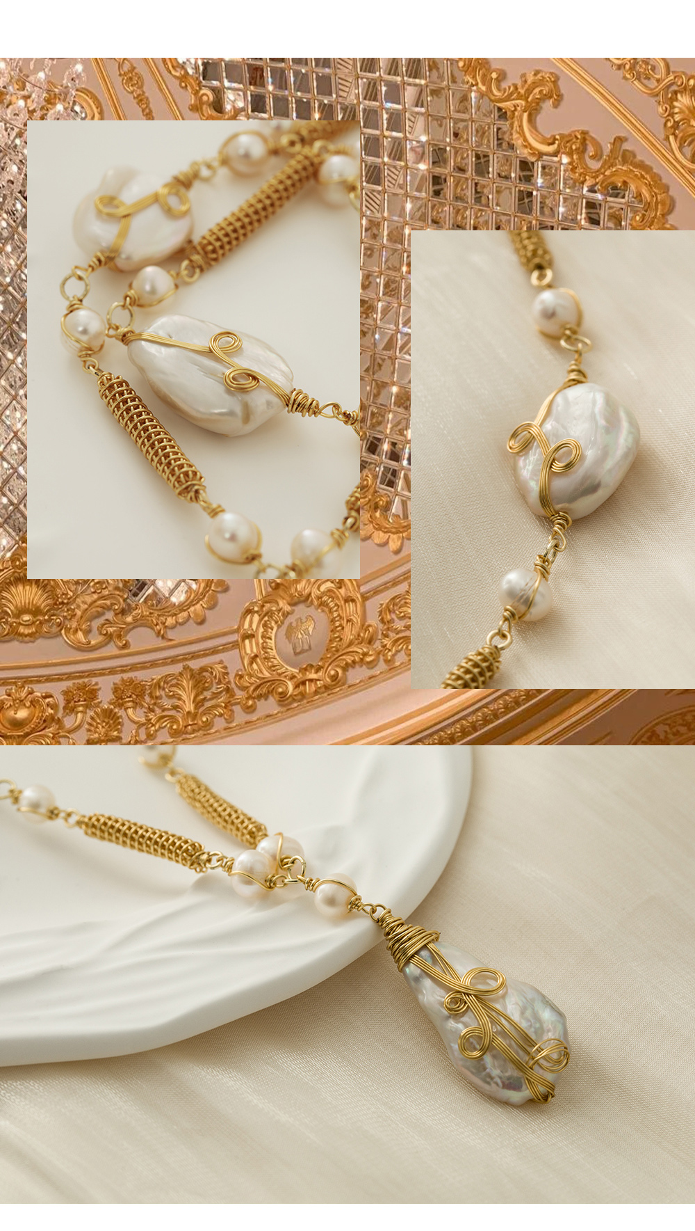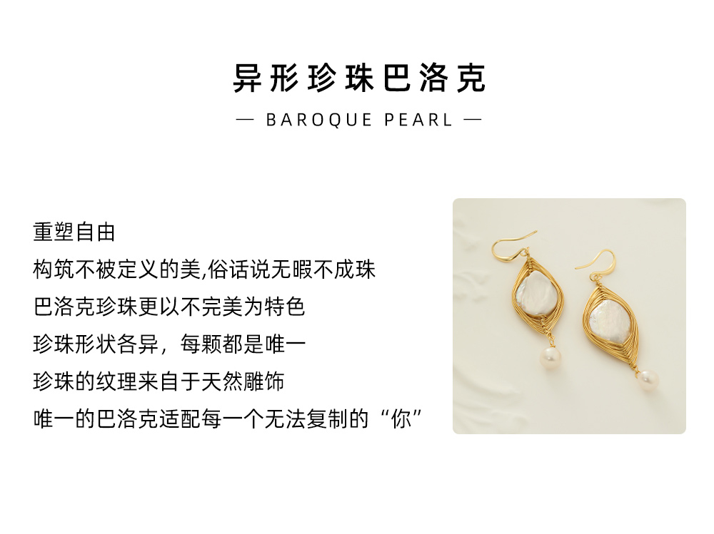 ✨【巴洛克珍珠饰品】精致设计款,项链、耳饰(耳钩款)天然巴洛克项链女淡水珍珠颈链夏,天然巴洛克、铜镀金材质,一周内发货