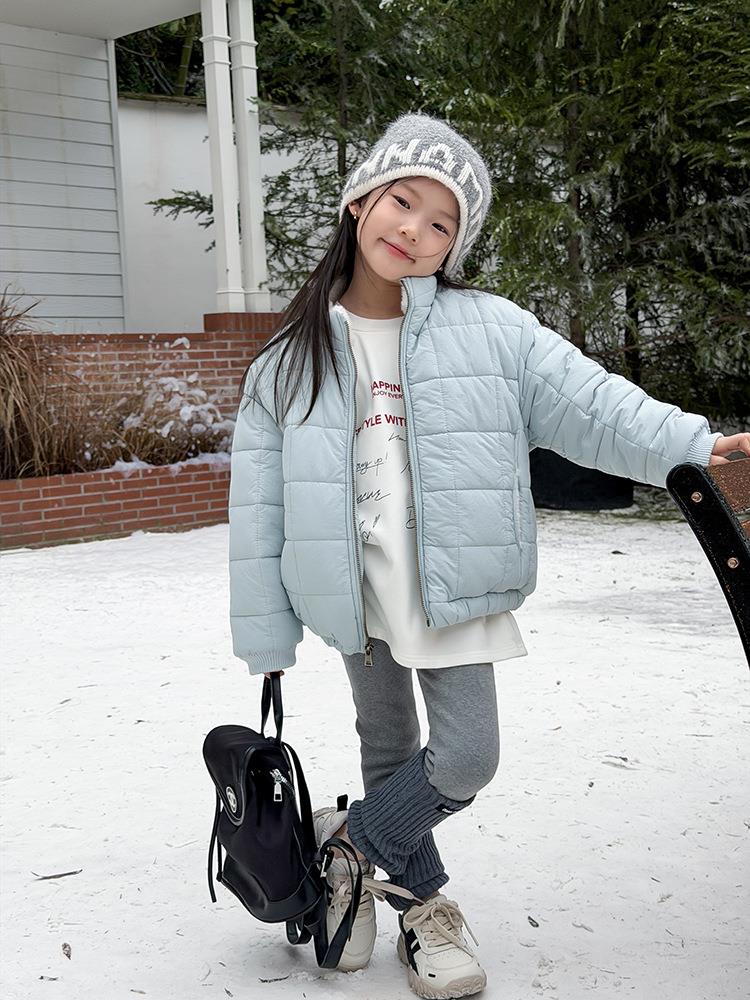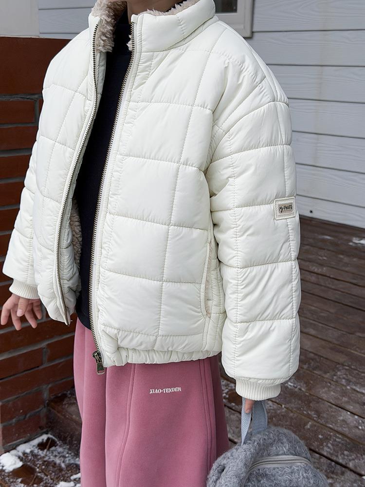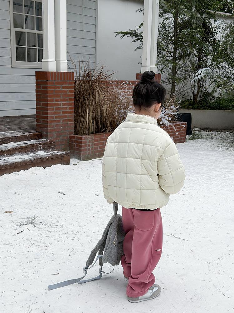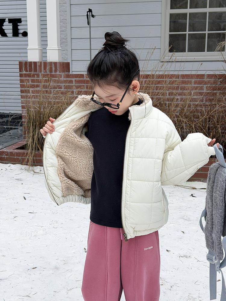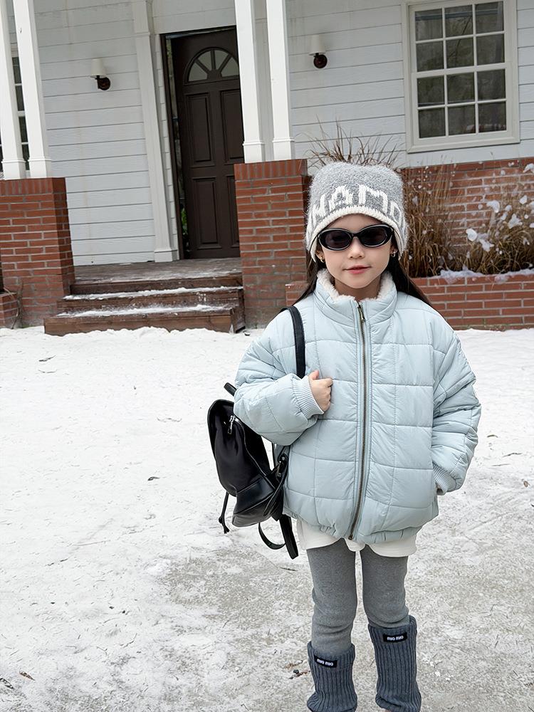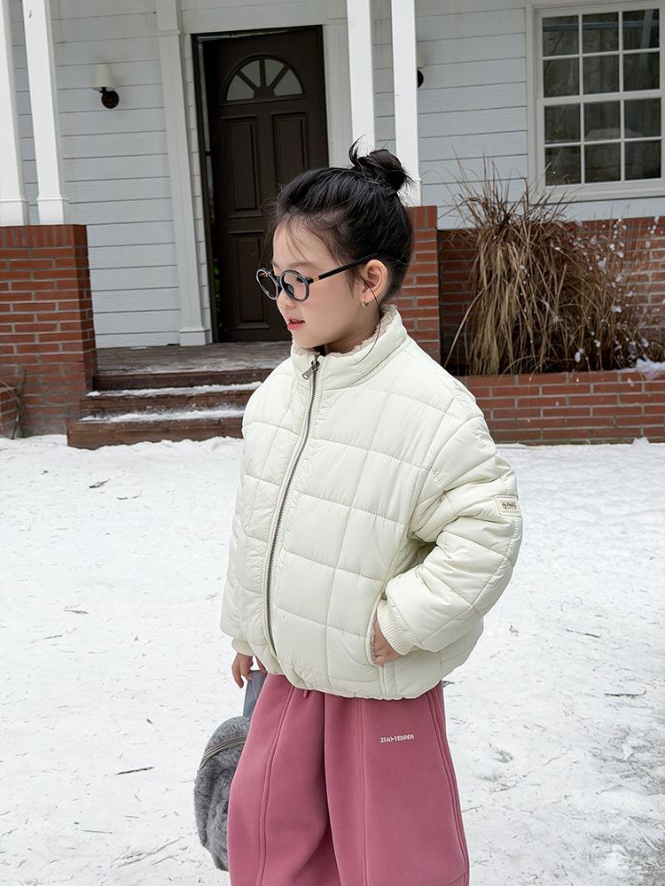 艾摩贝贝2025冬季新品儿童抗风保暖棉衣简约方格立领棉服外套上衣【加绒】