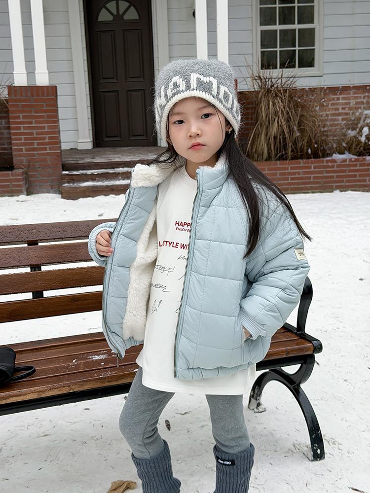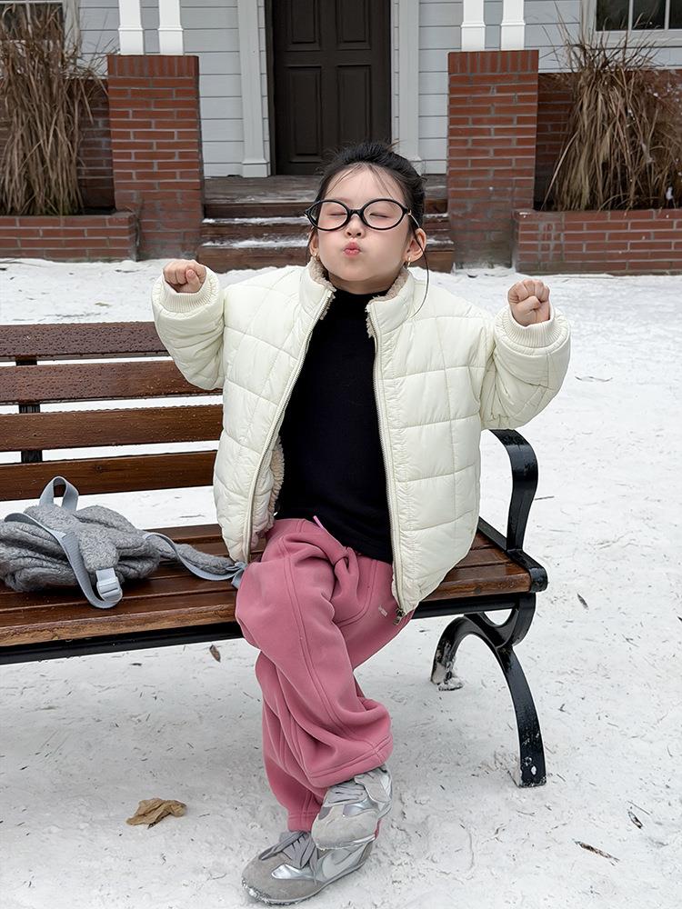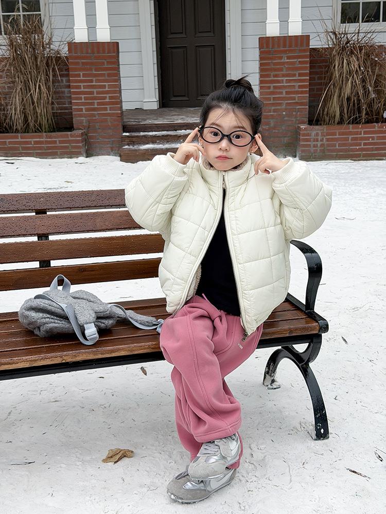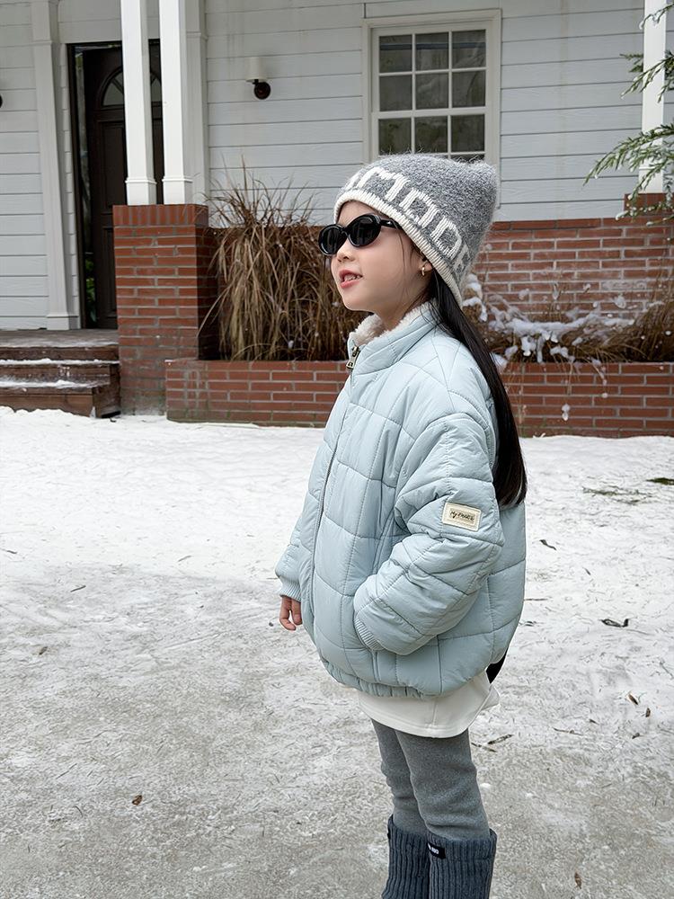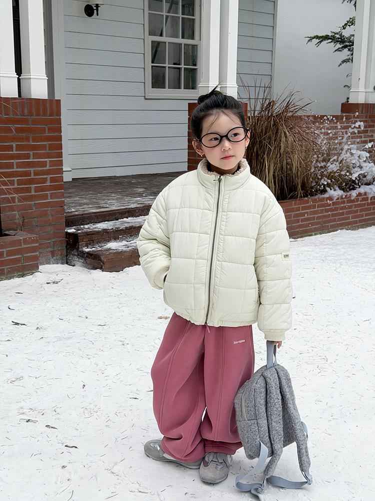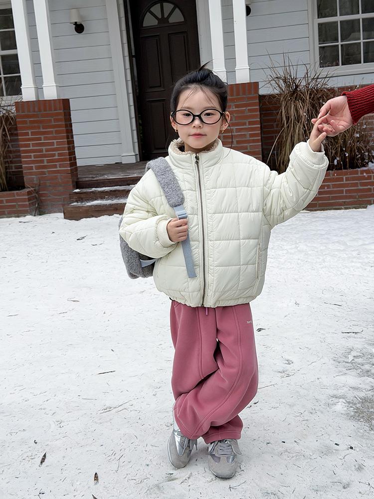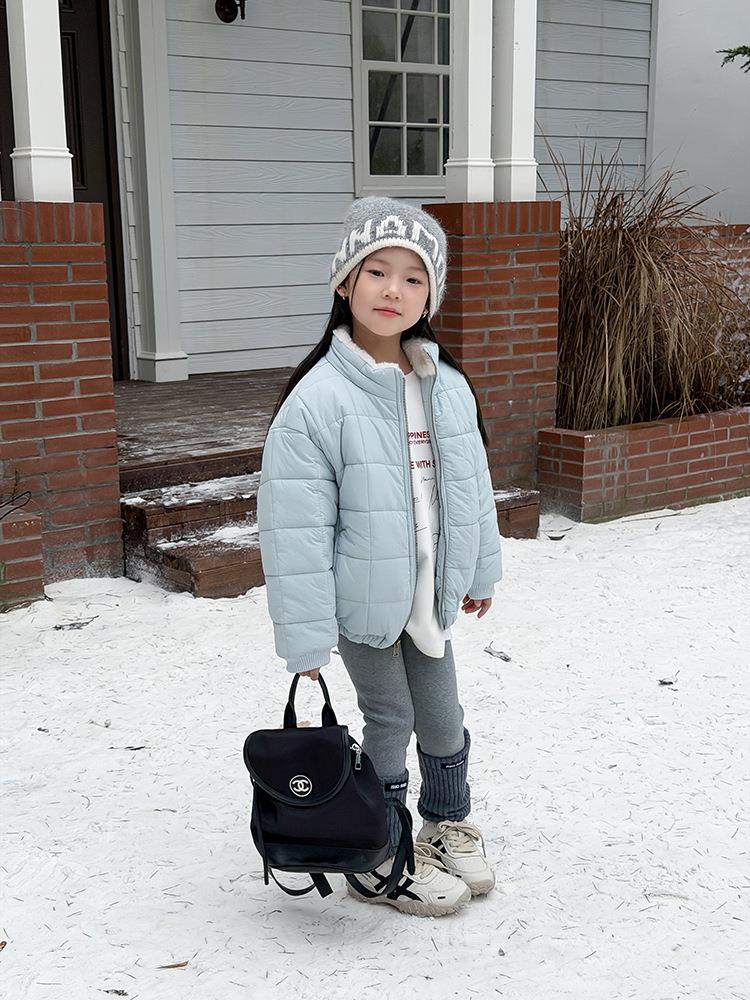 艾摩贝贝2025冬季新品儿童抗风保暖棉衣简约方格立领棉服外套上衣【加绒】