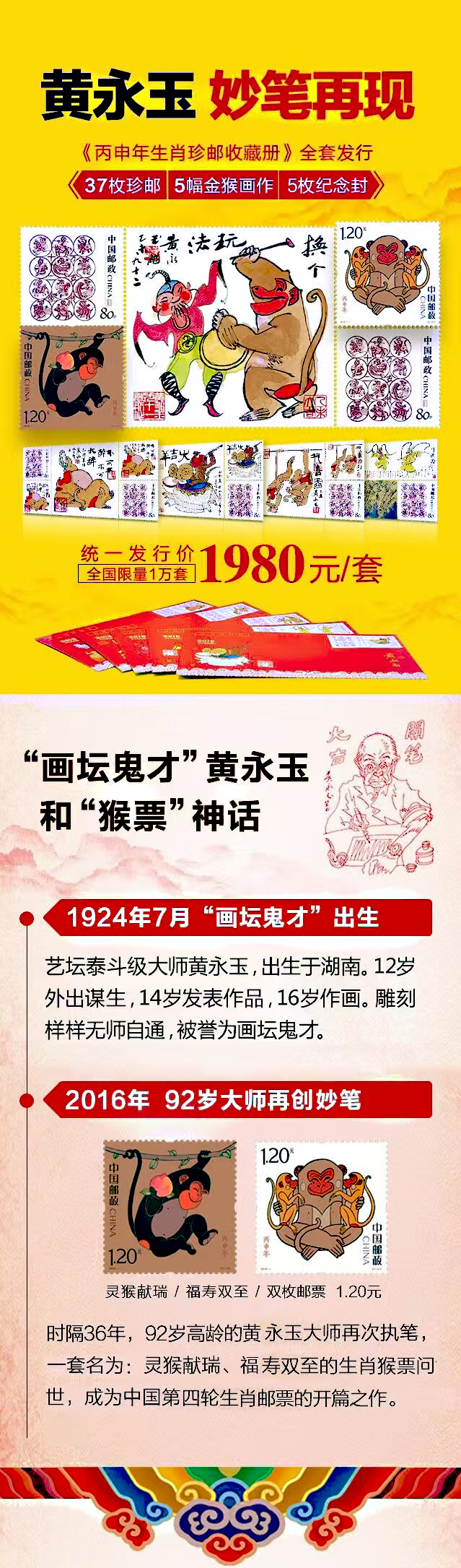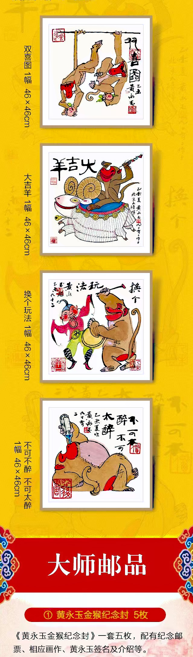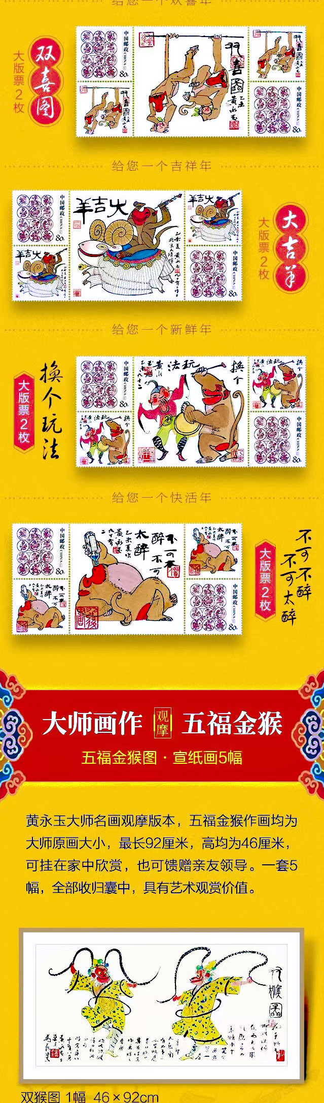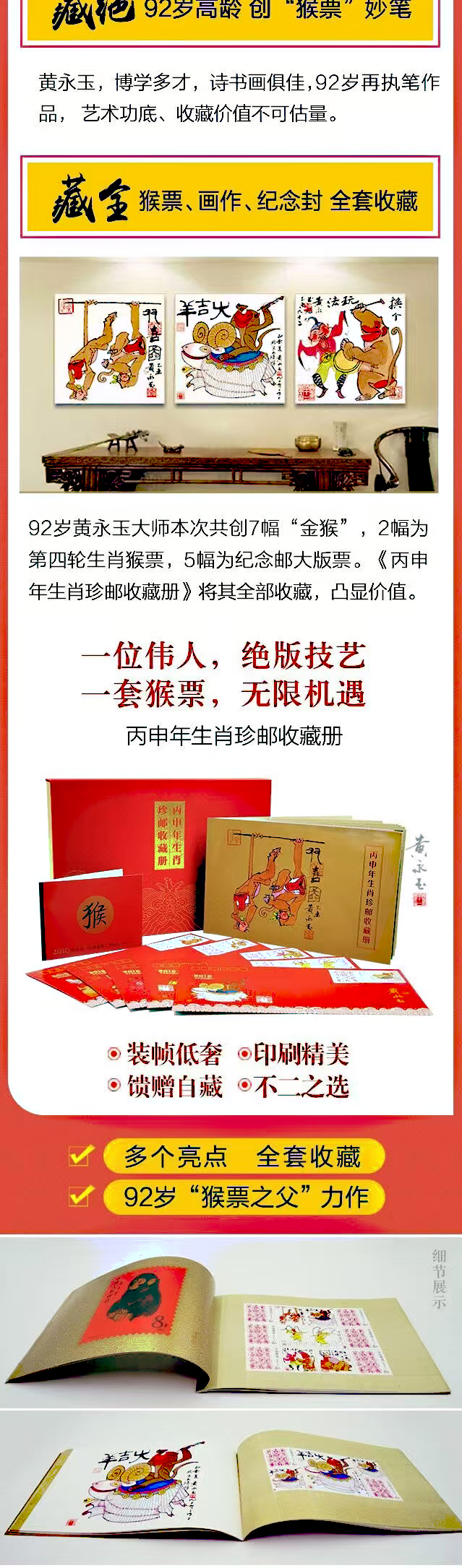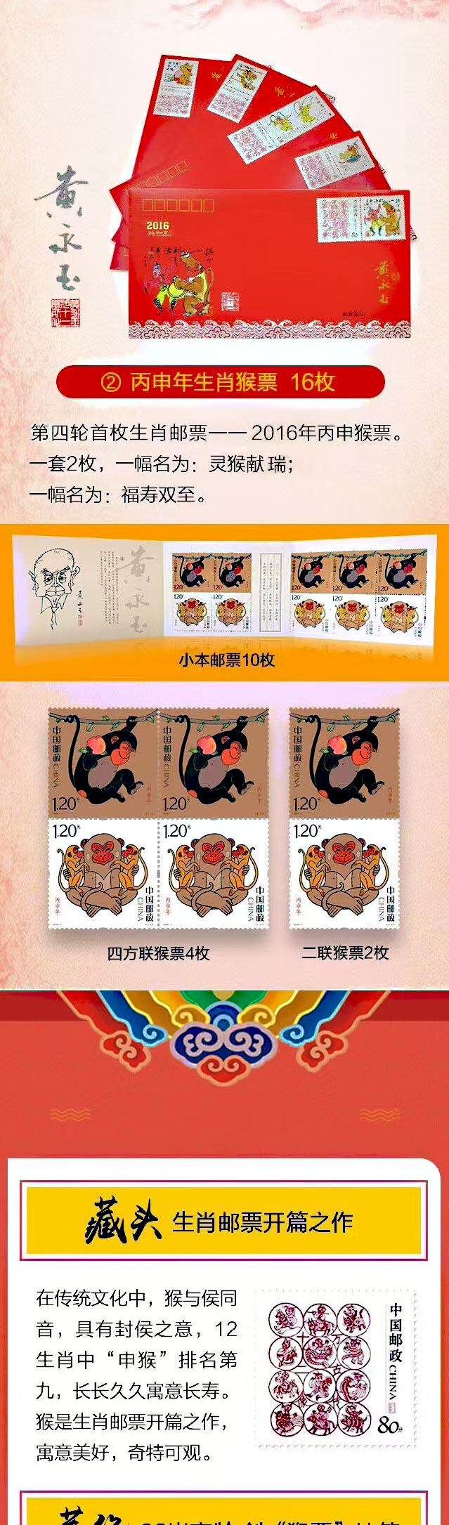 黄永玉授权 绝唱之作 生肖猴票 宣纸画《丙申年生肖珍邮收藏册》
