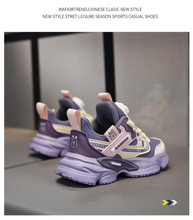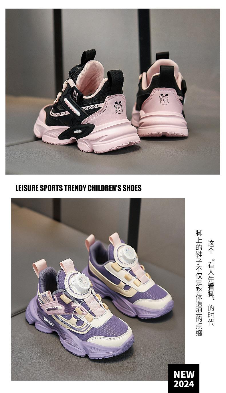 巴布豆女童跑步鞋冬季新款儿童运动鞋防滑耐磨学生皮面休闲鞋