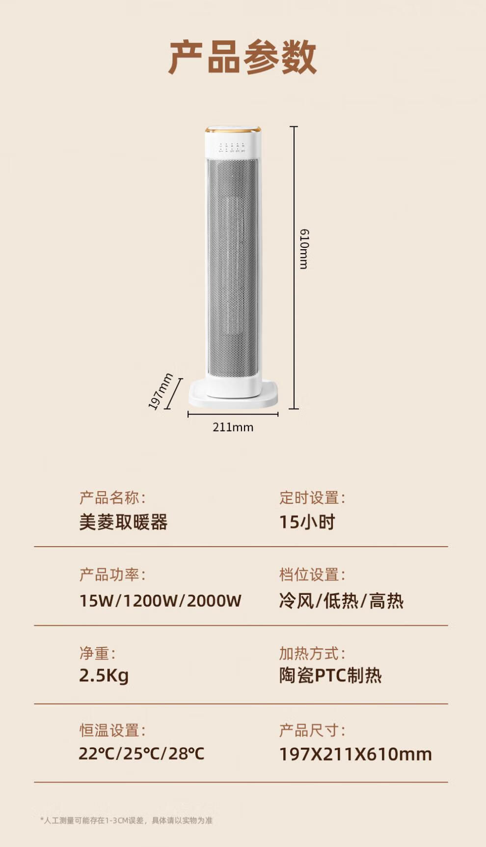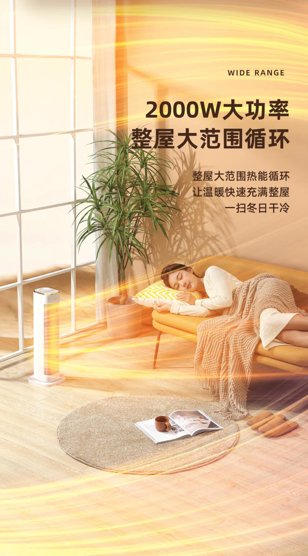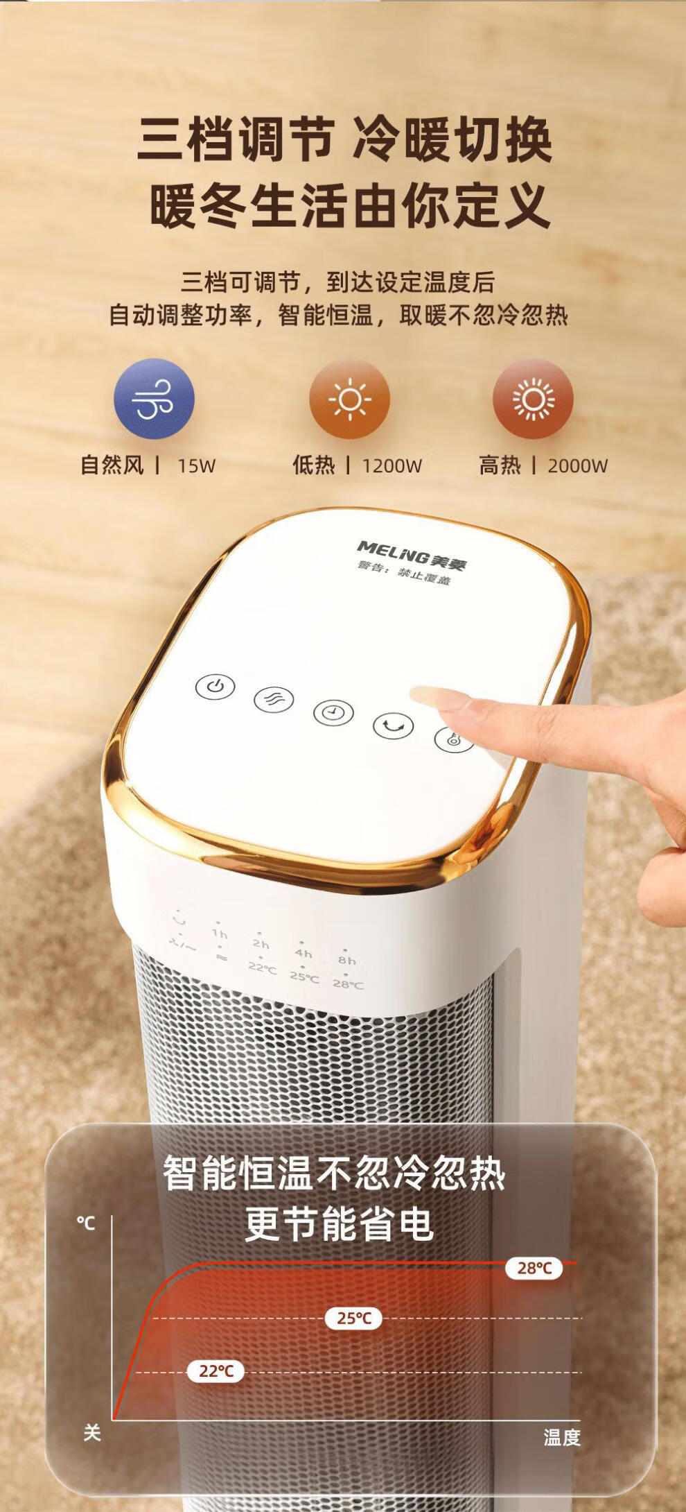 美菱(MeiLing)暖风机取暖器家用室内石墨烯节能电暖气热风机全屋大面积神器