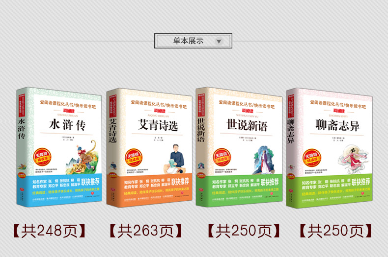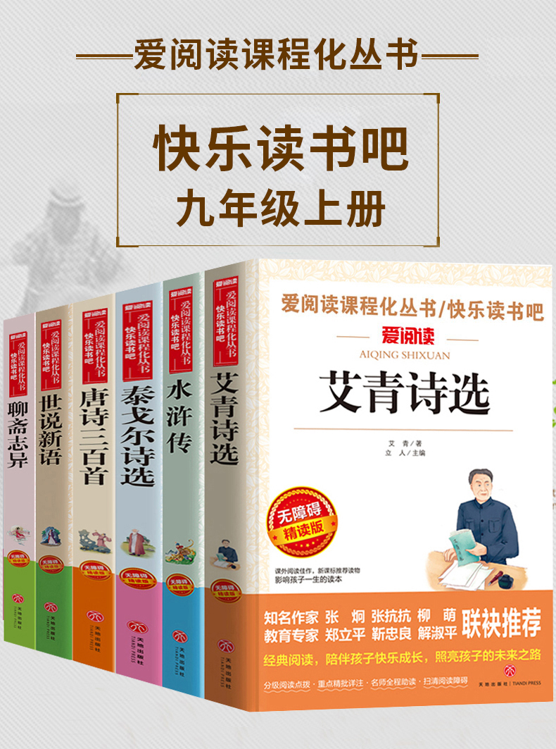 爱阅读 快乐读书吧全6册任选 九年级上 水浒传泰戈尔诗选聊斋志异唐诗艾青诗选世说新语 无障碍阅读导读版 初中生课外书籍青少年版