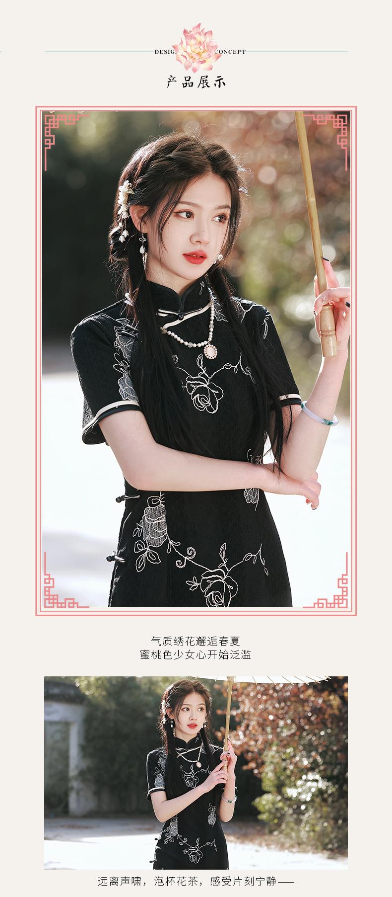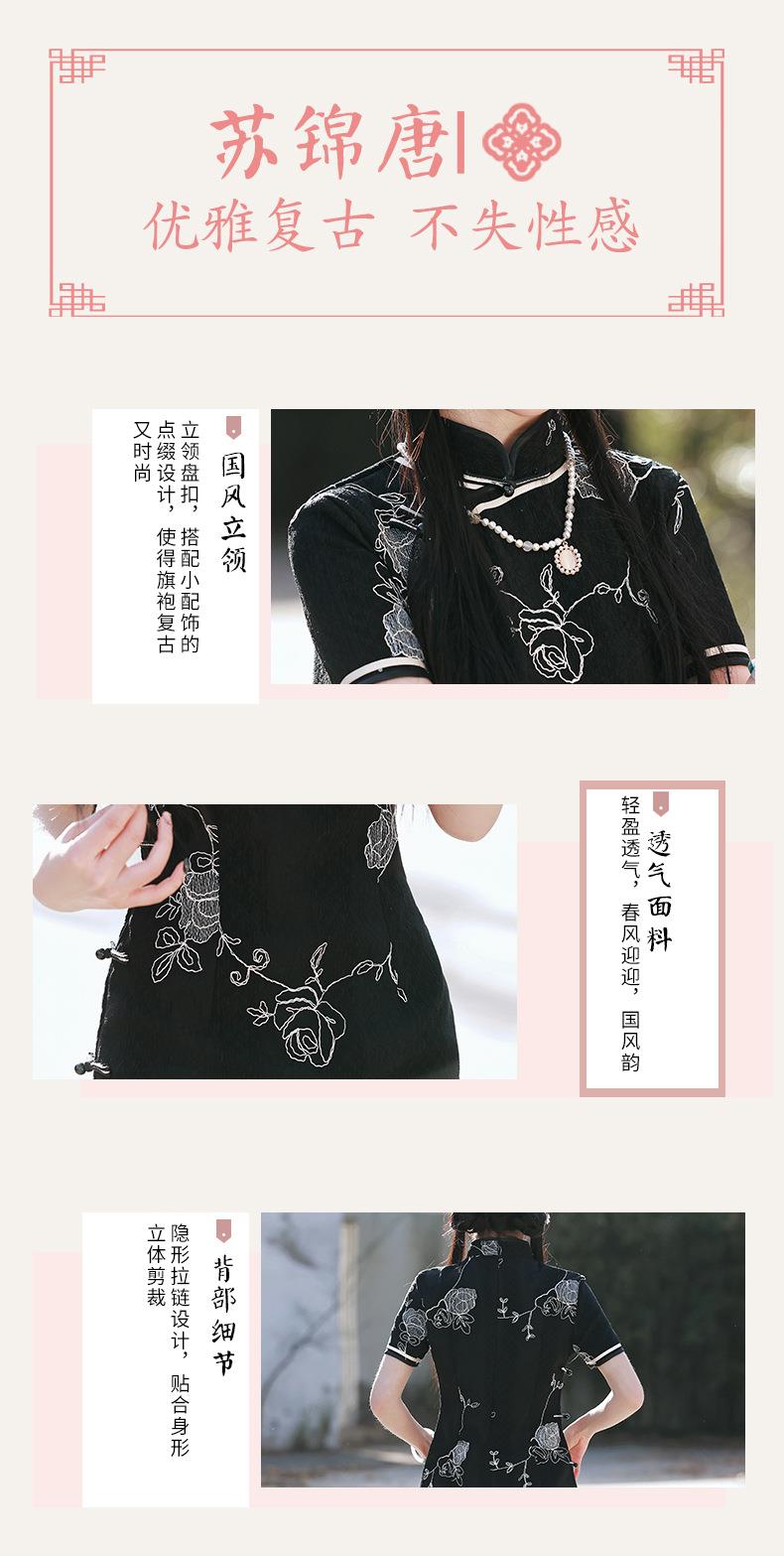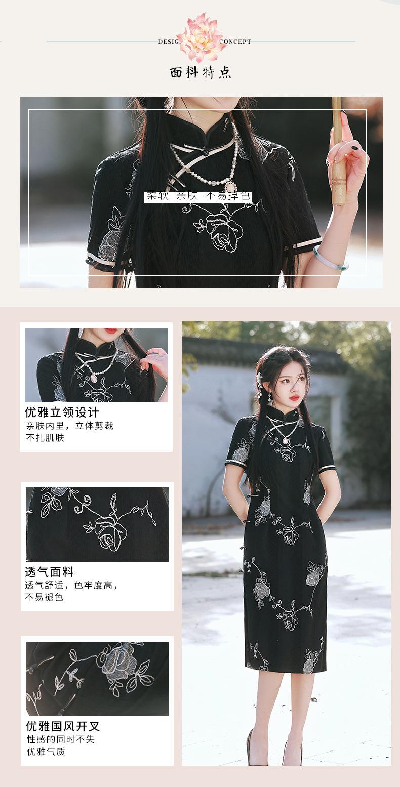 2023夏季新款复合蕾丝绣花旗袍连衣裙 复古改良日常古典古风旗袍