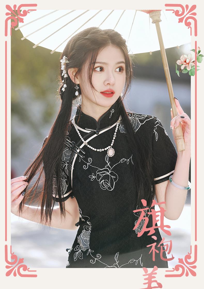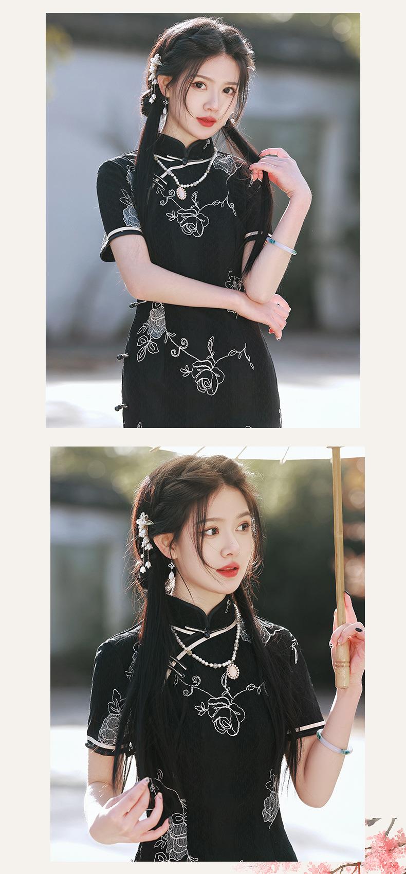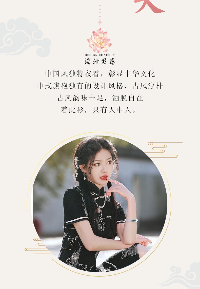 2023夏季新款复合蕾丝绣花旗袍连衣裙 复古改良日常古典古风旗袍