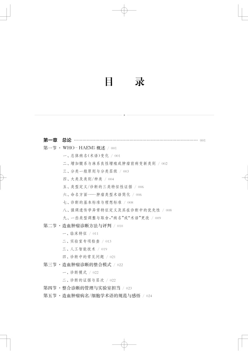 本书以世界卫生组织(WHO)于2024年出版的第5版《WHO 造血淋巴肿瘤分类》(WHO-HAEM5)为基础,阐述了造血肿瘤的最新分类、诊断方法与评判、整合诊断模式、检验诊断中的常见问题、整合诊断管理与实验室的担当,体现了检验(病理)诊断专业领域的最新进展。