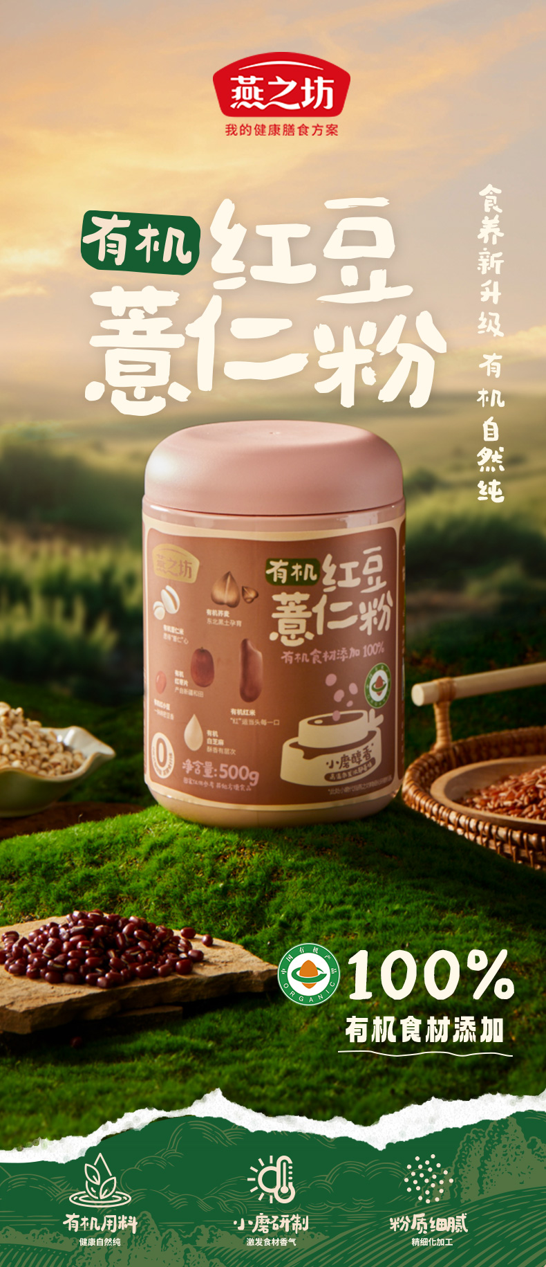 【凤品优选】燕之坊有机红豆薏米粉500g 红小豆薏仁红枣高纤饱腹营养早餐即食代餐粉