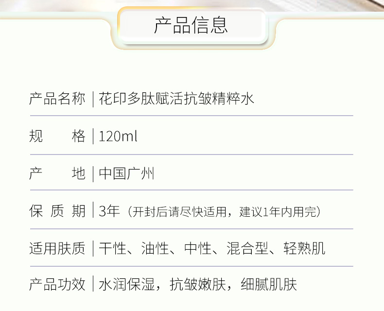 花印多肽赋活抗皱精粹水120ml